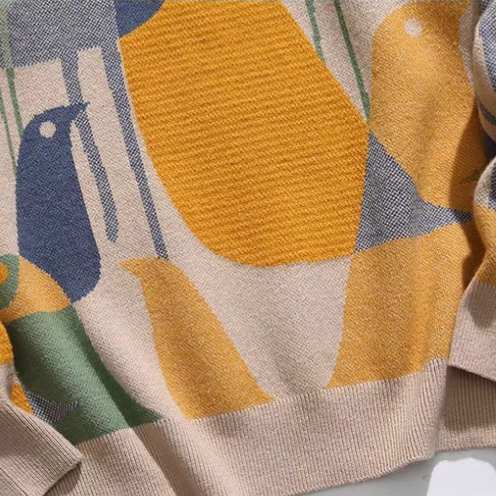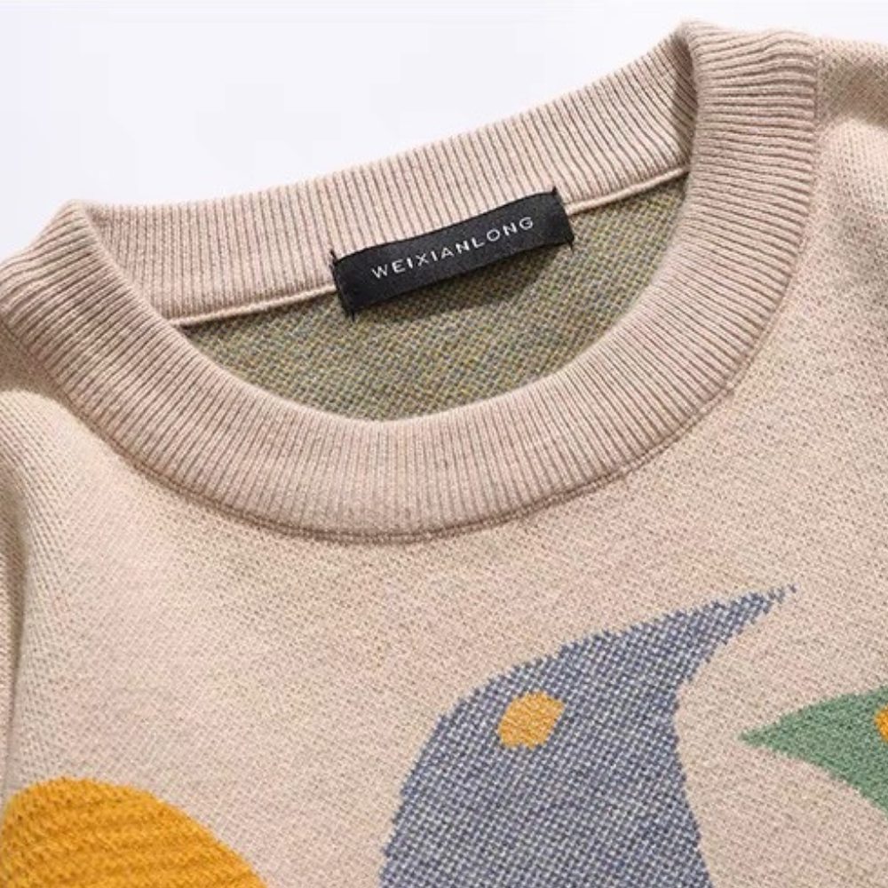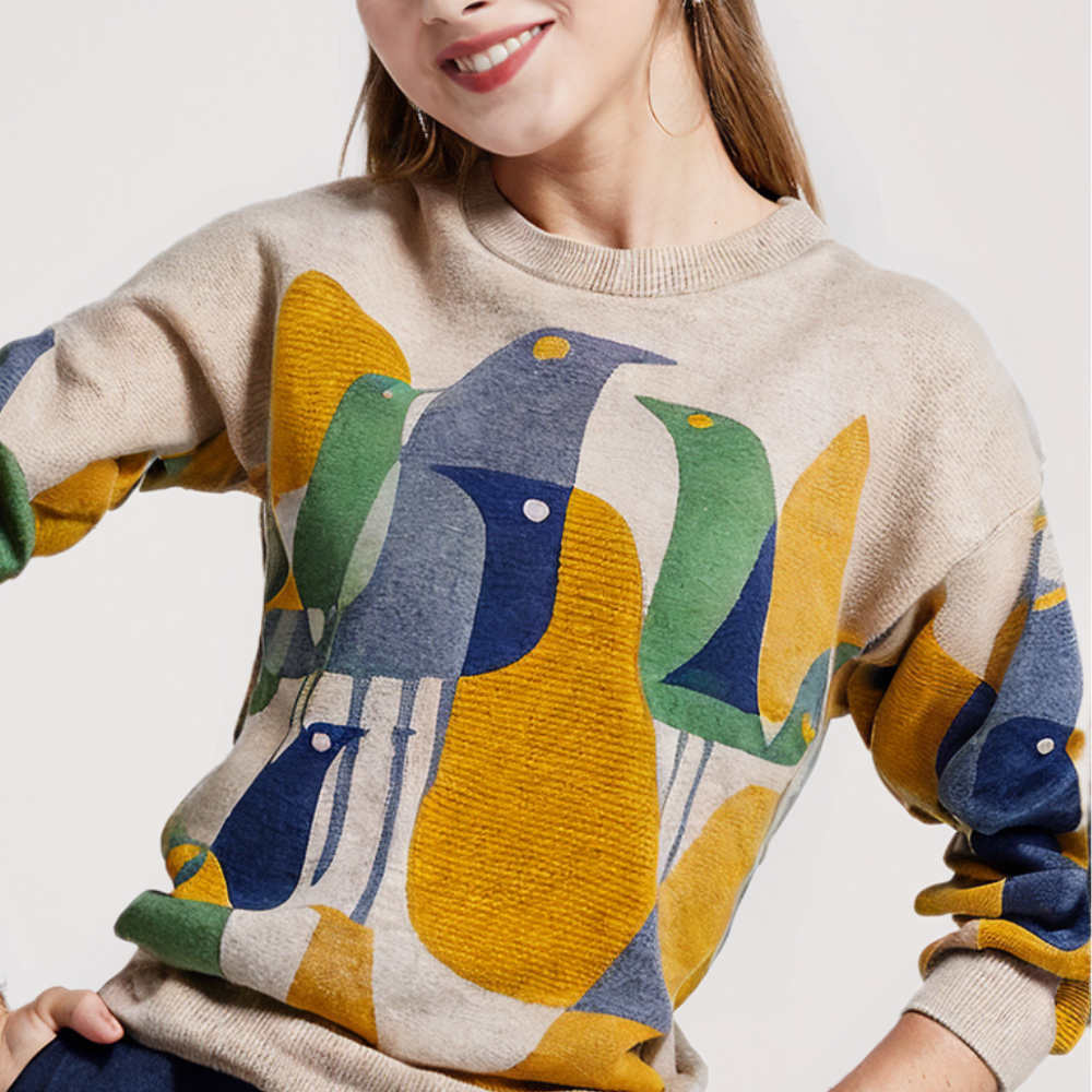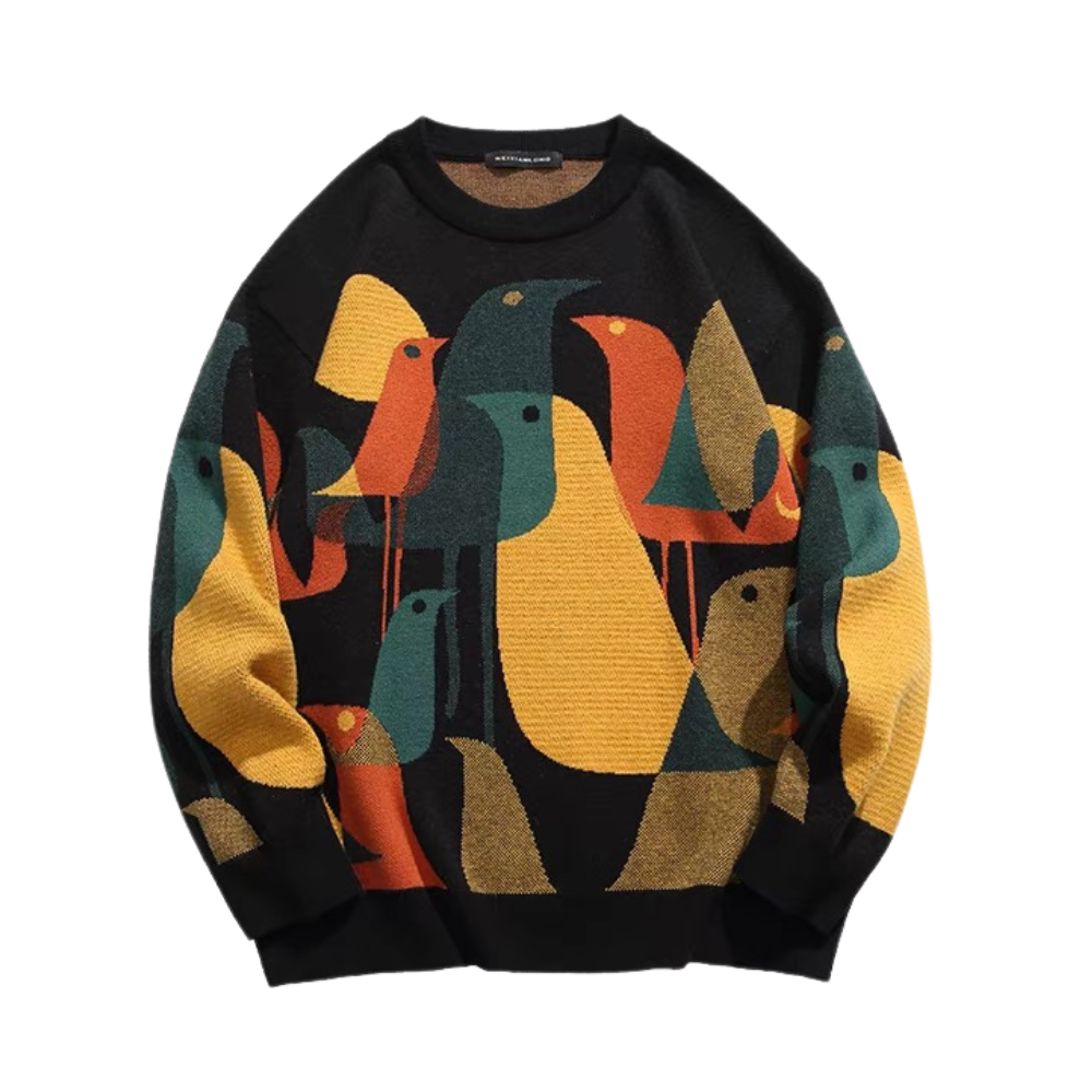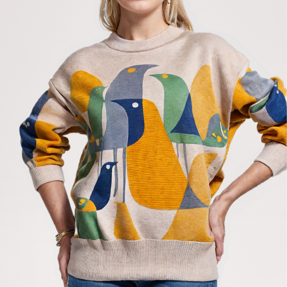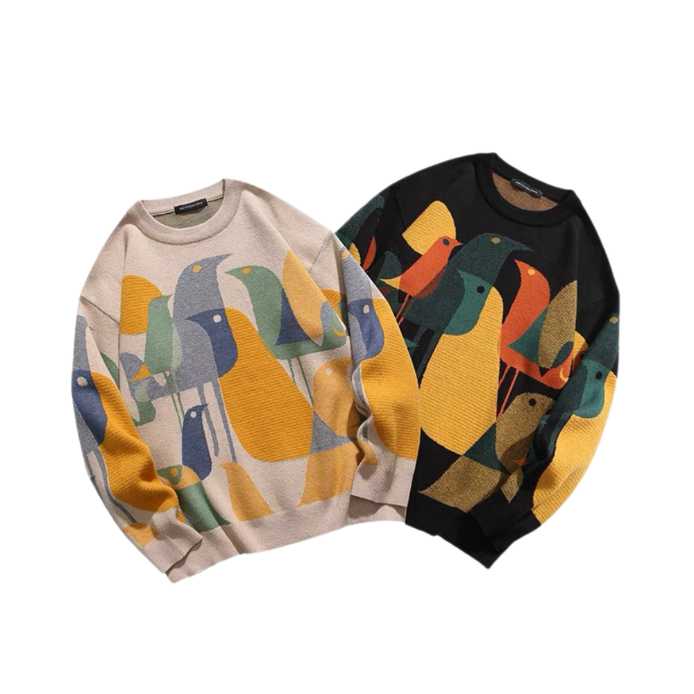 Dieser Vintage-Pullover mit bunten Vögeln ist die perfekte Ergänzung für die Garderobe eines jeden Katzenliebhabers. Dieser Pullover aus hochwertiger Woll- und Acrylmischung ist weich und angenehm zu tragen. Das Strickdesign zeigt diese niedlichen Vintage-Vogelmuster. Komplett mit bunten Augen und Körper. Damit heben Sie sich von der Masse ab.