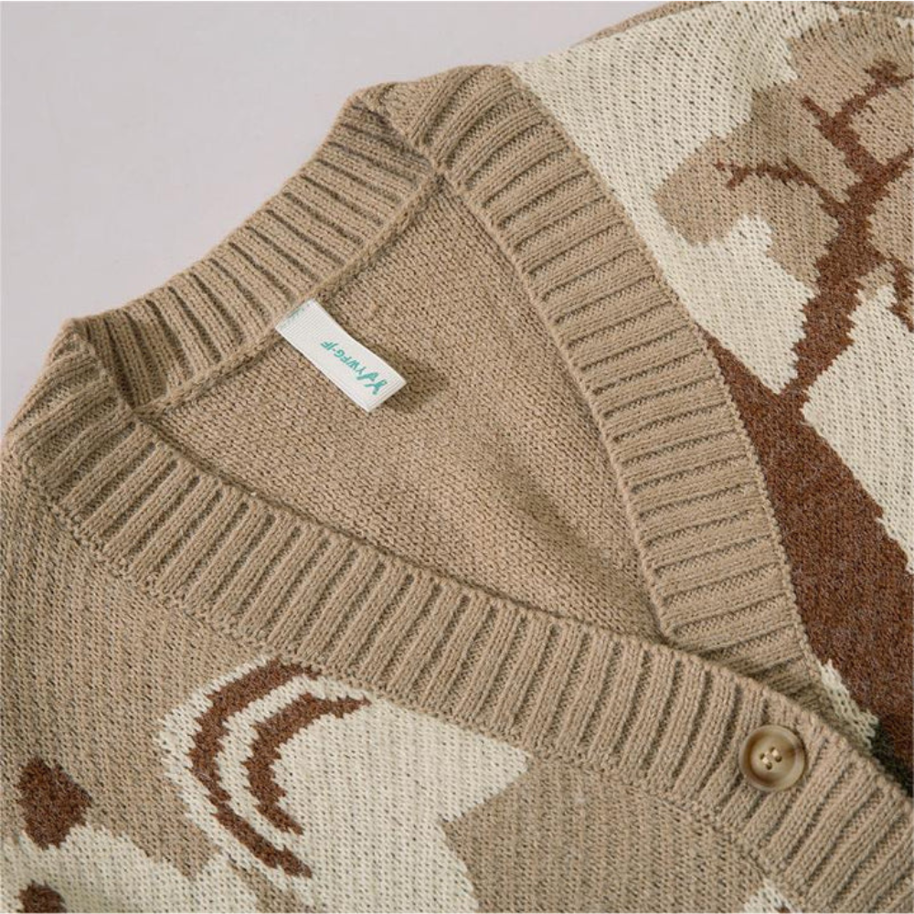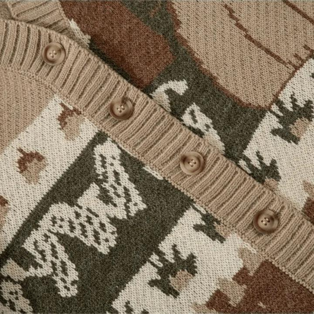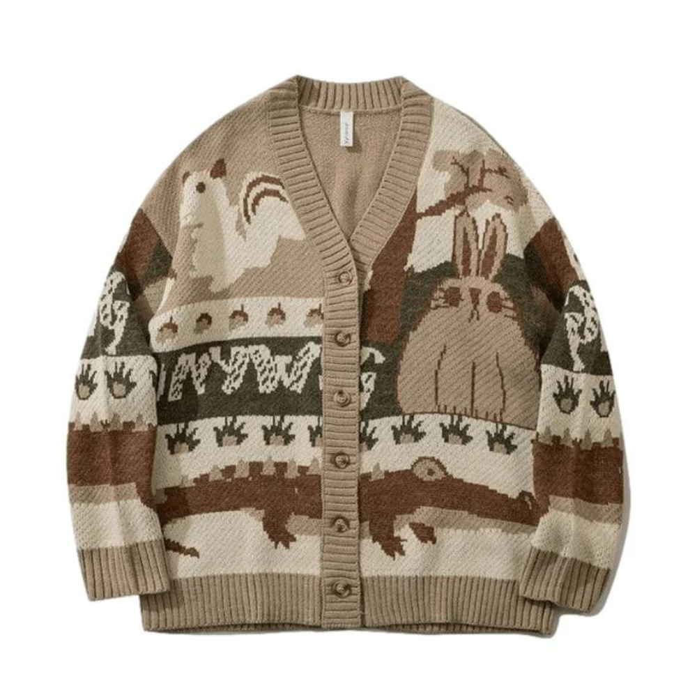 Der süße lässige Strickcardigan mit Tiermotiv hat auf der Vorderseite ein süßes Tiermotiv. Zur Auswahl stehen verschiedene Tiere wie Kaninchen, Katzen oder Füchse. Die aufwendigen Strickdetails bringen die verspielten und niedlichen Merkmale dieser Tiere zur Geltung und machen ihn zu einem lustigen und einzigartigen Modestatement.