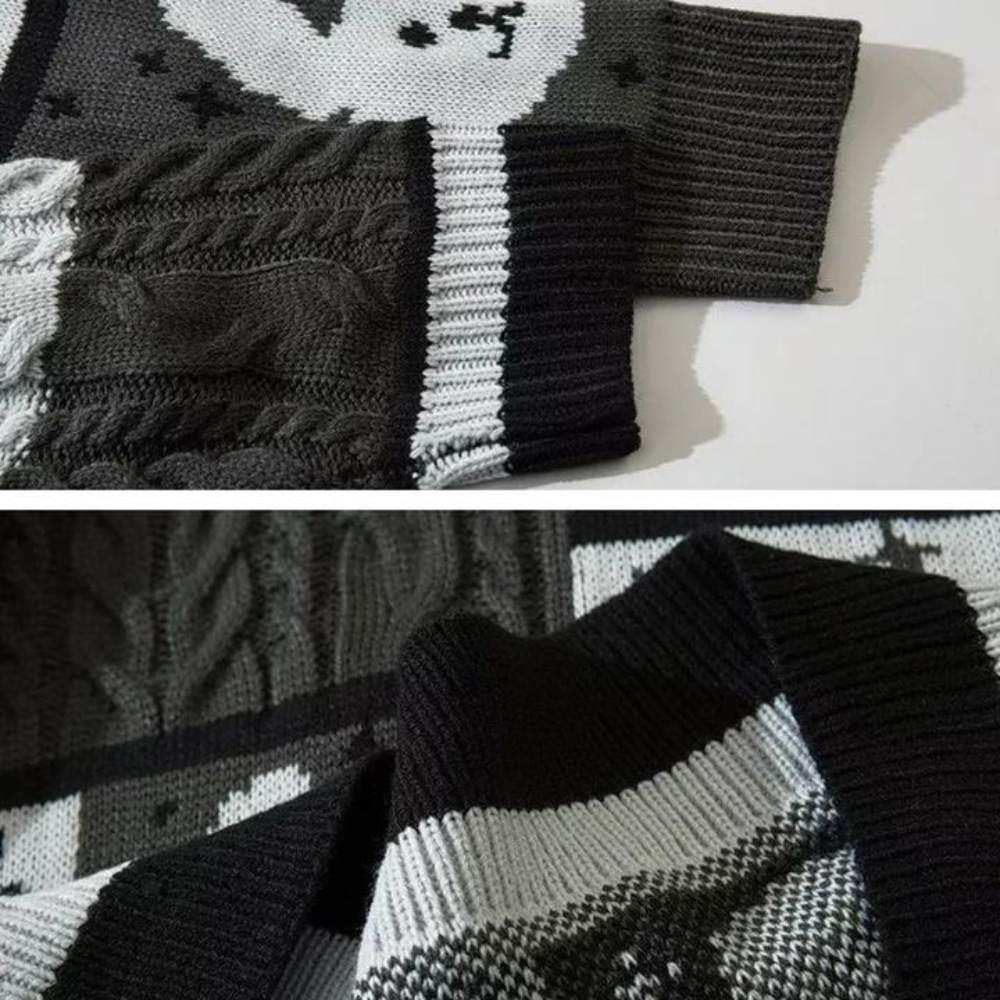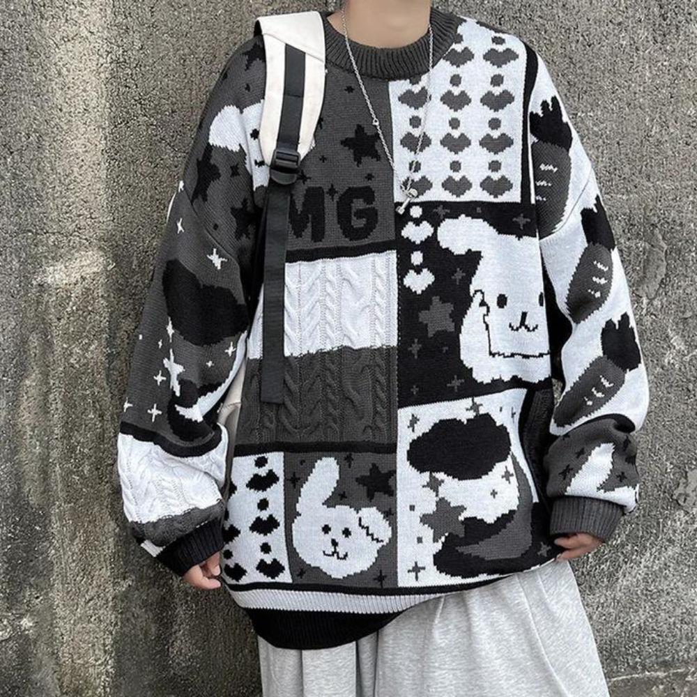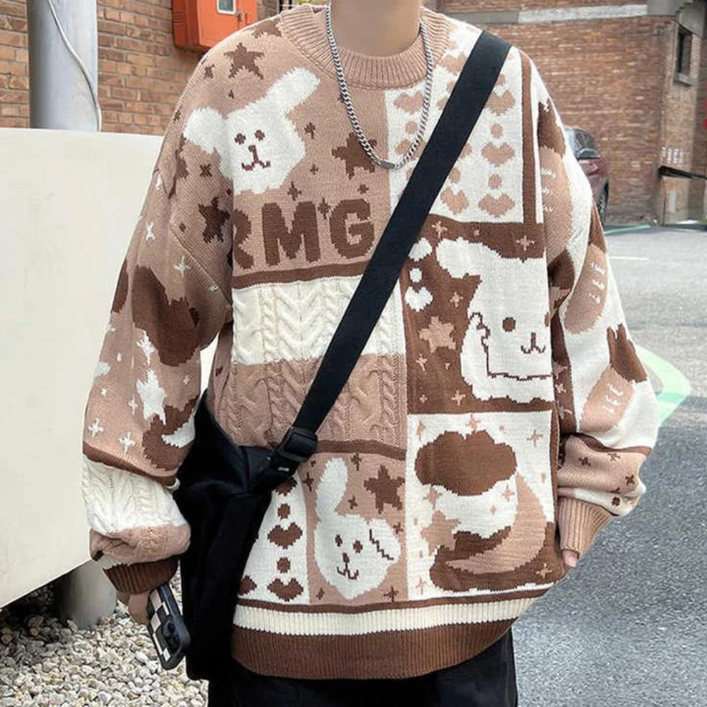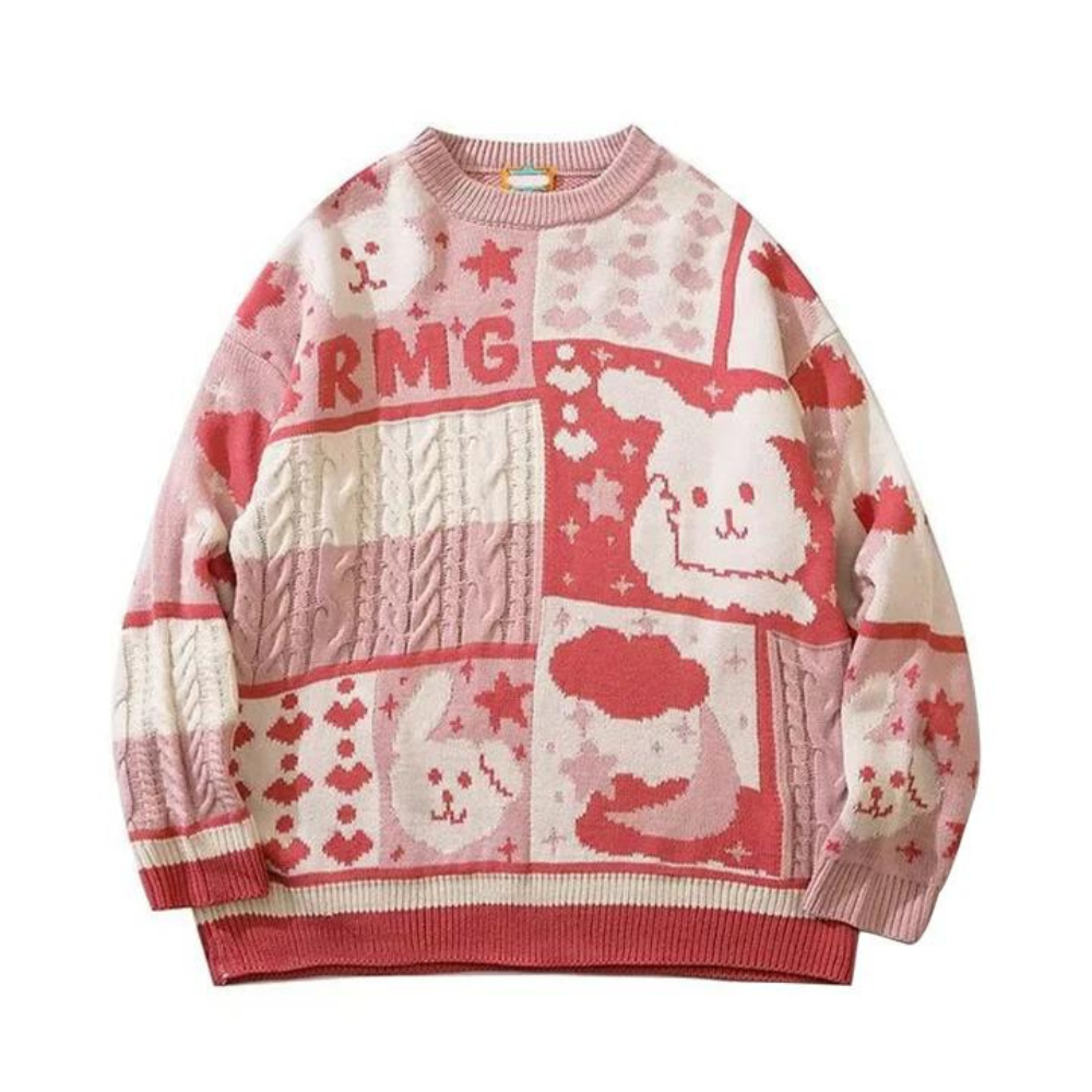 Dieser süße Pullover mit Häschenstickerei bringt zeitlose Eleganz in Ihre Garderobe. Er ist aus den feinsten Materialien gefertigt und weist ein entzückendes Häschenstickerei-Design auf. Der Pullover strahlt Luxus der Spitzenklasse für alle aus, die Qualität und Stil zu schätzen wissen.