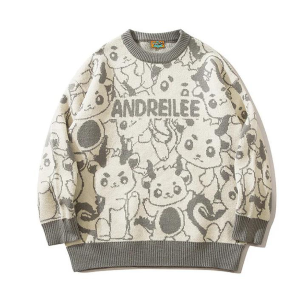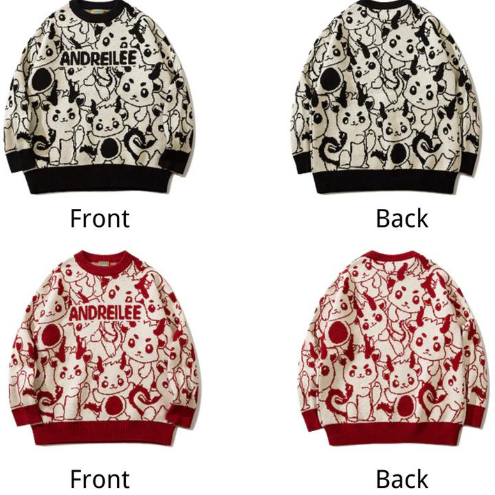 Werten Sie Ihren Stil mit unserem niedlichen Pullover mit Cartoon-Drachenmuster auf. Mit einem raffinierten Design aus handgezeichneten Drachen strahlt dieser Pullover Eleganz und Exklusivität aus. Hergestellt aus hochwertigen Materialien. Er kombiniert Komfort und Luxus für einen makellosen Look. Treten Sie ein in die Welt der Mode und setzen Sie mit diesem wunderschönen Stück ein Statement.