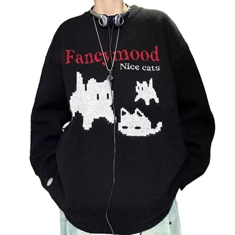 Lassen Sie Ihre Katze mit diesem eleganten Pullover stilvoll auftreten. Dieser kuschelige Strickpullover aus hochwertigen Materialien verfügt über ein skurriles Katzendesign, das all Ihren Katzenfreunden modisches Gefühl verleiht. Genießen Sie die zeitlose Eleganz dieses exklusiven Looks.