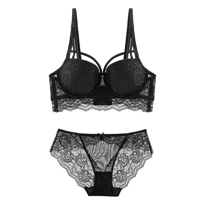 Das elegante Spitzen-Bandage-Push-Up-Dessous-Set für Damen ist ein Muss für jede Frau. Es wurde entworfen, um ein natürlich aussehendes Dekolleté mit einem volleren, festeren Aussehen zu erzielen. Es verfügt außerdem über einen verstellbaren BH mit Rückenverschluss und Bügelverschluss. Es ist nicht nur bequem, sondern auch stilvoll.