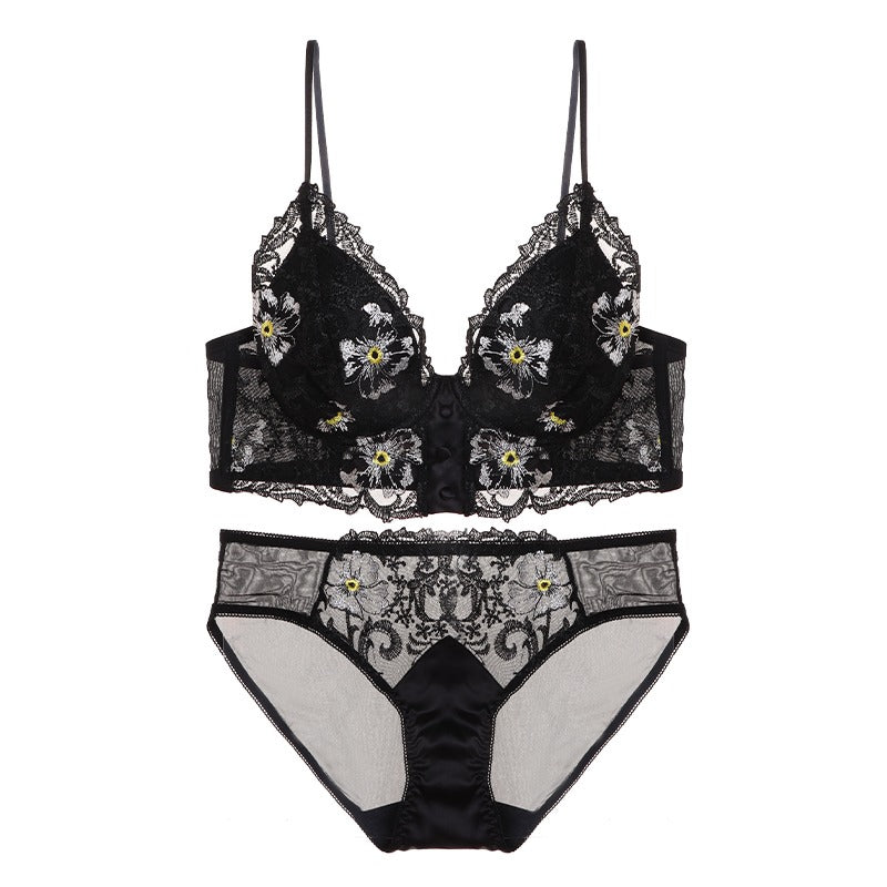 Was ist besser als ein französisches Dessous-Set? Dieser elegante, bügellose Push-up-BH betont Ihre Figur und bietet Ihnen den Halt, den Sie brauchen. Dieses bügellose Bralette-Set aus Spitze mit Stickereispitze ist perfekt für die Frau, die ein Statement setzen möchte. Das passende französische Höschen sorgt für die perfekte Passform.