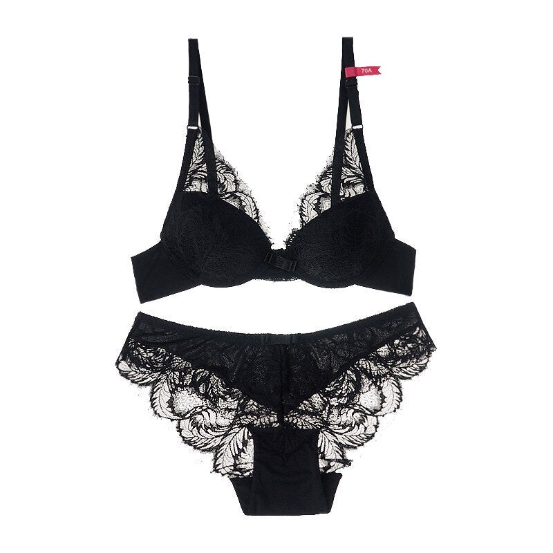 Das Set aus ultradünnem BH und Höschen mit Gaze-Stickerei ist ein Set aus mit Gaze bestickten BHs und Höschen aus ultradünnem Material, das atmungsaktiv und bequem ist. Das Set enthält einen BH und ein Höschen. Beide mit Spitzenbesatz. Der BH ist mit Blumenstickereien verziert und hat verstellbare Träger. Das Höschen ist tief sitzend und hat ein ordentliches Futter.