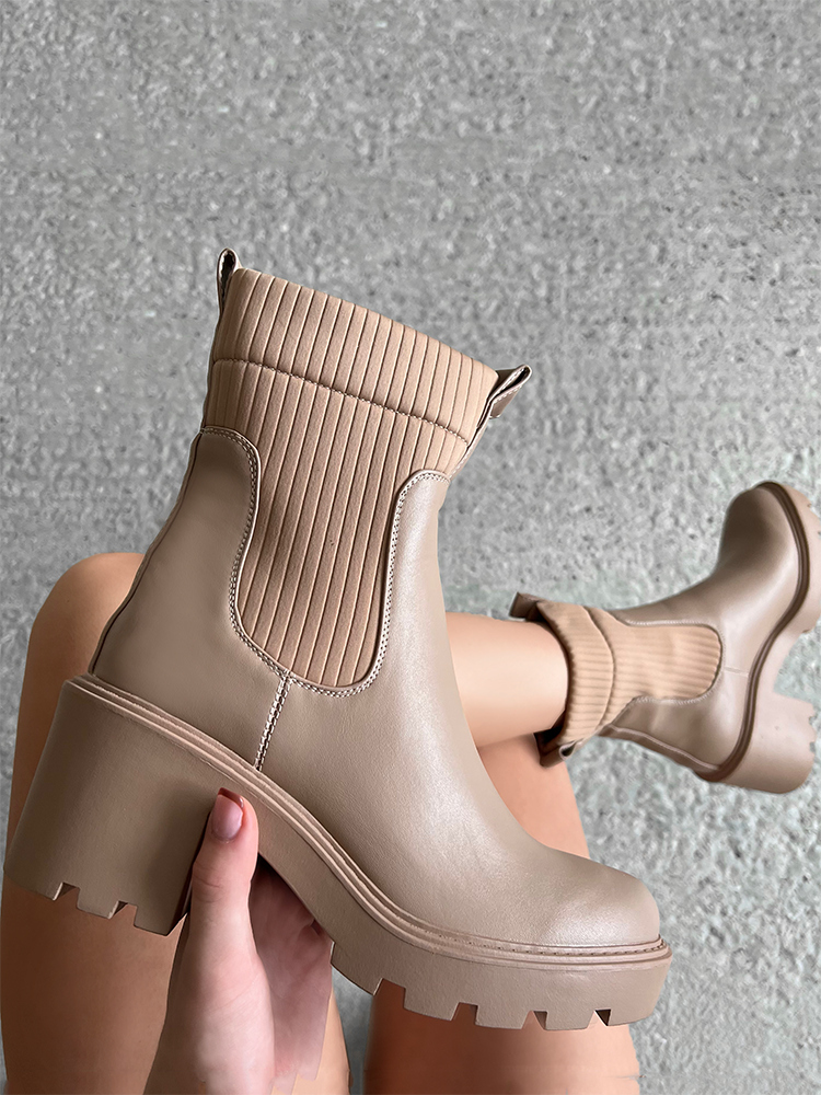 Stiefeletten aus Strick mit Plateausohle
