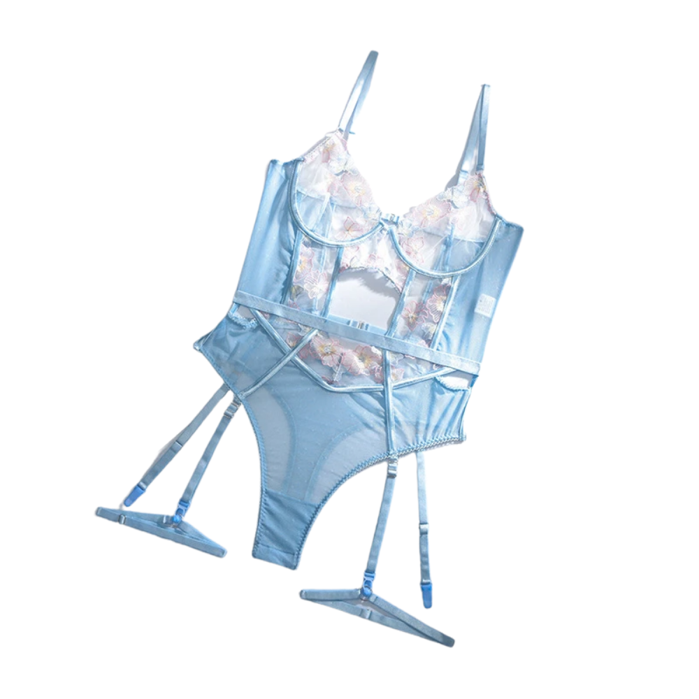 Dieser durchsichtige Jumpsuit mit Spitzenstickerei und Stahlspiralen ist ein superzartes und weiches Set, das für selbstbewusste und charmante Frauen entworfen wurde. Sich schick zu machen beginnt von innen. Und wir meinen Dessous. Wir möchten, dass Frauen in den aufwendig gestalteten und das Selbstbewusstsein stärkenden Dessous von Roopka Bikini gut aussehen und sich auch so fühlen.