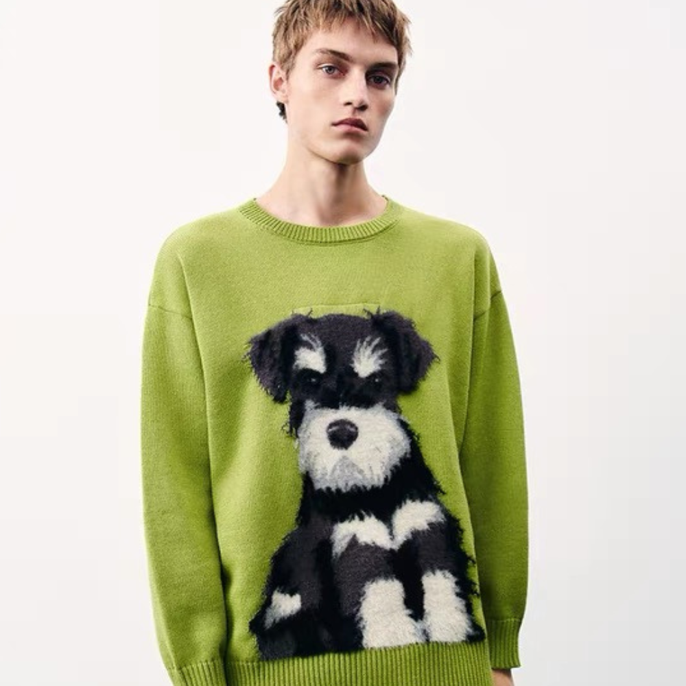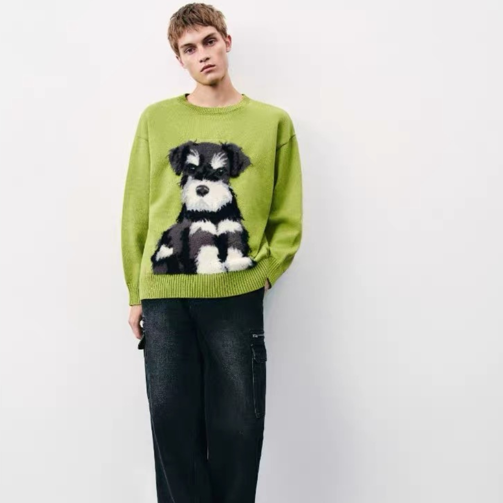 Dieser Vintage-Strickpullover mit Hundemotiv ist die perfekte Ergänzung für die Garderobe eines jeden Hundeliebhabers. Er ist aus hochwertiger Woll- und Acrylmischung gefertigt. Dieser Pullover ist weich und angenehm zu tragen. Das Strickdesign zeigt diese süßen Vintage-Hundemuster. Komplett mit bunten Augen und Körper. Damit heben Sie sich von der Masse ab.