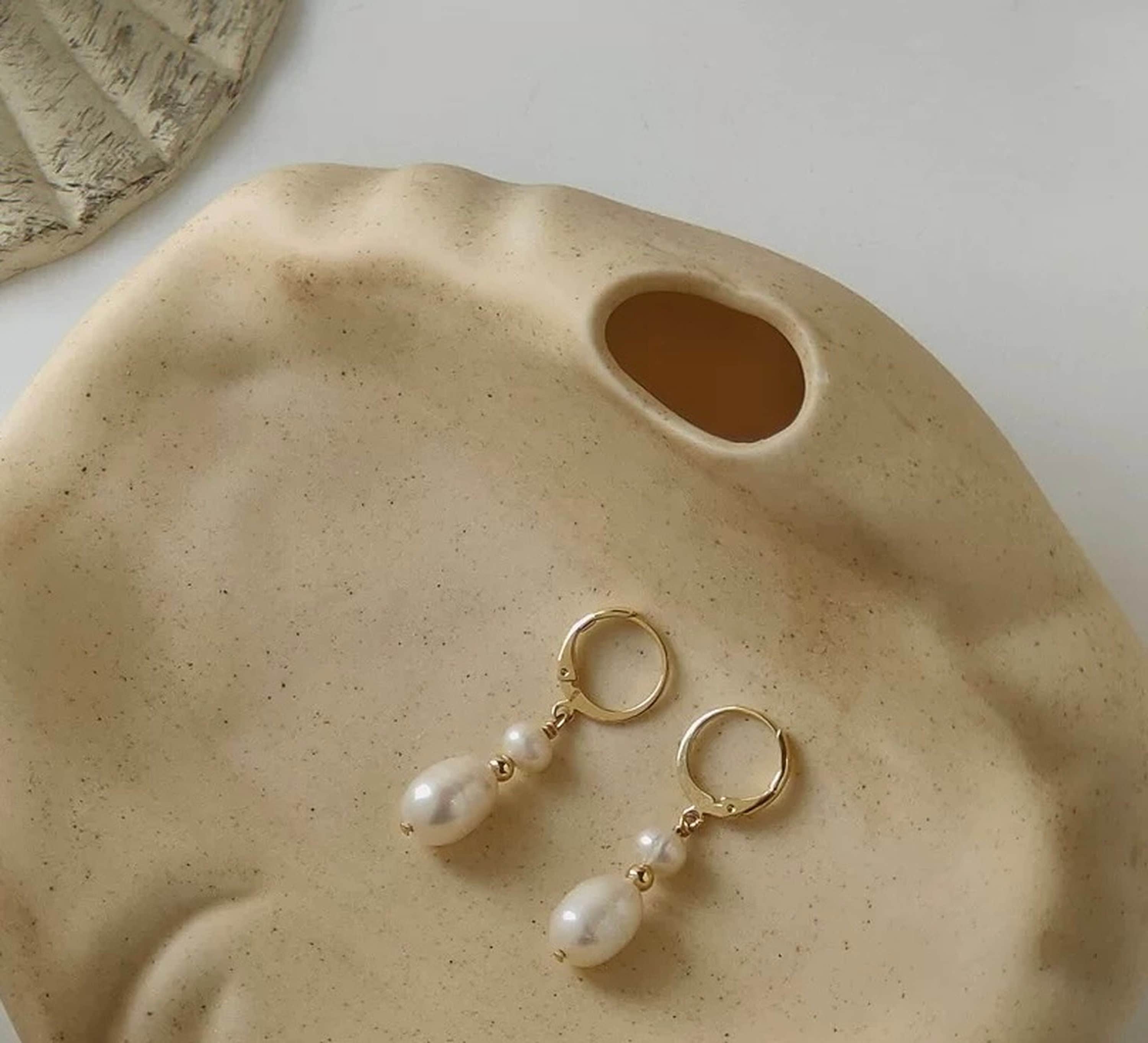 Klassische, zierliche Ohrhänger aus echten Naturperlen mit goldenen Creolen zum Anklipsen. 7 mm und 5 mm große elfenbeinfarbene Süßwasserperlen haben einen wunderschönen natürlichen Glanz. Jede Perle ist in ihrer Textur und Form einzigartig. Super elegant und klassisch. Tolles Accessoire für Brautjungfern-Hochzeitsohrringe. Tolle Geschenkidee für Ihre Liebste. Sie sehen auch zu Alltagsoutfits perfekt aus!
