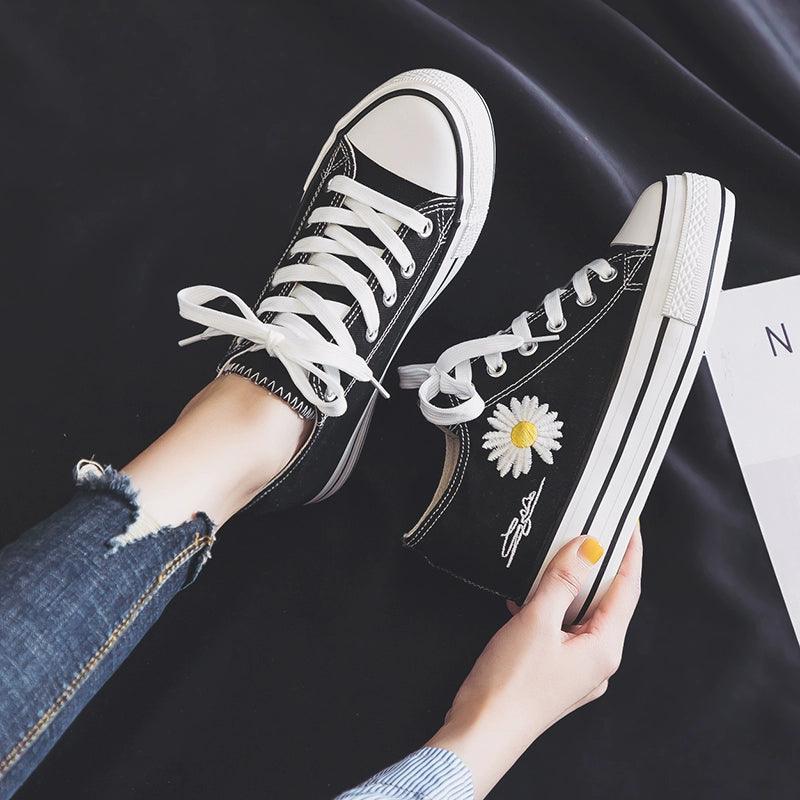 Bestickte Plateauschuhe aus Canvas mit niedrigem Knöchel
