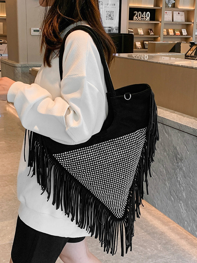 Schultertasche mit Strass Dekor und Fransenbesatz