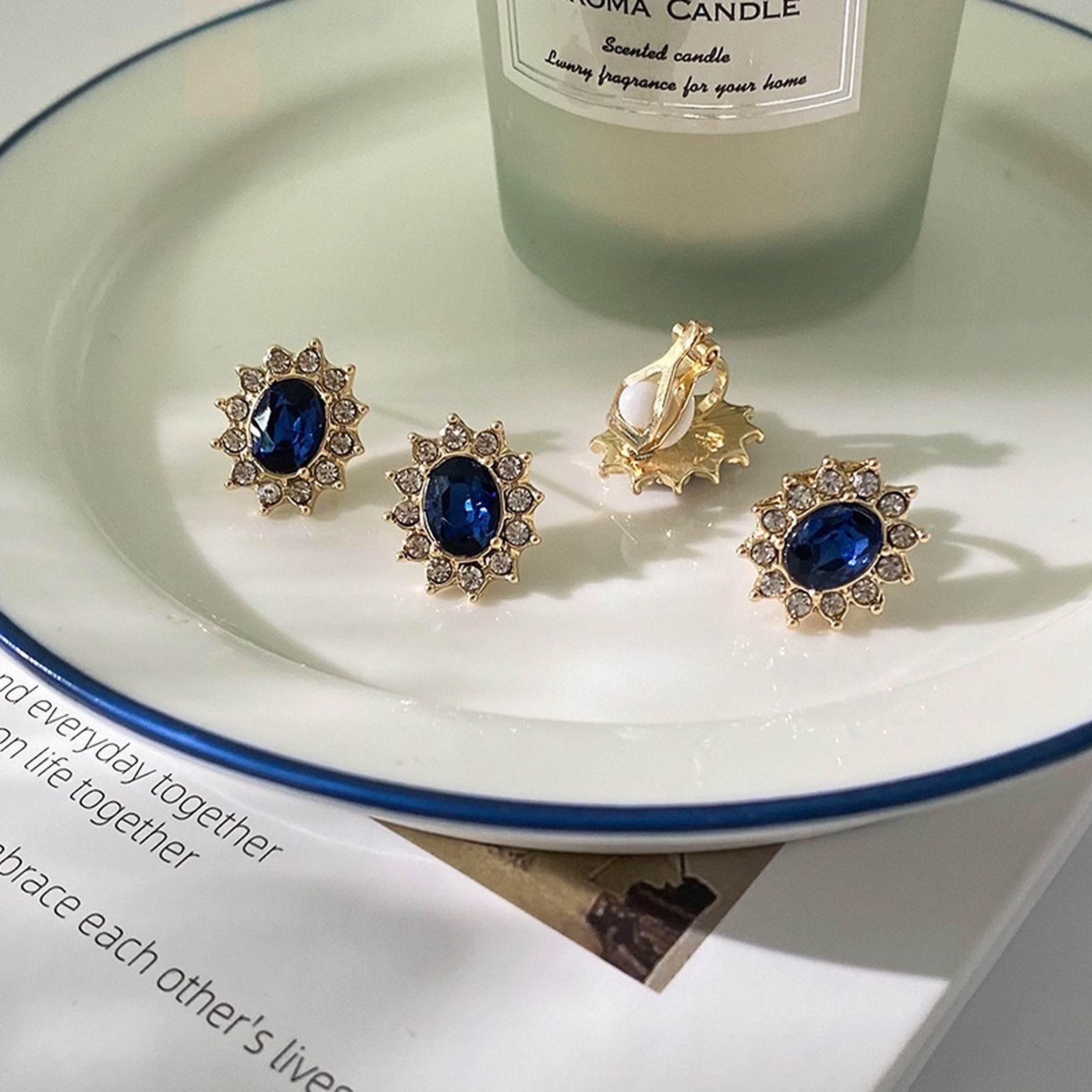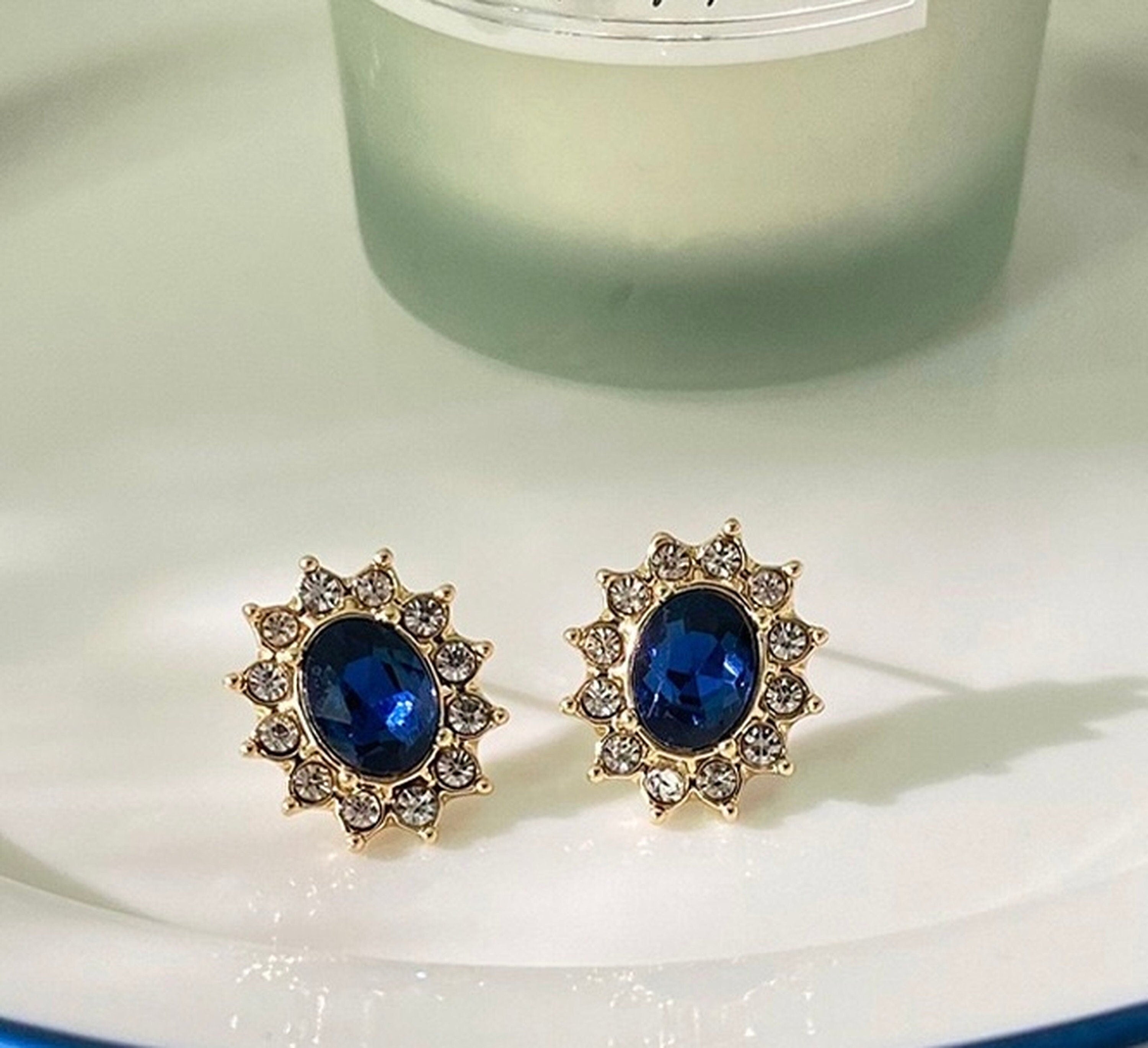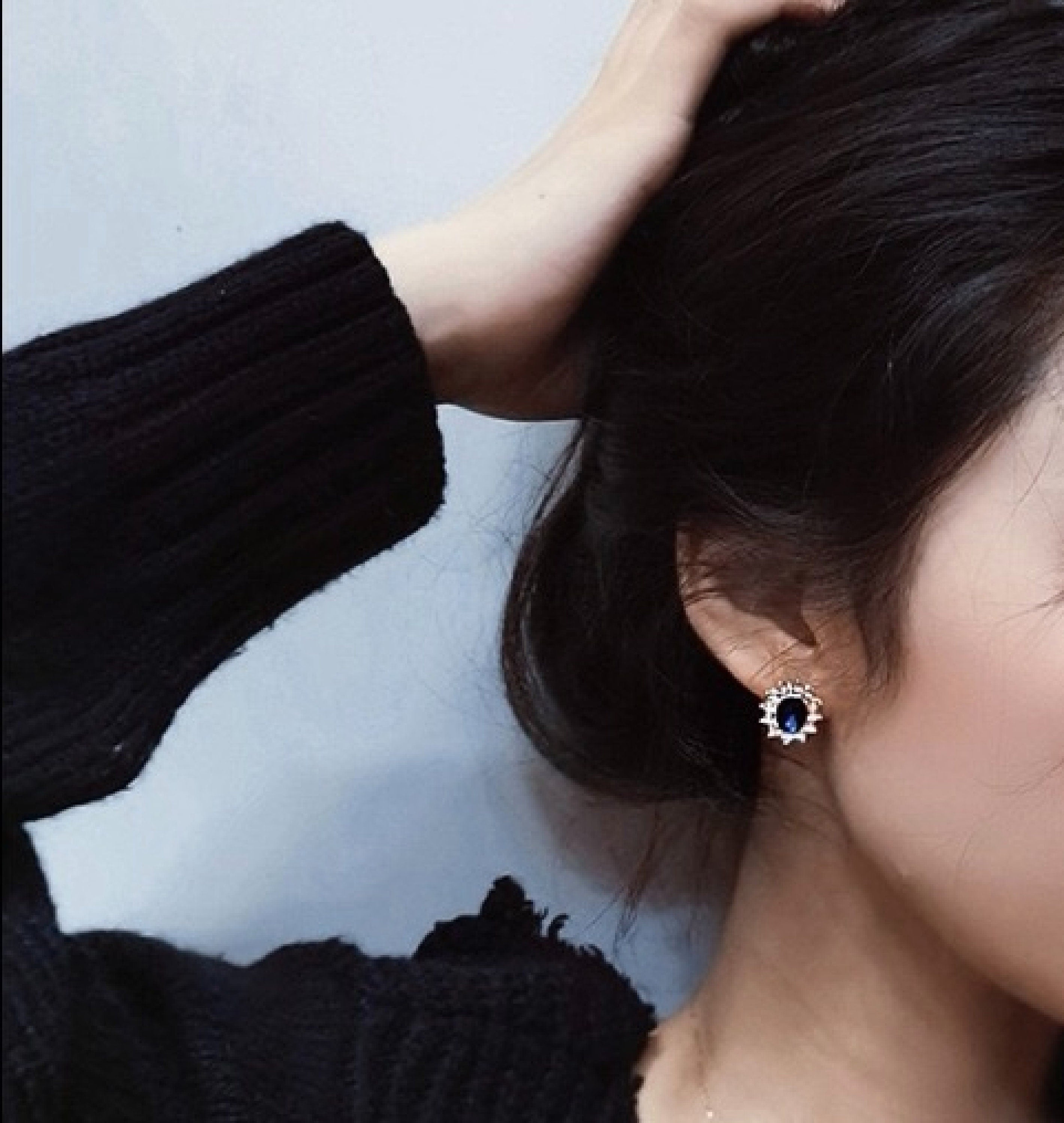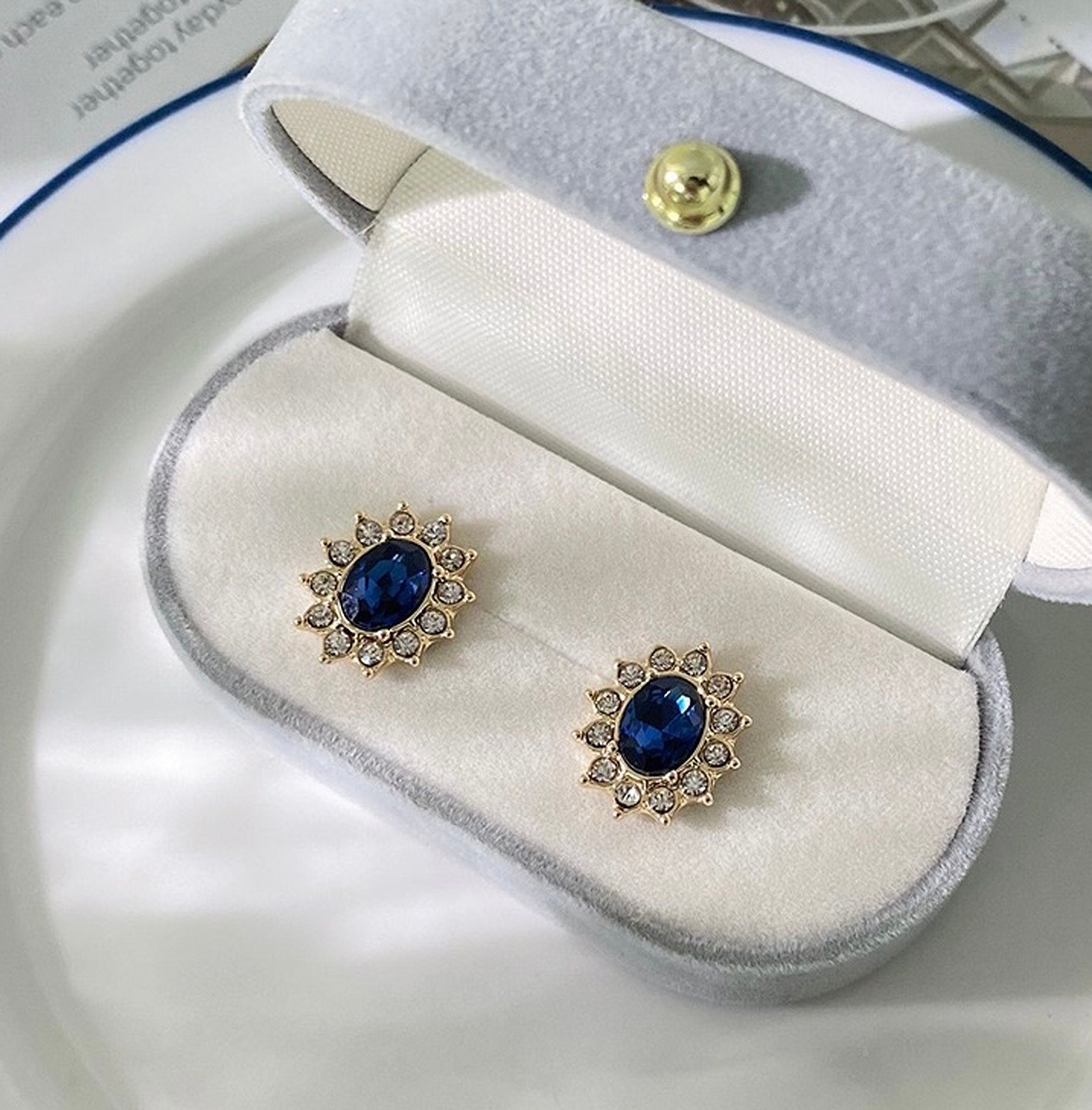 Ohrstecker aus 18 Karat Gold mit königsblauem Saphir. Zeitloser Klassiker. Oval geformte blaue Saphire. Umgeben von zierlichen CZ-Diamanten. Elegante Ohrringe im Stil von Prinzessin Diana. Handgefertigt aus 18 Karat vergoldetem Messing und 925er Sterlingsilber. Gut für empfindliche Haut. Luxuriöses Hochzeitsgeschenk für Brautjungfern. Zartes Geschenk für Mama und Oma. Tolles Geschenk zum Jahrestag für sie.