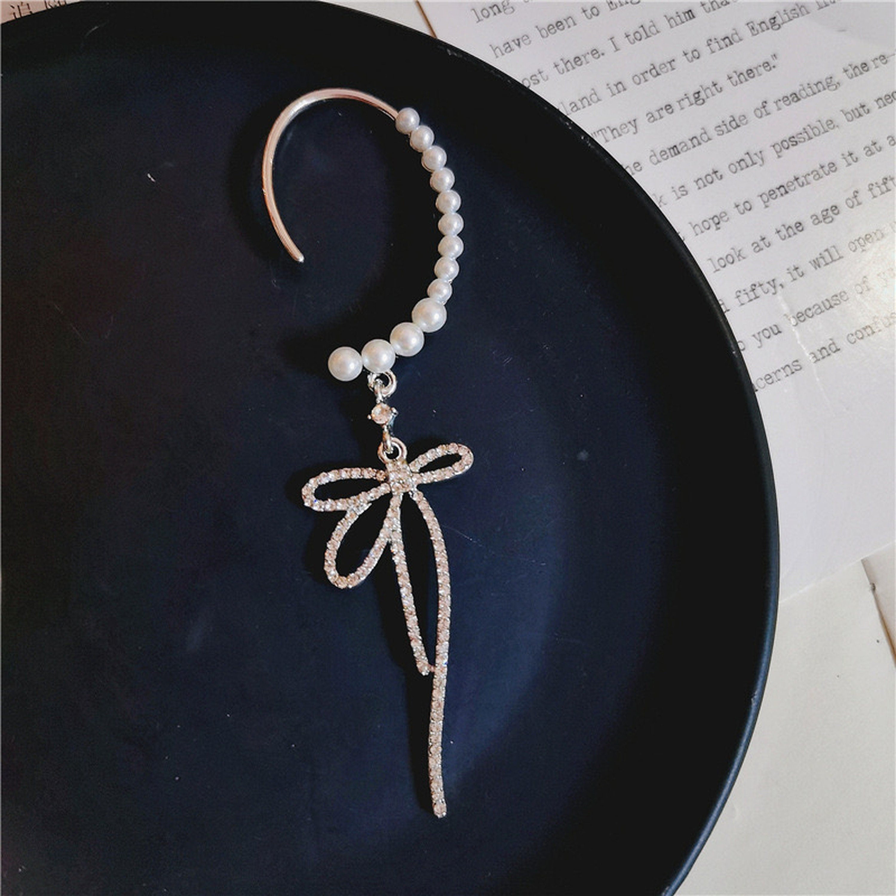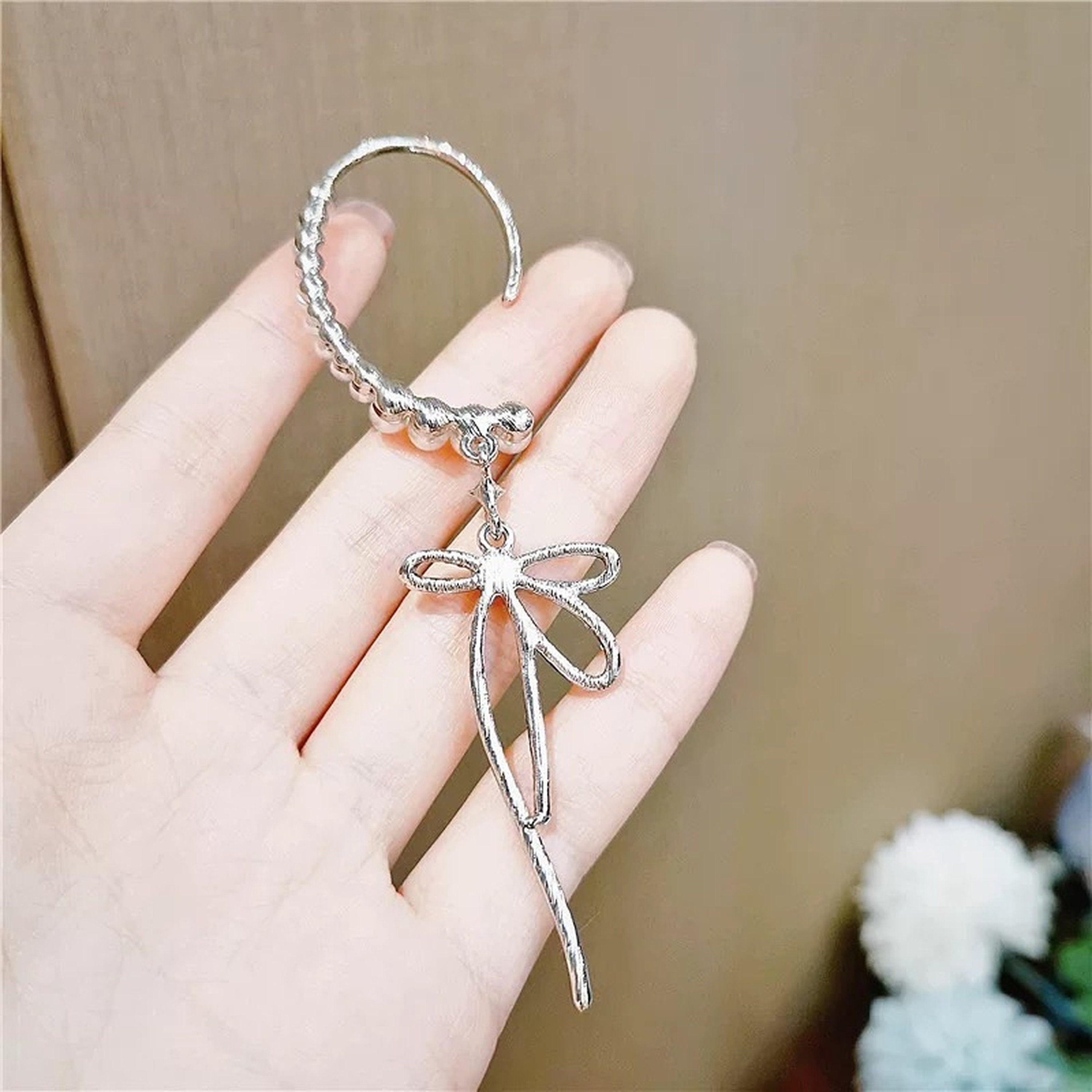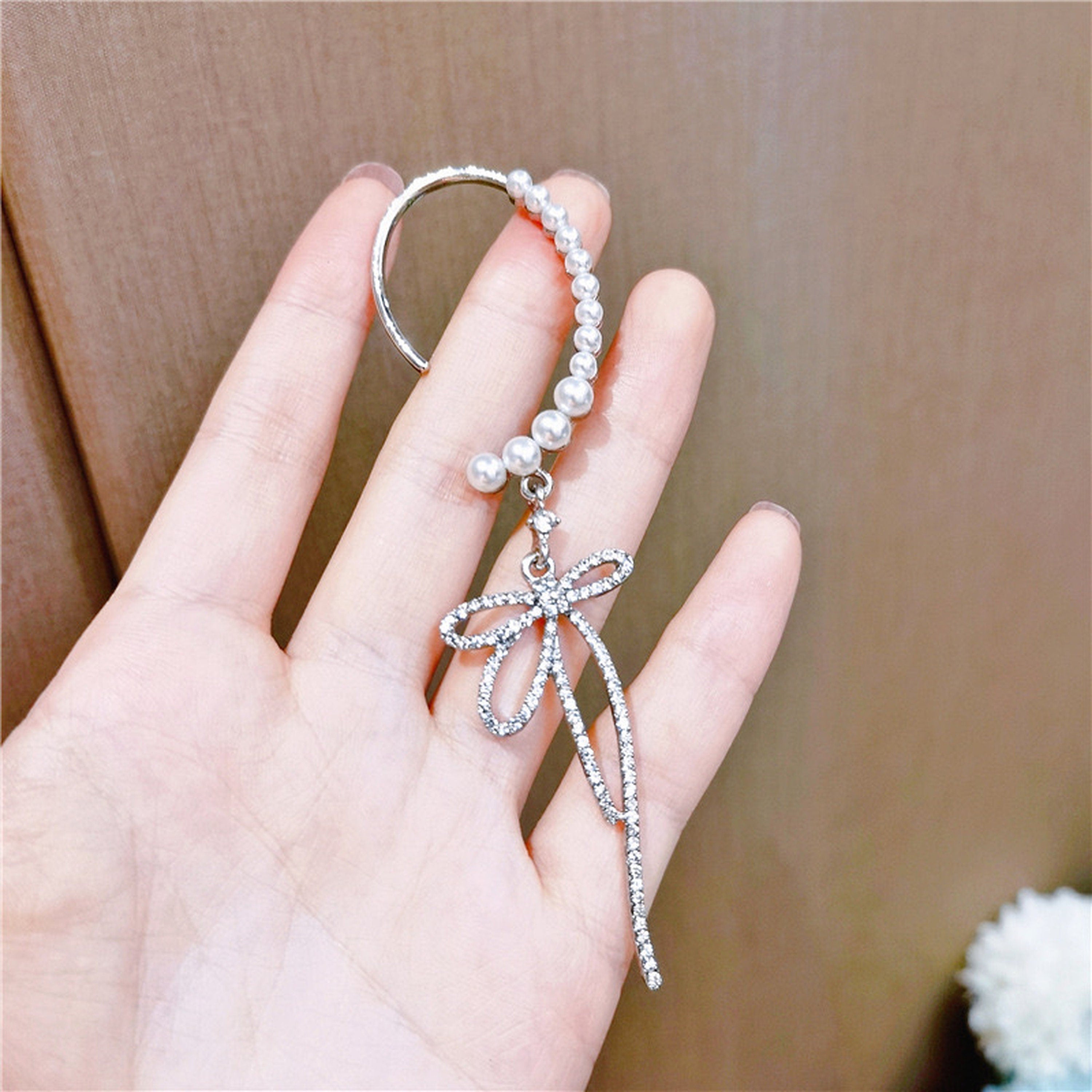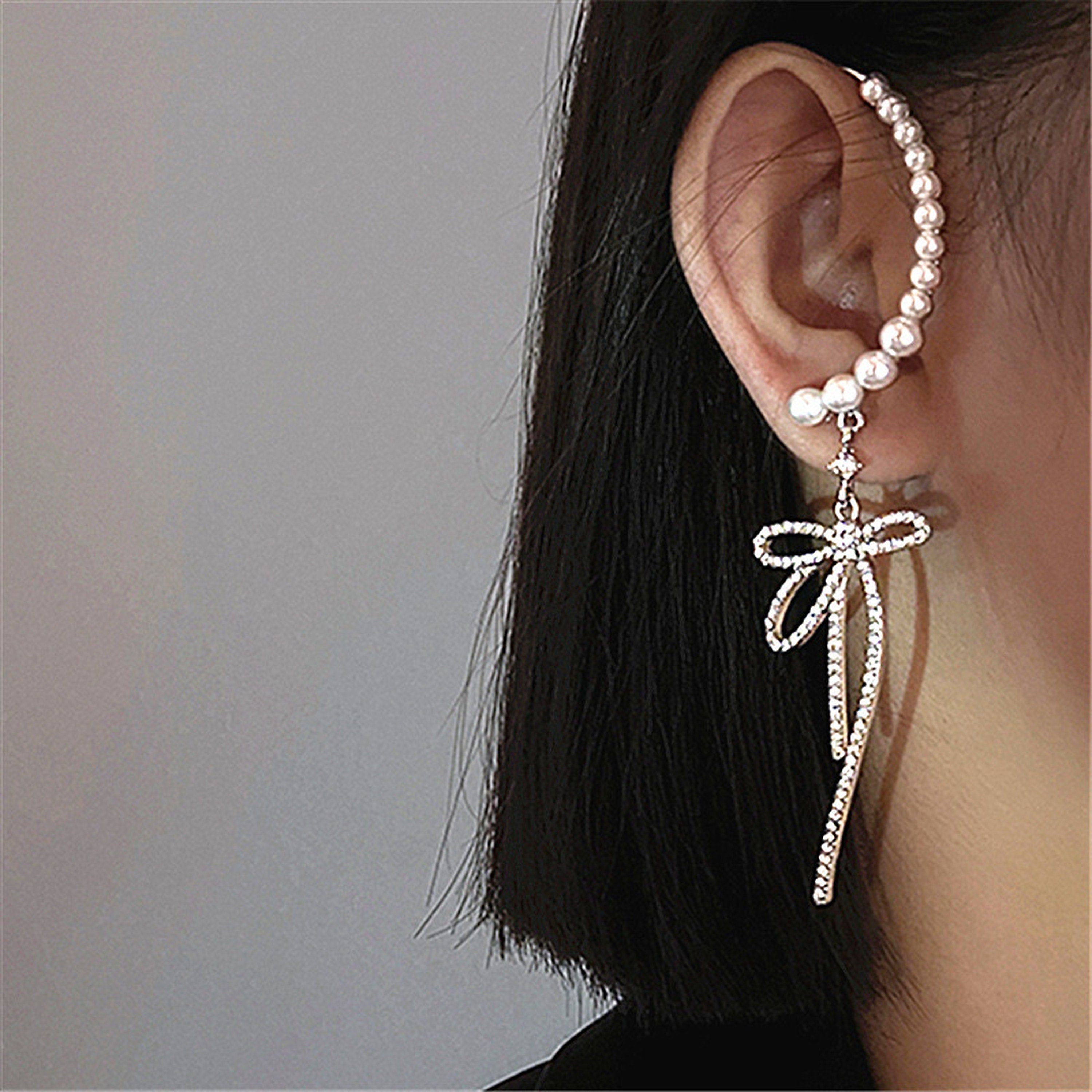 Einzigartiges neues Design: Kein Ohrpiercing mit Perlen. Ohrklemme. Mit glitzerndem Strassband und Fliege. Kein Ohrloch erforderlich. Einfach zu tragen und anzupassen. Nicht-traditionelles Ohrpiercing für Menschen mit Piercingallergie. Super praktisch! Süß und elegant. Glänzendes Hängeohr mit mädchenhaftem Akzent. Einzigartig und wunderschön.