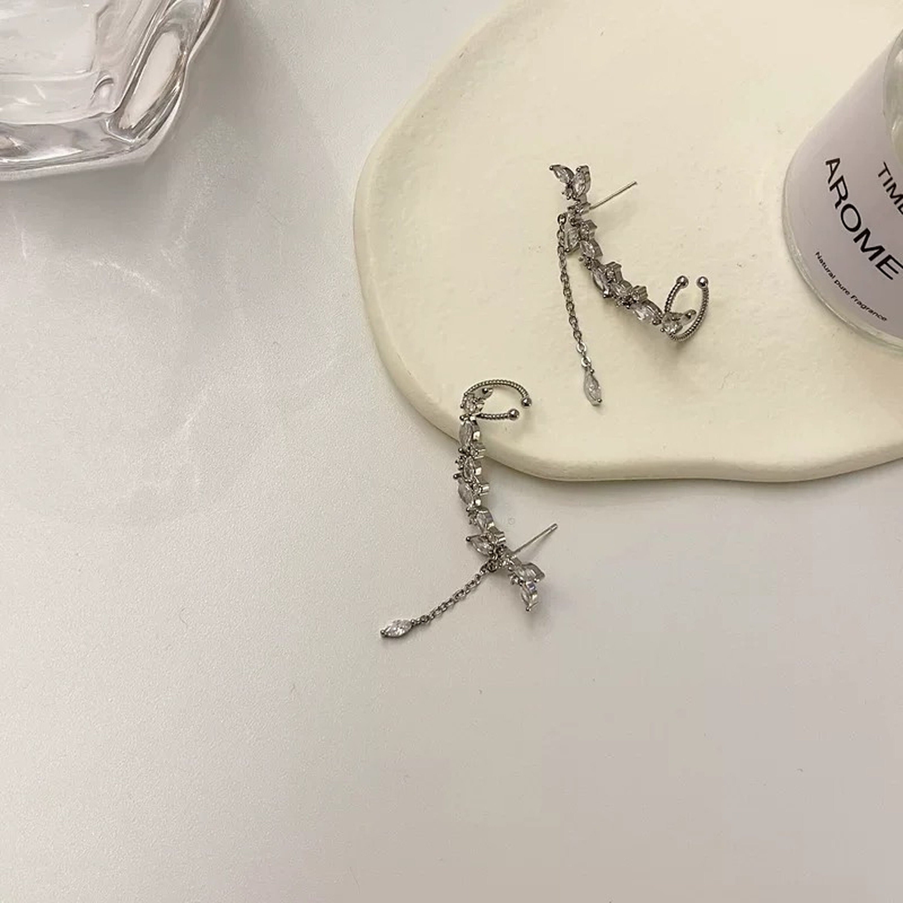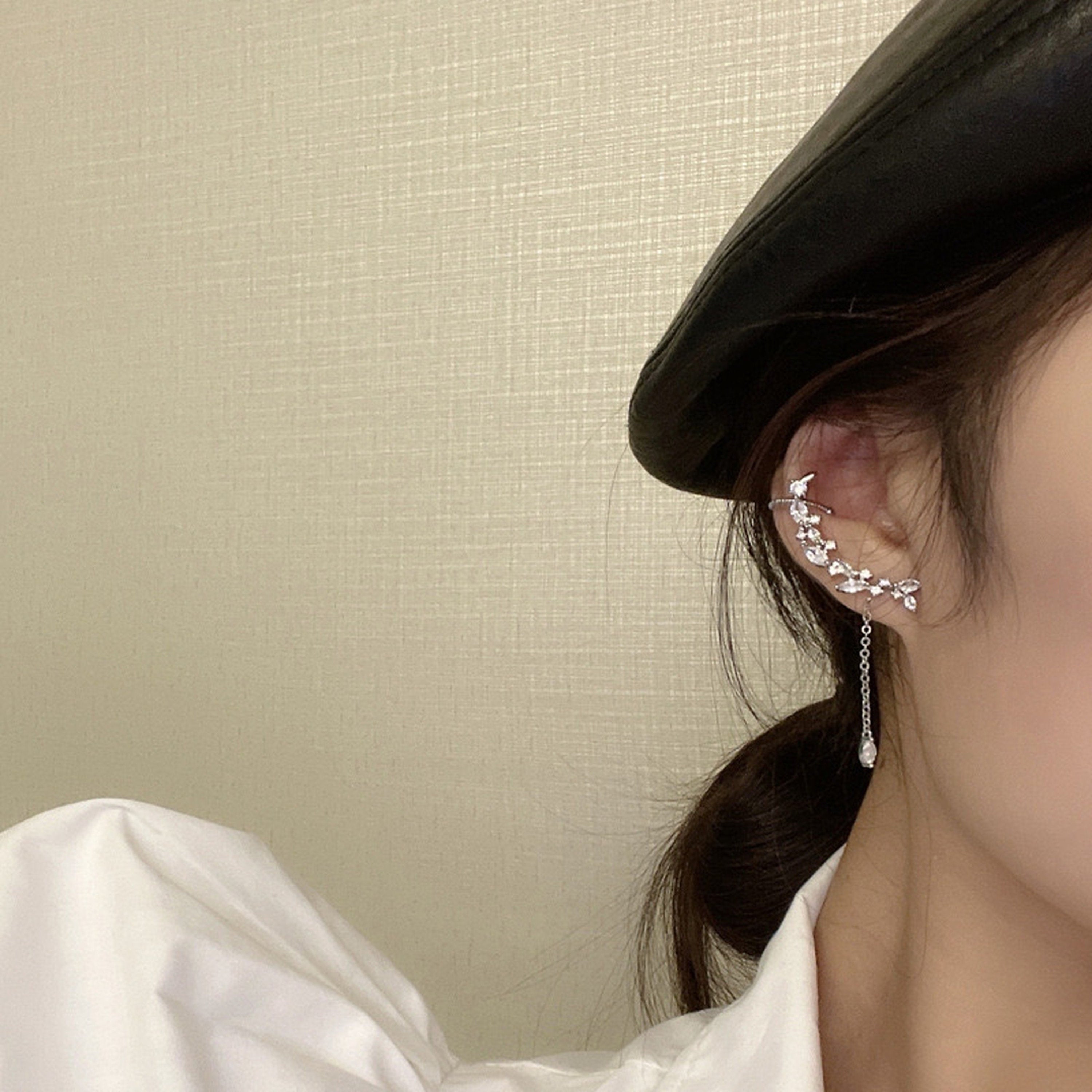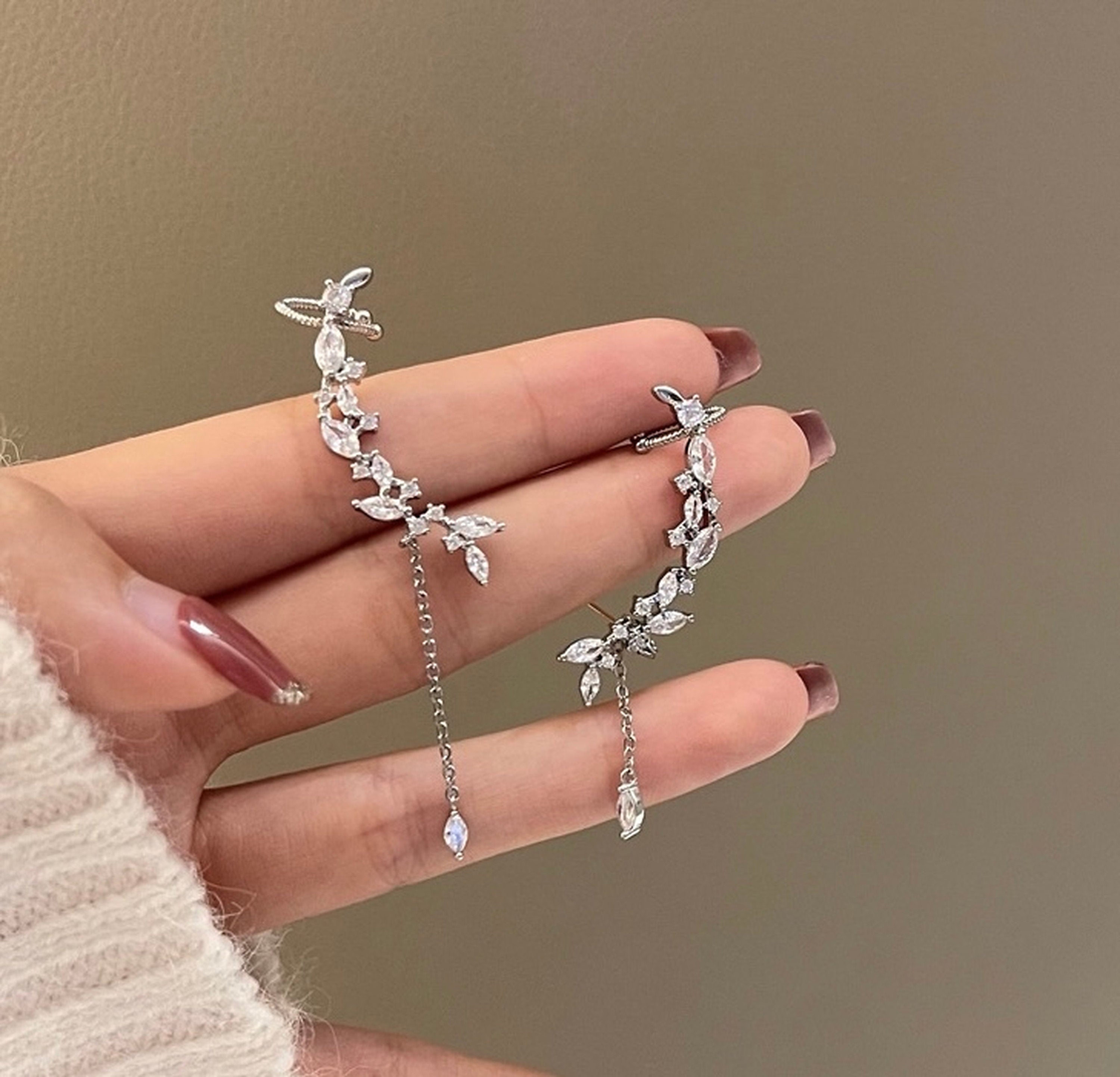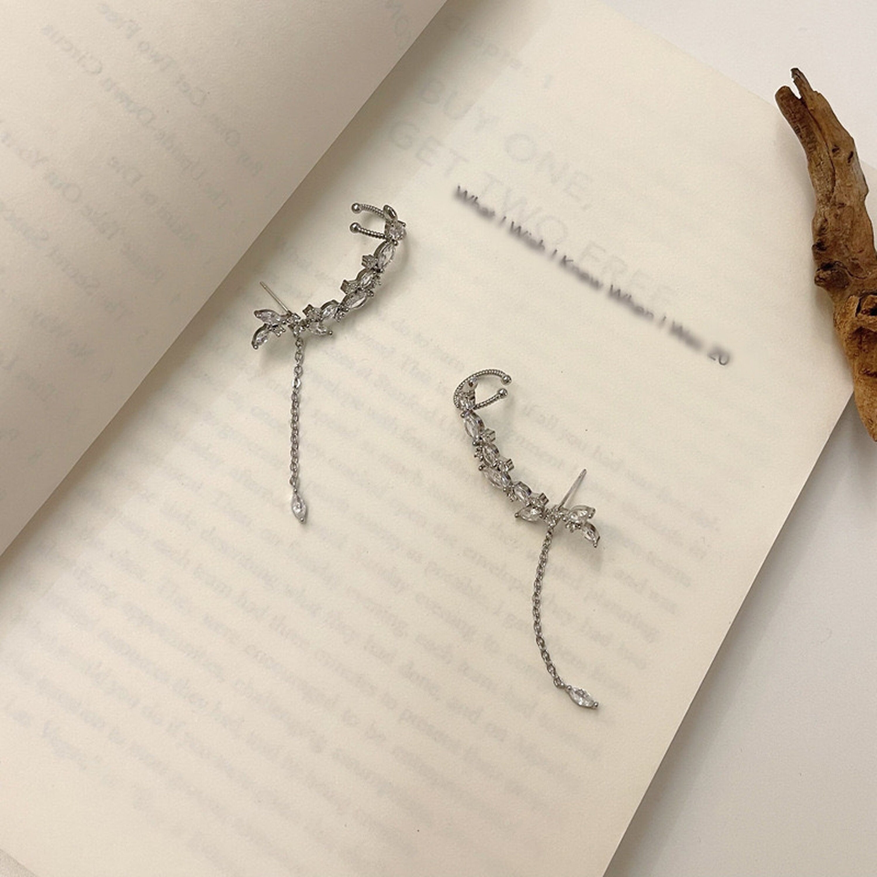 Zarte Silberblatt-Ranken-Ohrmanschetten-Kletterer. Ohr-Crawler. Conch-Manschette. Zierliche Diamant-CZ-Ranke und baumelnde Tropfenkette. Handgefertigt aus 925er Sterlingsilber. Einfach einzustellen. Gut für empfindliche Haut. Exquisite Details mit einzigartigem Design. Sieht funkelnd und wunderschön aus. Perfekt als Brautjungfern-Brautohrringe. Auch ein großartiges Accessoire, um Ihren Modestil als Alltagsschmuck aufzuwerten!