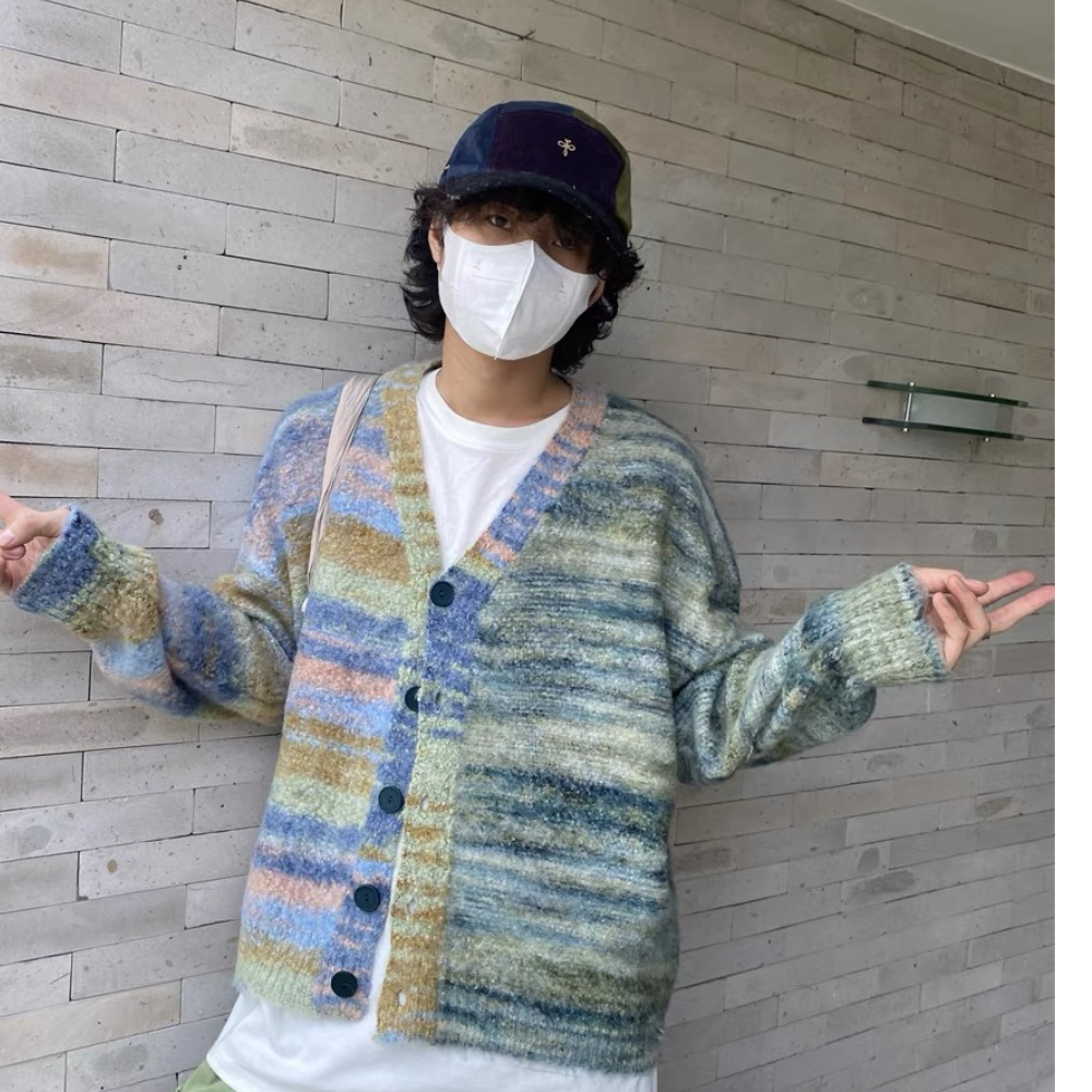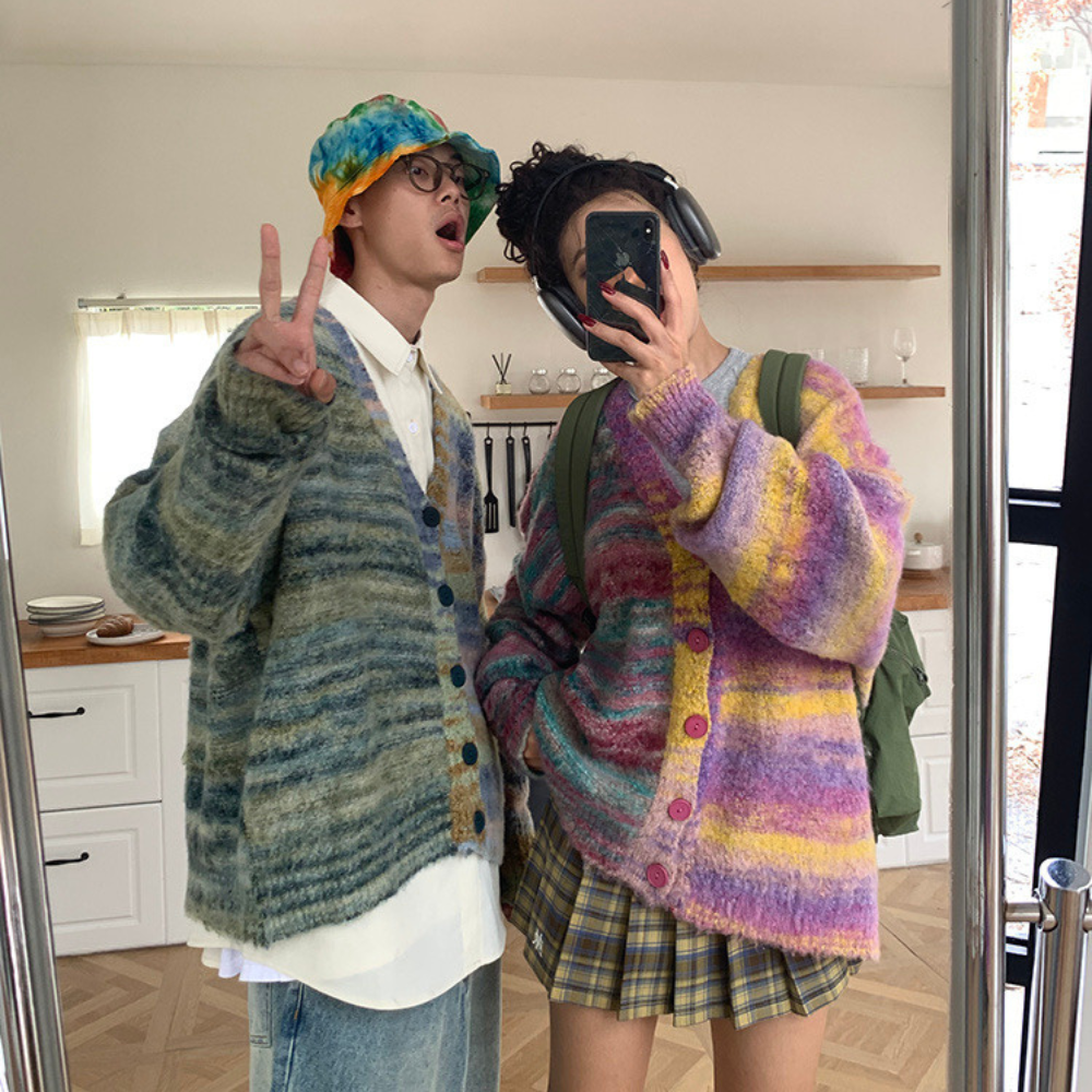Einfache und trendige gestreifte Gradienten" Strickjacke