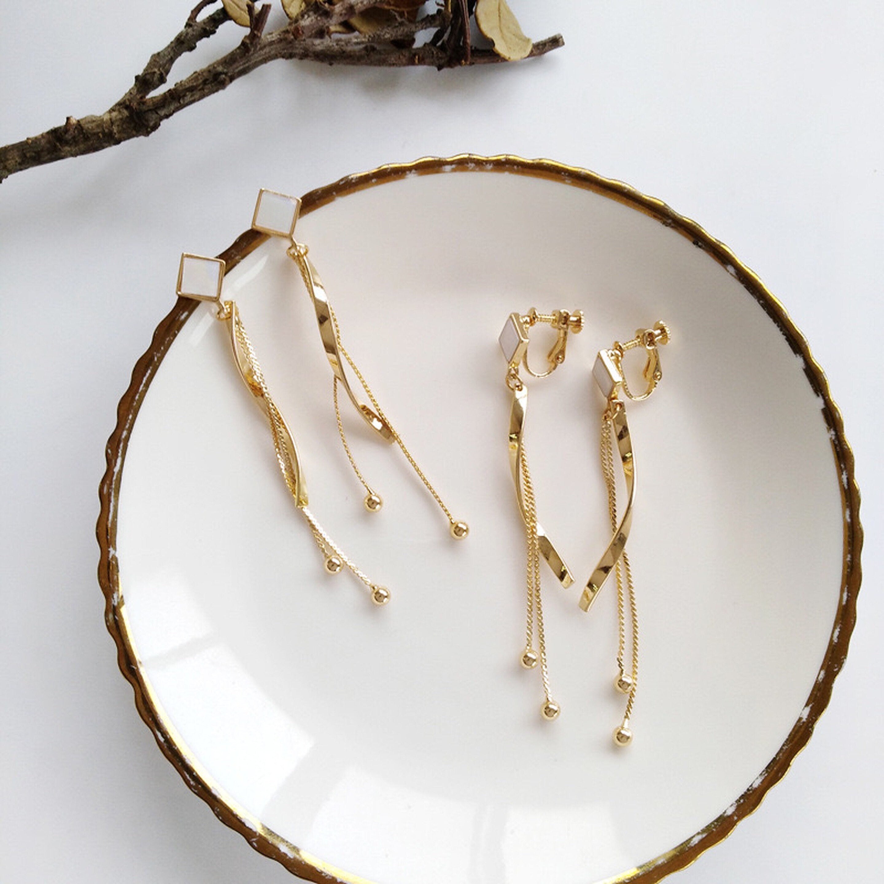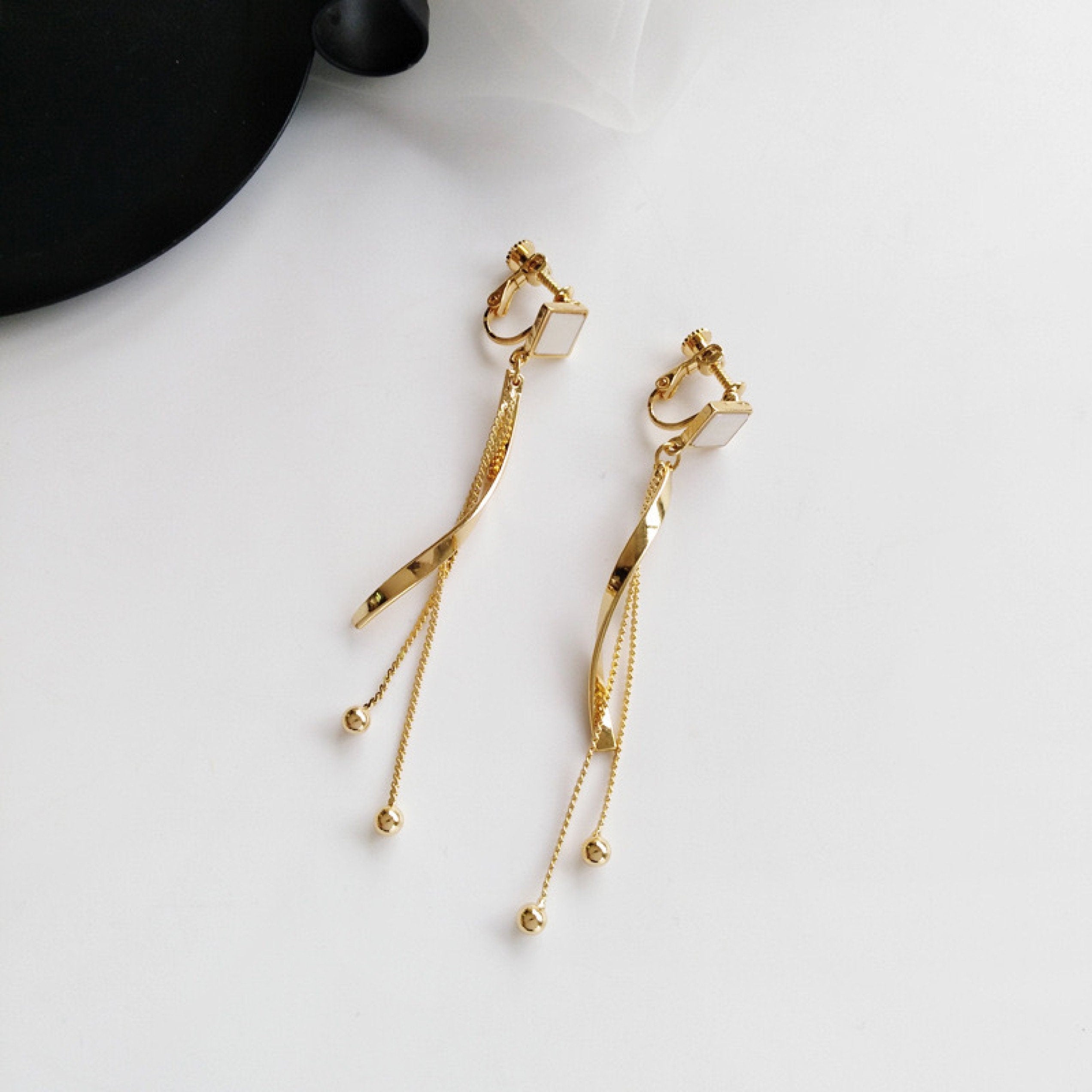 Moderne, minimalistische, spiralförmige Ohrhänger aus Gold. Geometrischer Ohrstecker aus weißem Email. Mit 2 baumelnden goldenen Tropfenkugeln. Stilvoller, moderner Chic. Einfach und doch mehr als einfach. Handgefertigt aus 925er Sterlingsilber. Gut für empfindliche Haut. Ihre unverzichtbaren Ohrringe für jeden Tag. Perfekt für jeden Anlass.