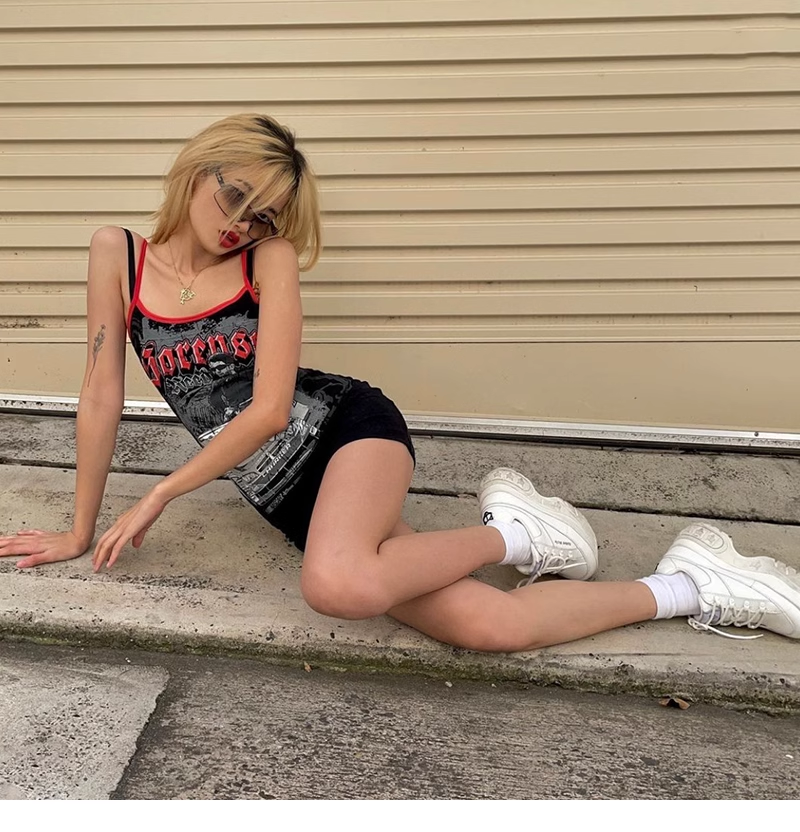 Sommer neue retro druck straße fotografie persönlichkeit kleid weibliche kleine schwarze kleid figurbetontes kleid