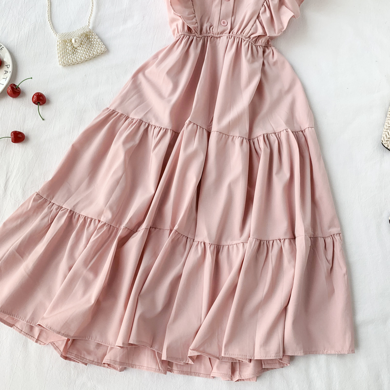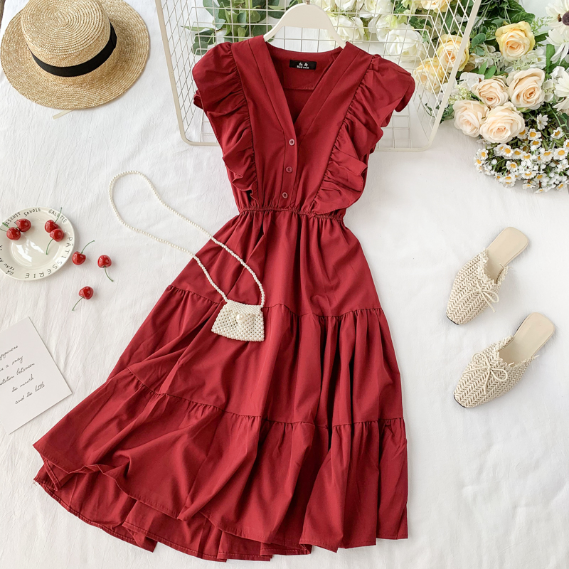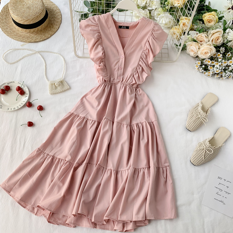 Ärmelloses Sommerkleid im Vintage-Stil mit V-Ausschnitt und Rüschen