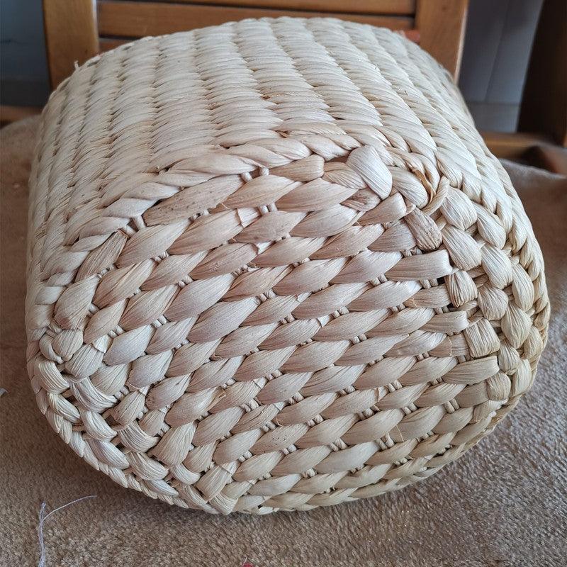 Bolsa de tela tejida con paja decorada con cuentas de papel y cuerda bordadas con pájaros en color amarillo claro