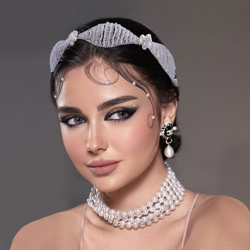 Haz que tu próximo evento sea inolvidable con esta diadema adornada con cristales. Fabricada con herrajes en tono plateado y adornada con una construcción contorneada. Presenta gemas brillantes junto con cuentas revestidas transparentes. Una banda flexible acentuada con perlas cultivadas y cristales facetados. Las presillas laterales terminan con cintas de malla para atar. Encuentra más diademas de novia modernas para mujer o accesorios para el cabello únicos en nuestra boutique. y completa un estilo retro con un collar barroco.