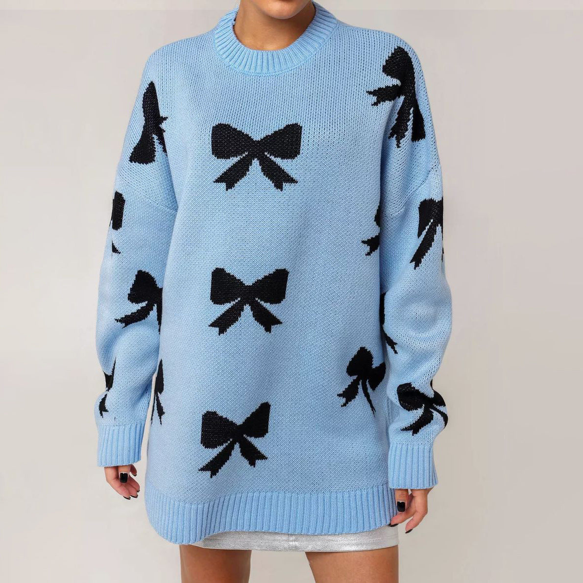 Este suéter de punto navideño presenta un patrón de lazos divertido por todas partes, que ofrece un aspecto extravagante pero elegante. Diseñado con un escote redondo clásico y mangas largas, el ajuste relajado garantiza comodidad y facilidad de uso. El dobladillo y los puños acanalados agregan un toque estructurado, que complementa la silueta acogedora. Ideal para los días más fríos, este suéter aporta un elemento divertido y moderno a tu guardarropa.