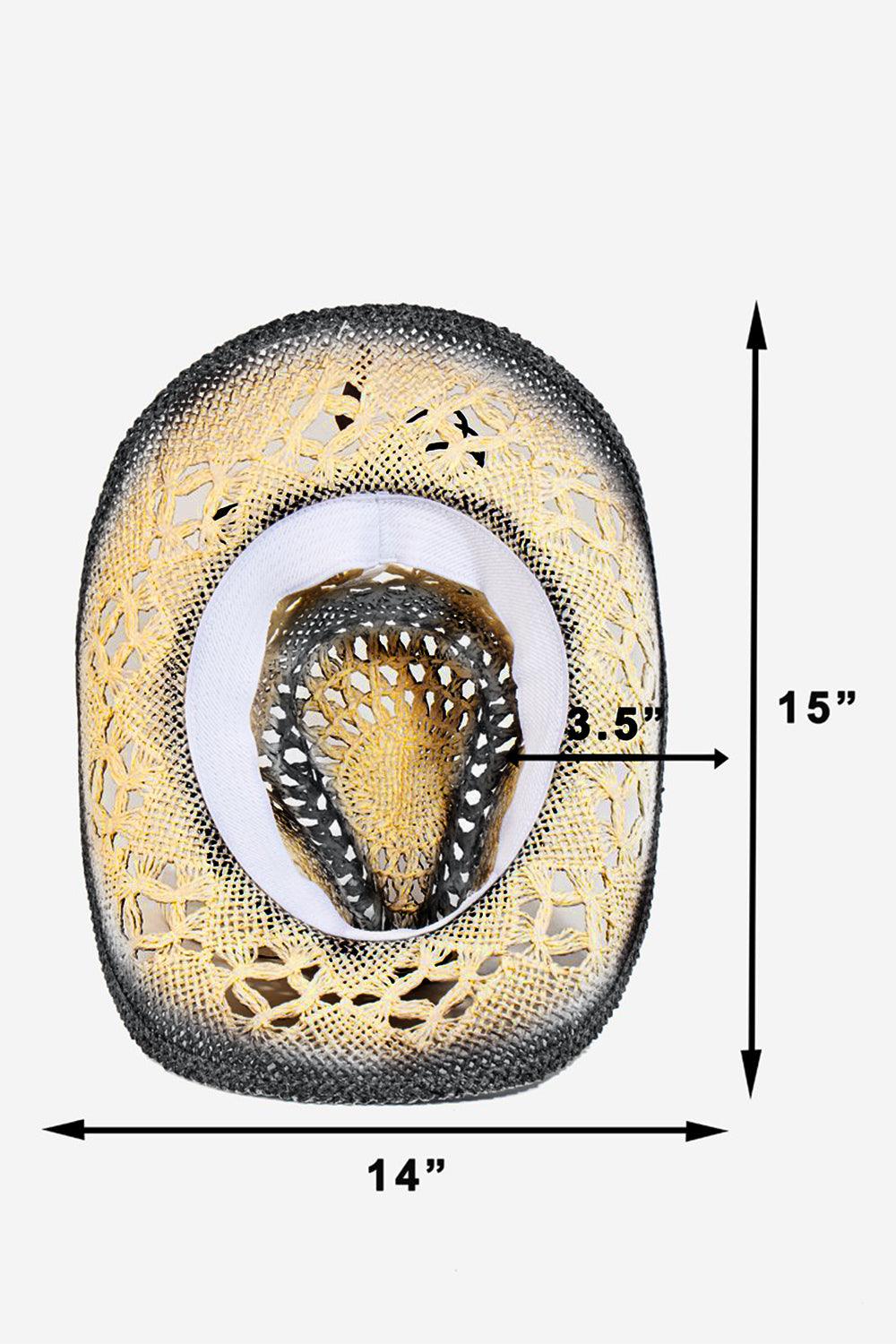 Este sombrero de ala ancha con correa de cuerda recortada es un accesorio elegante y único para los días soleados. El diseño recortado agrega un toque moderno al estilo clásico de sombrero de ala ancha. El detalle de la correa de cuerda le da un aire playero y relajado. Perfecto para salidas de verano. Mantente fresca y a la moda mientras te proteges del sol con este llamativo sombrero de ala ancha con correa de cuerda recortada.