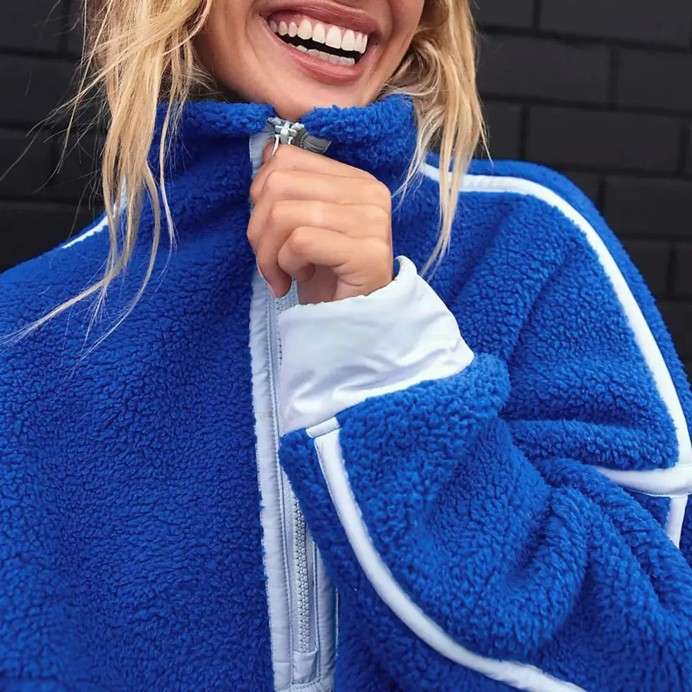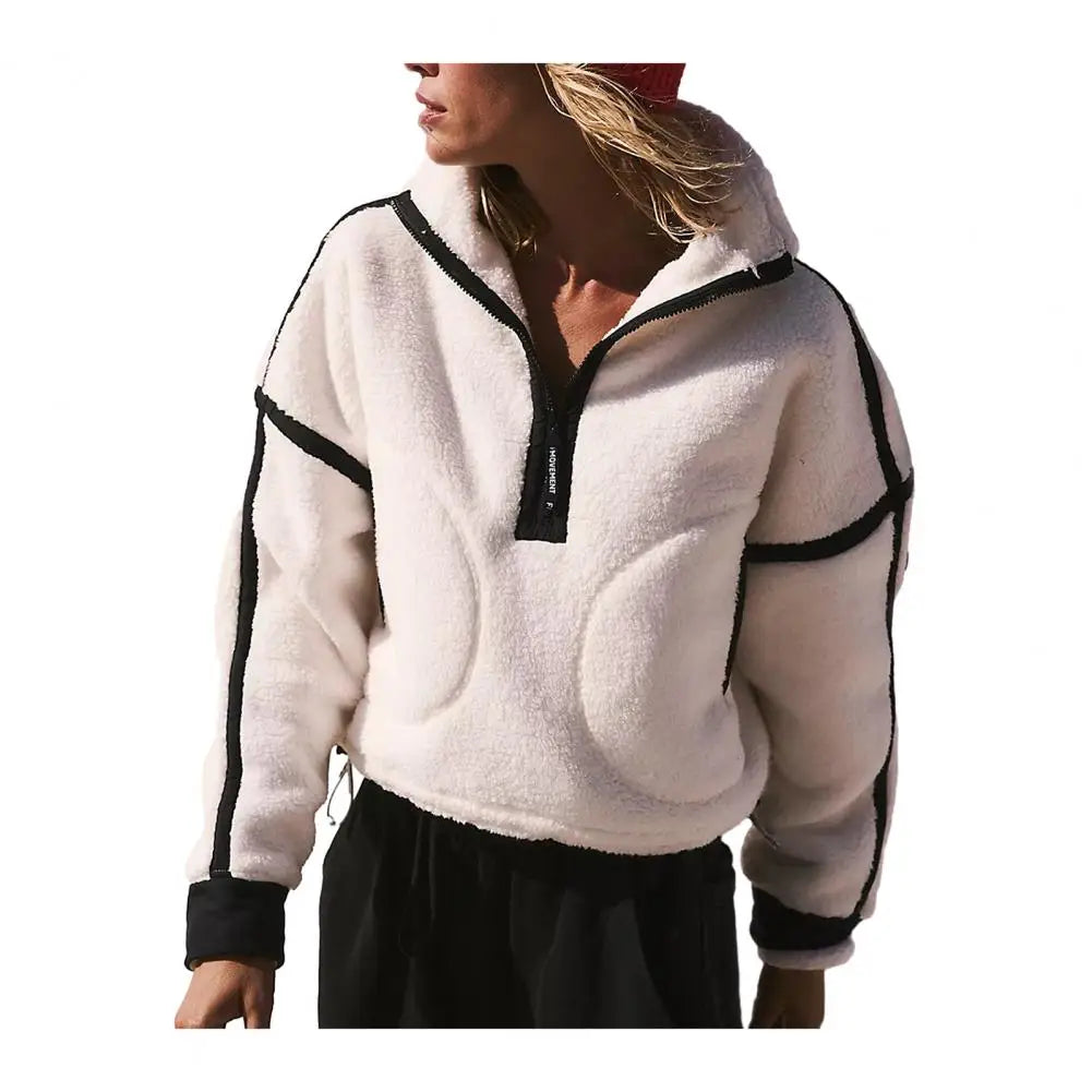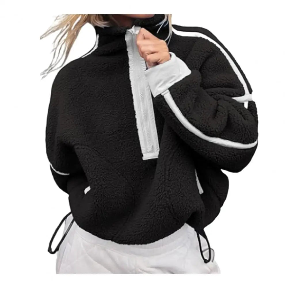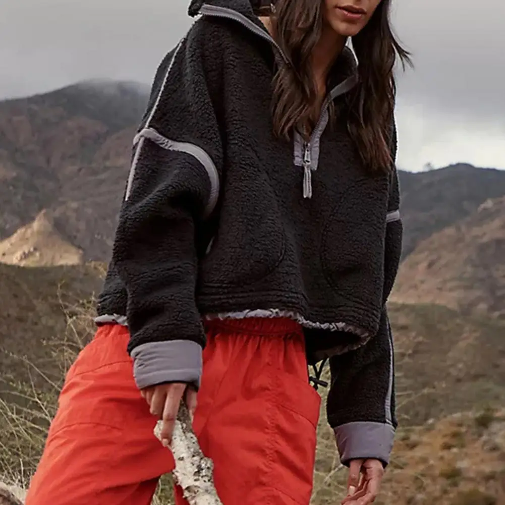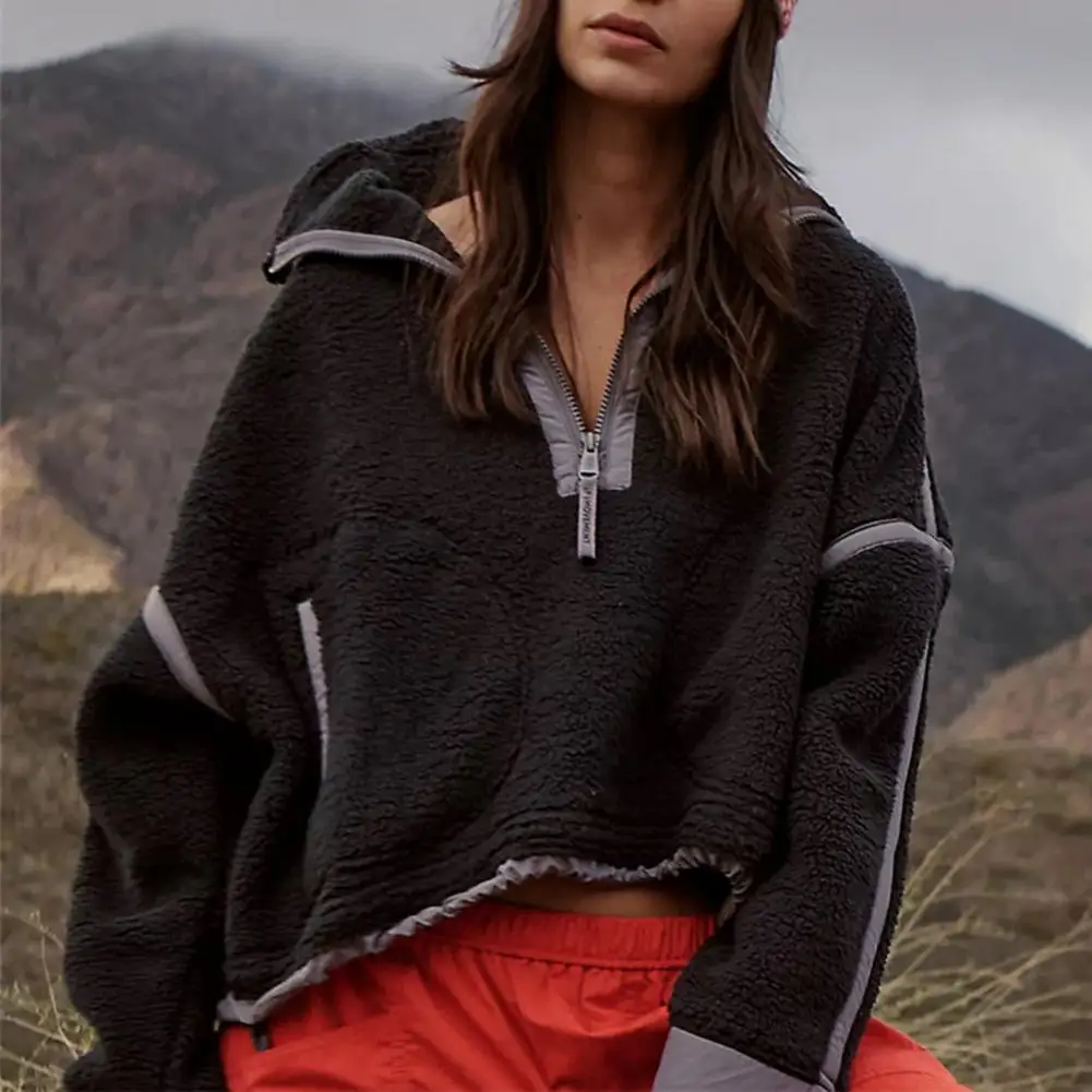 Sudadera de manga larga con cremallera, cordón ajustable, media cremallera en contraste, mangas farol y bolsillos laterales en mezcla de poliéster