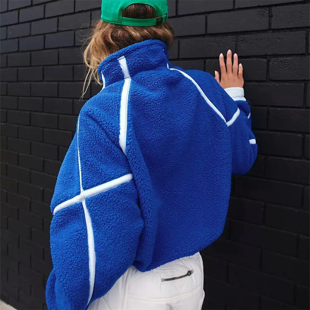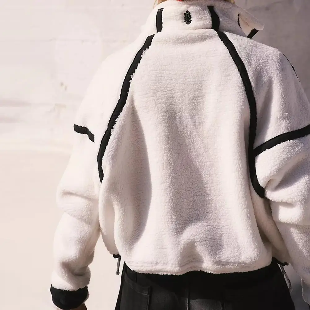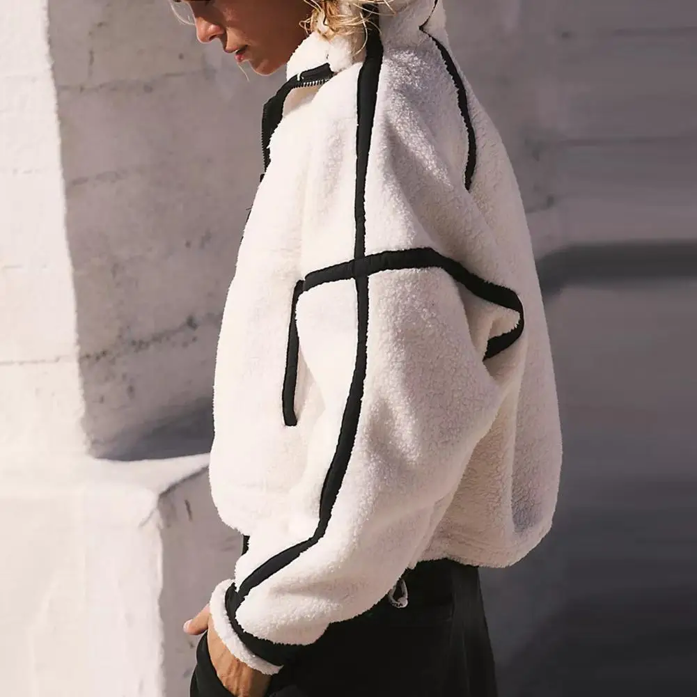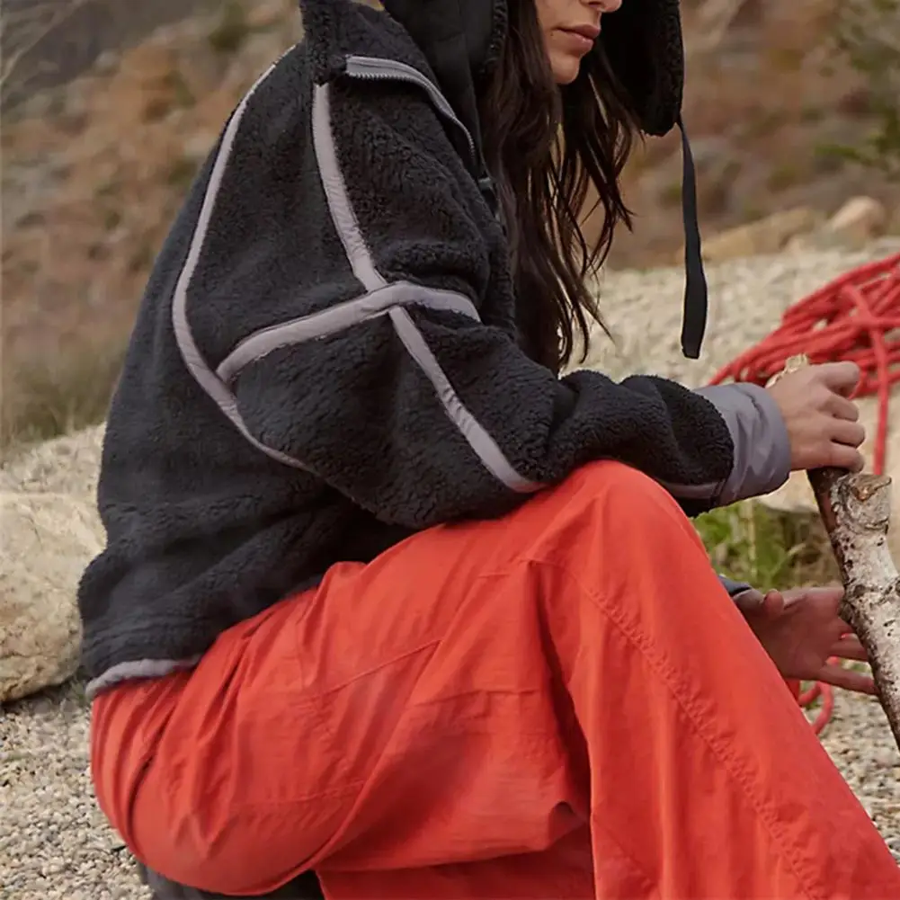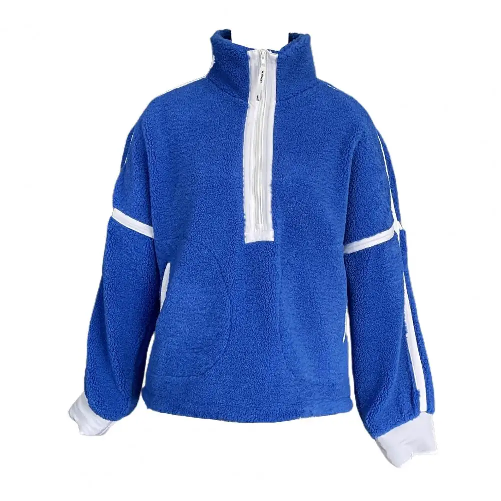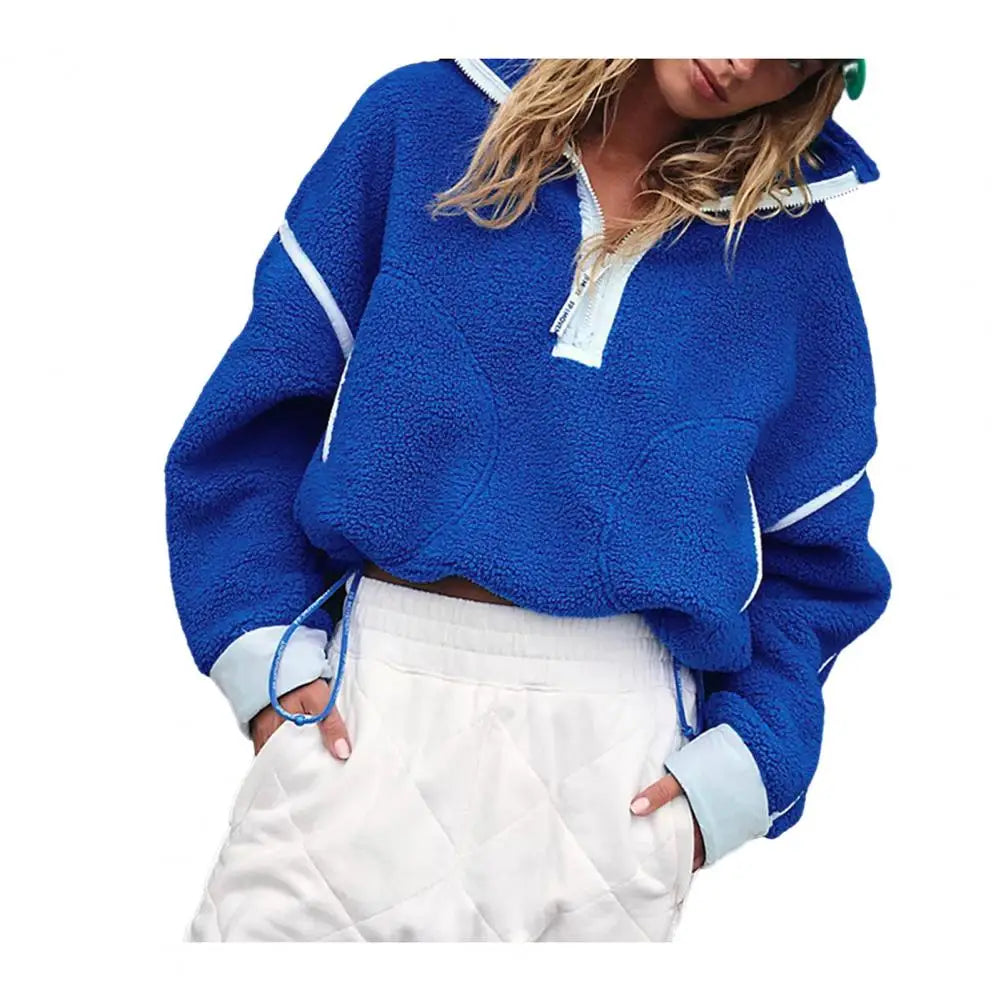 Sudadera de manga larga con cremallera, cordón ajustable, media cremallera en contraste, mangas farol y bolsillos laterales en mezcla de poliéster