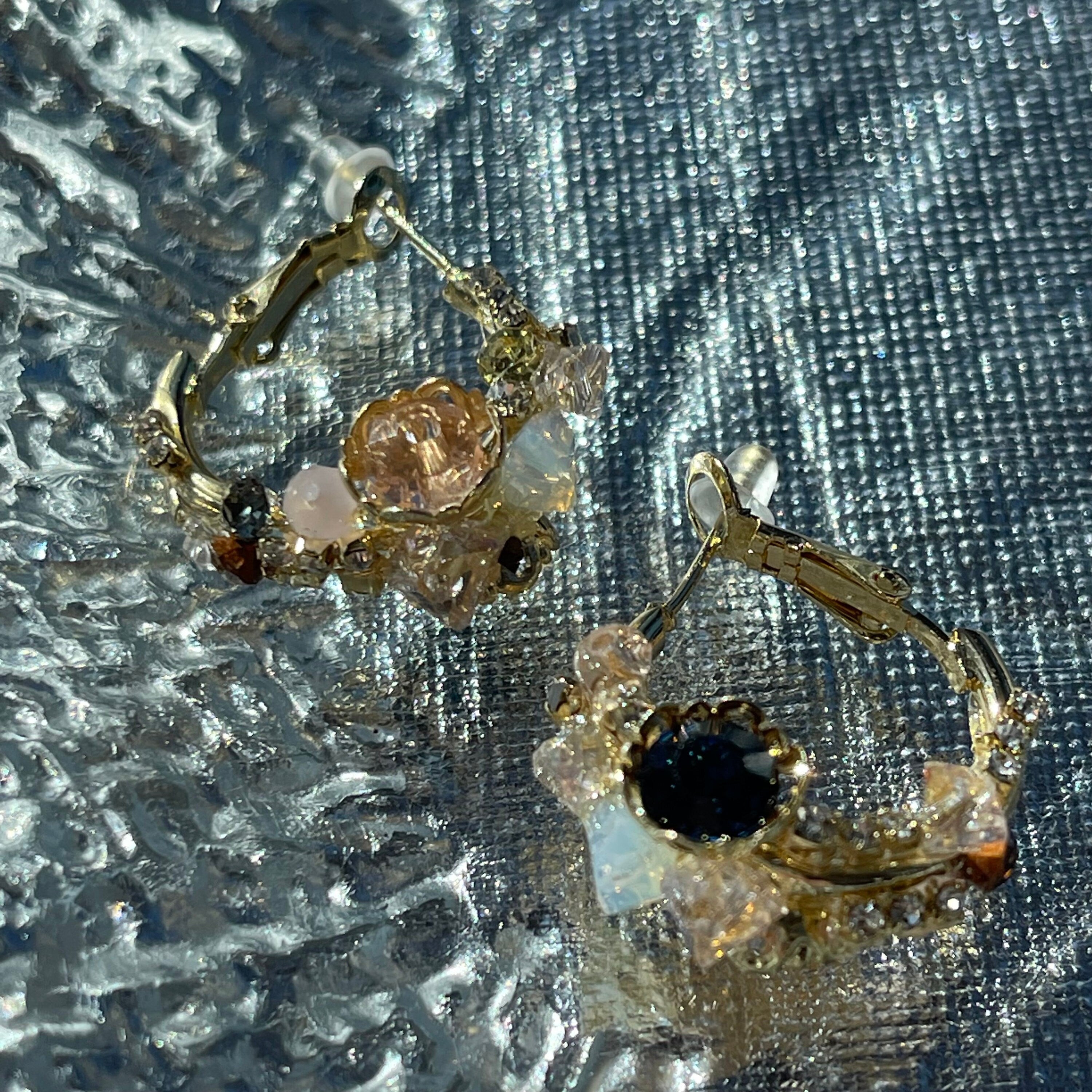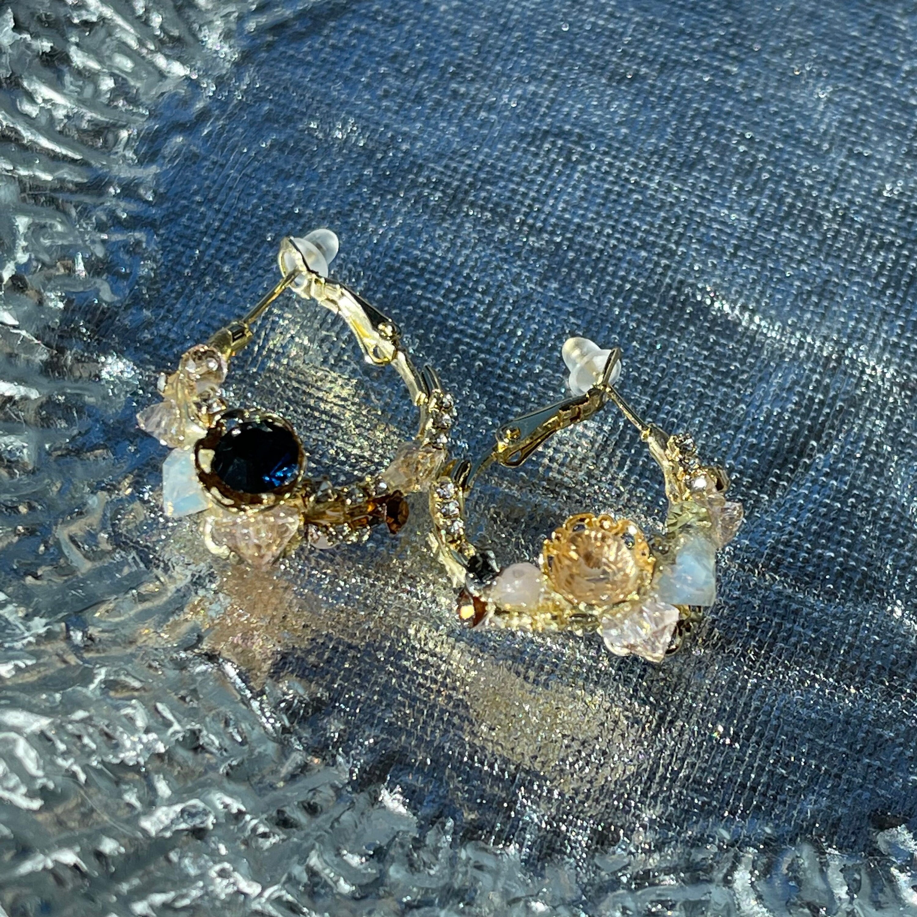 Aros con cristales multicolores superbonitos. Aros florales chapados en oro de 14 k. Gemas de cristal multipiedra hechas a mano con exquisitos detalles de flores doradas. Estilo colorido y moderno que combina perfectamente con cualquier ocasión. ¡Agrega un poco de picante a tu atuendo!