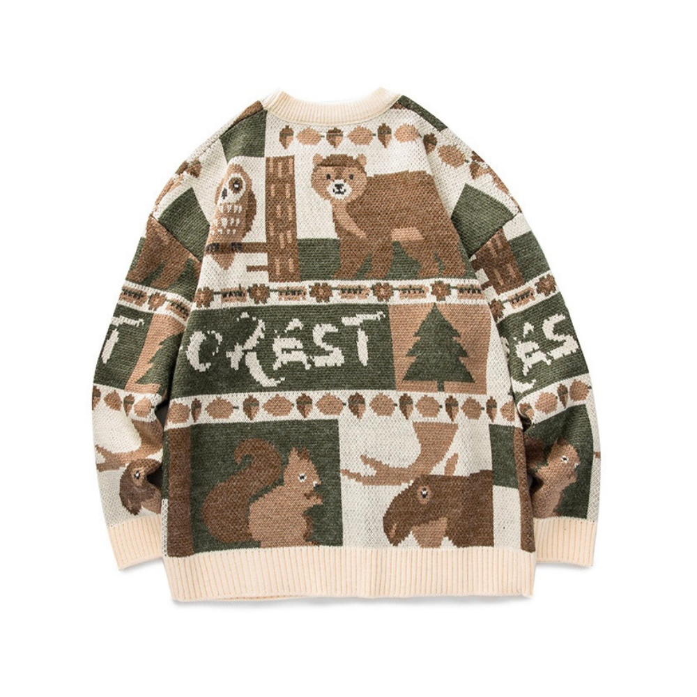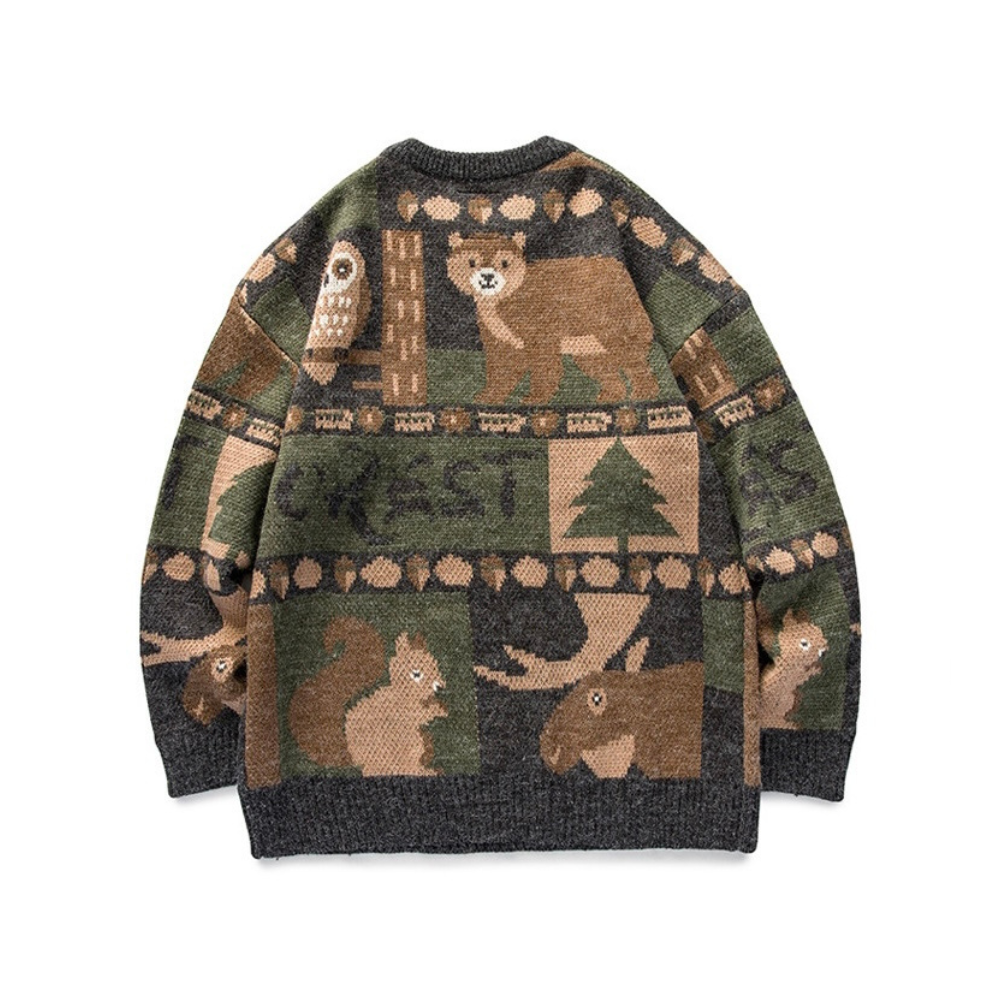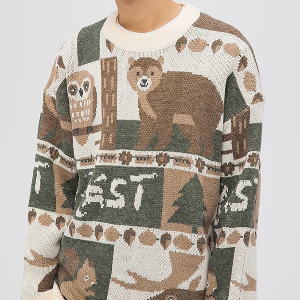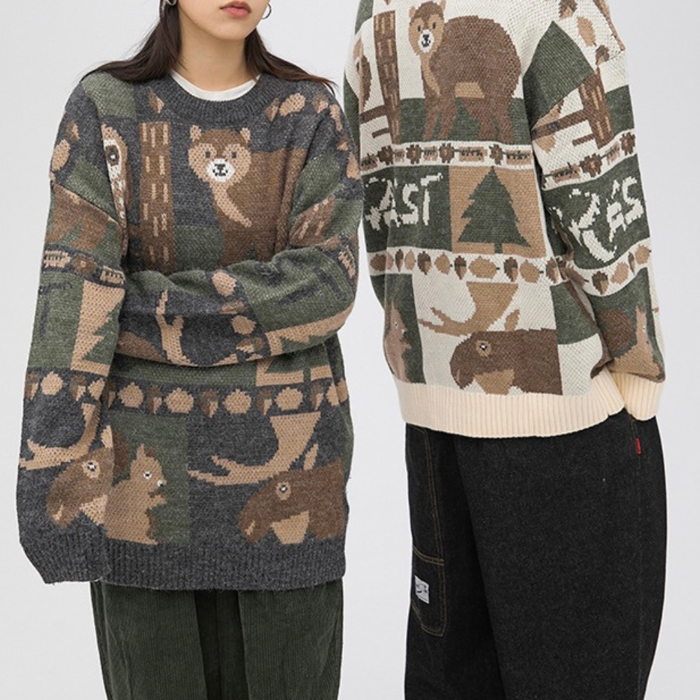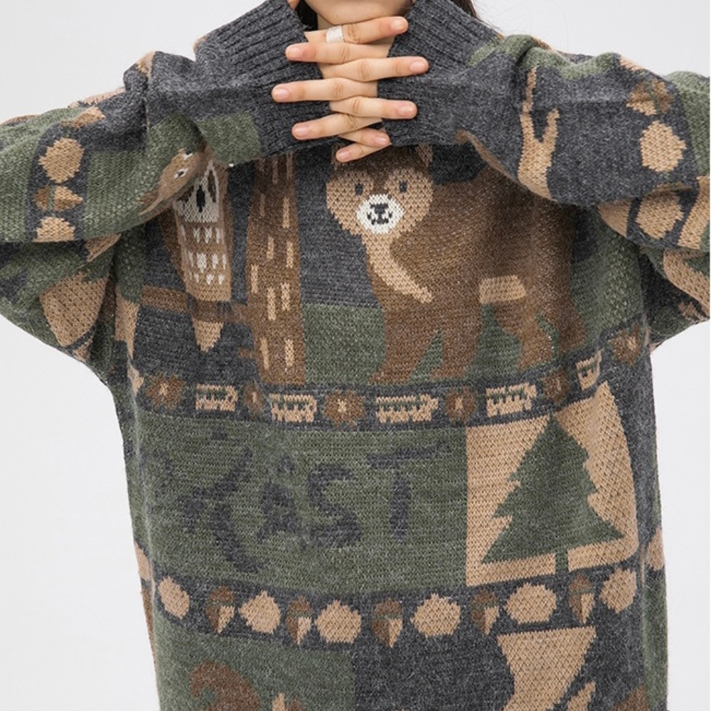 Este suéter está hecho de una mezcla de lana y acrílico de alta calidad que es suave y cómodo de usar. El diseño de punto presenta un adorable patrón vintage con ojos y cuerpo coloridos para que te destaques entre la multitud.