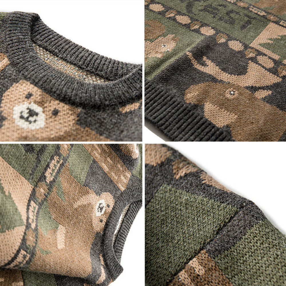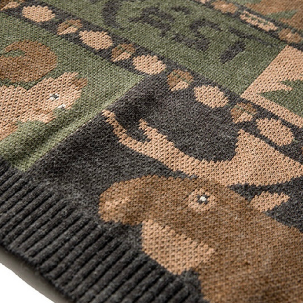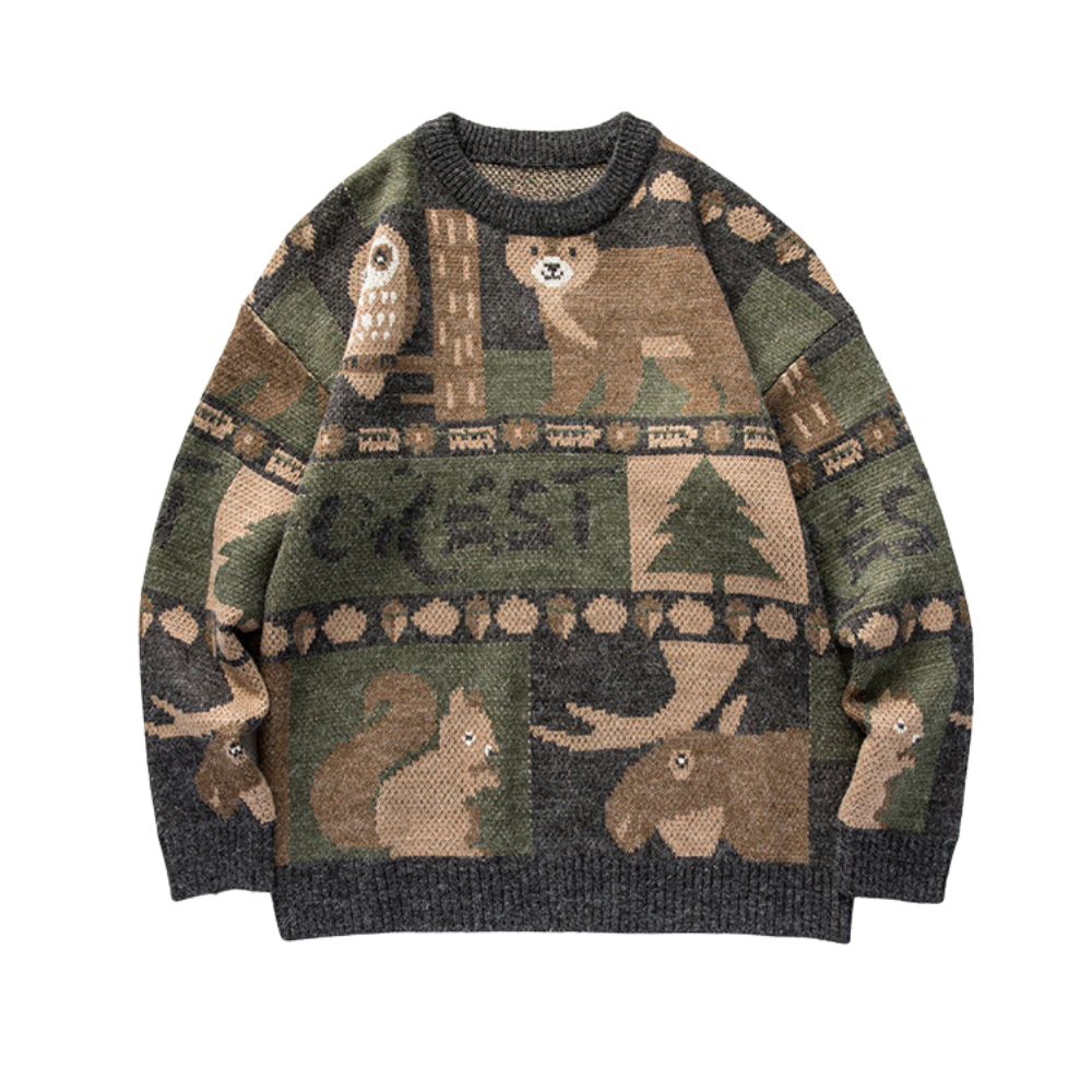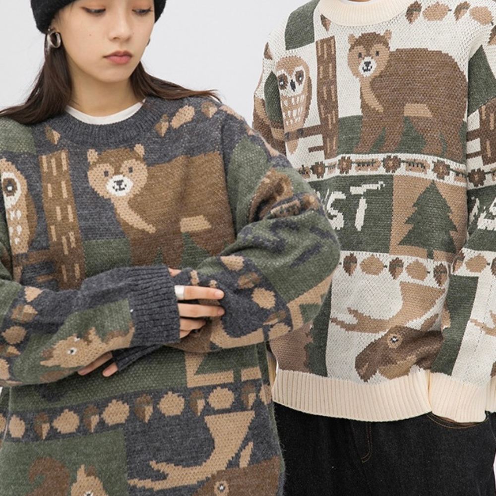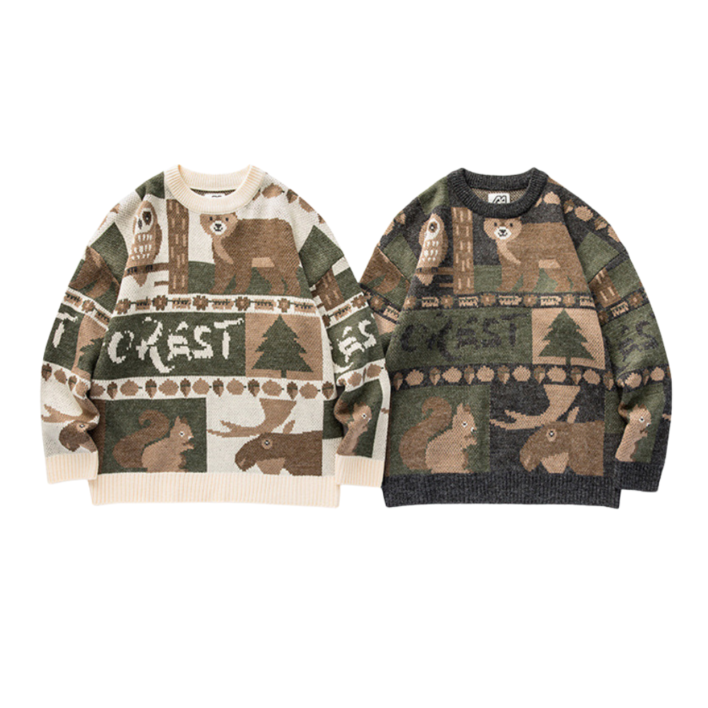 Este suéter está hecho de una mezcla de lana y acrílico de alta calidad que es suave y cómodo de usar. El diseño de punto presenta un adorable patrón vintage con ojos y cuerpo coloridos para que te destaques entre la multitud.