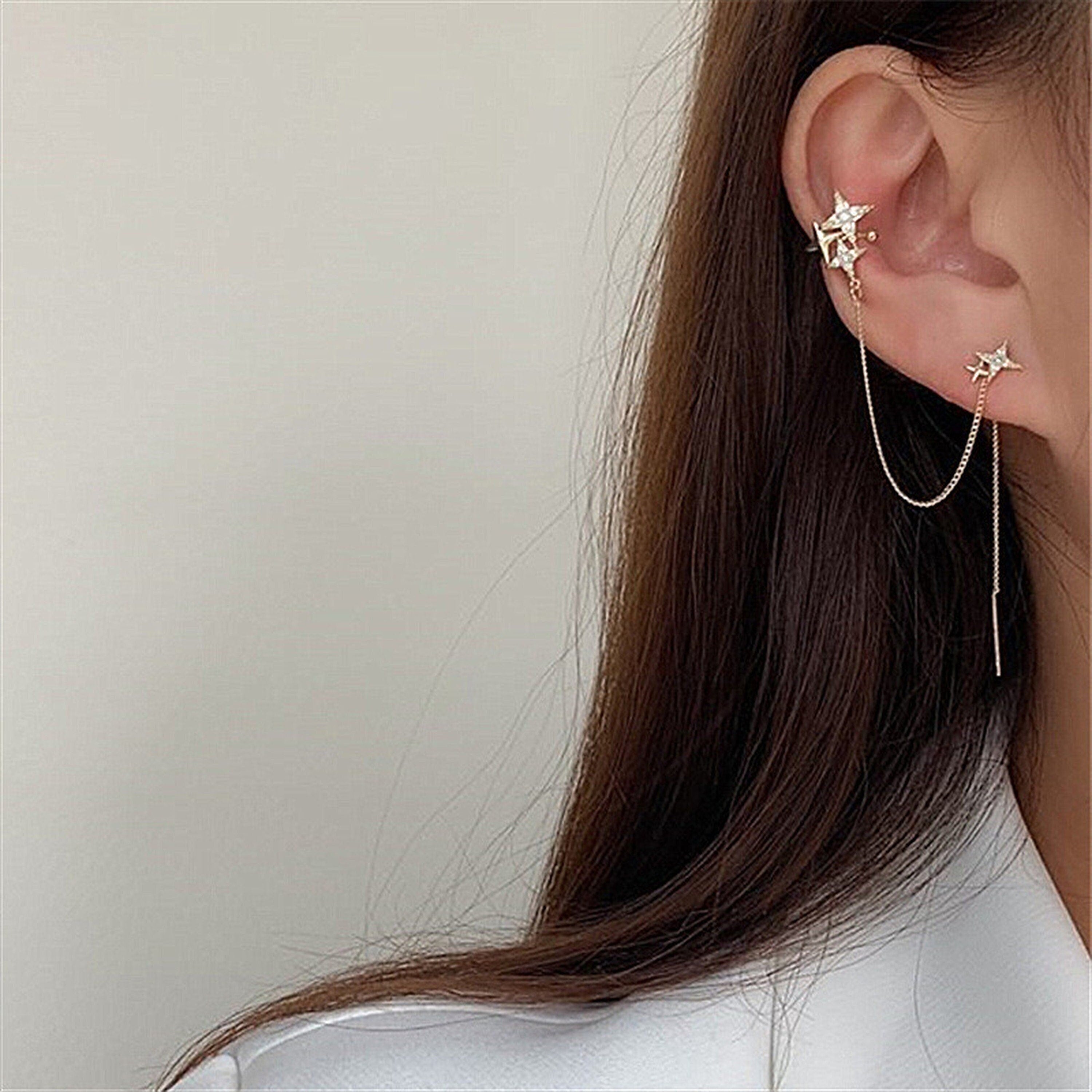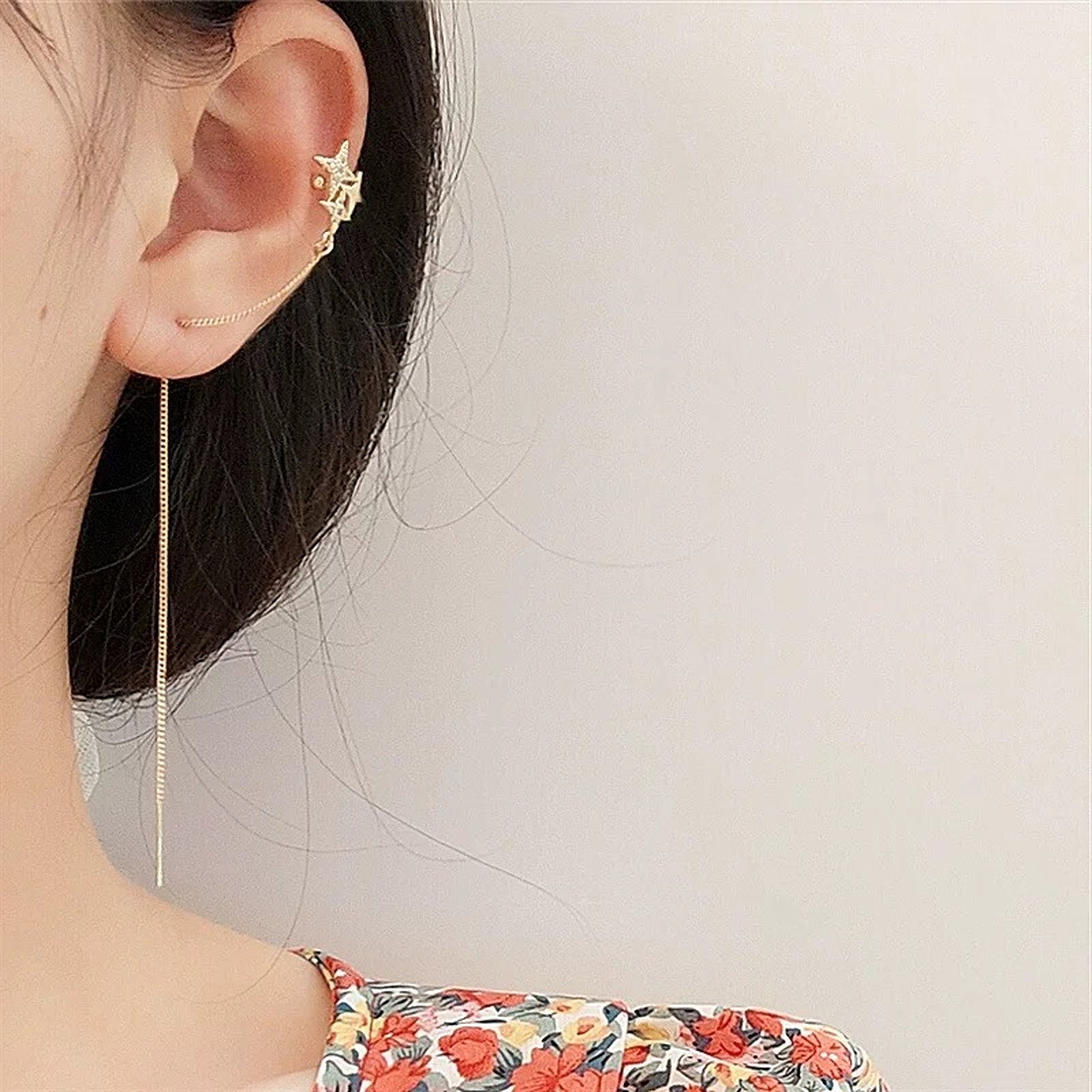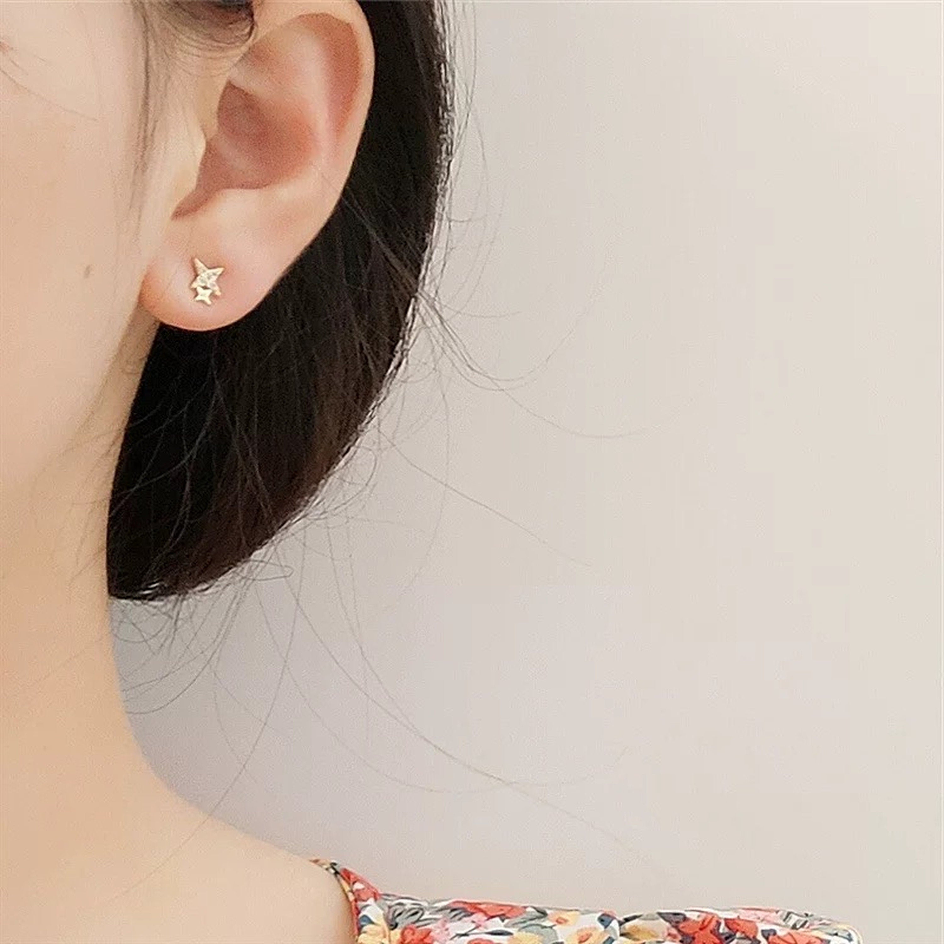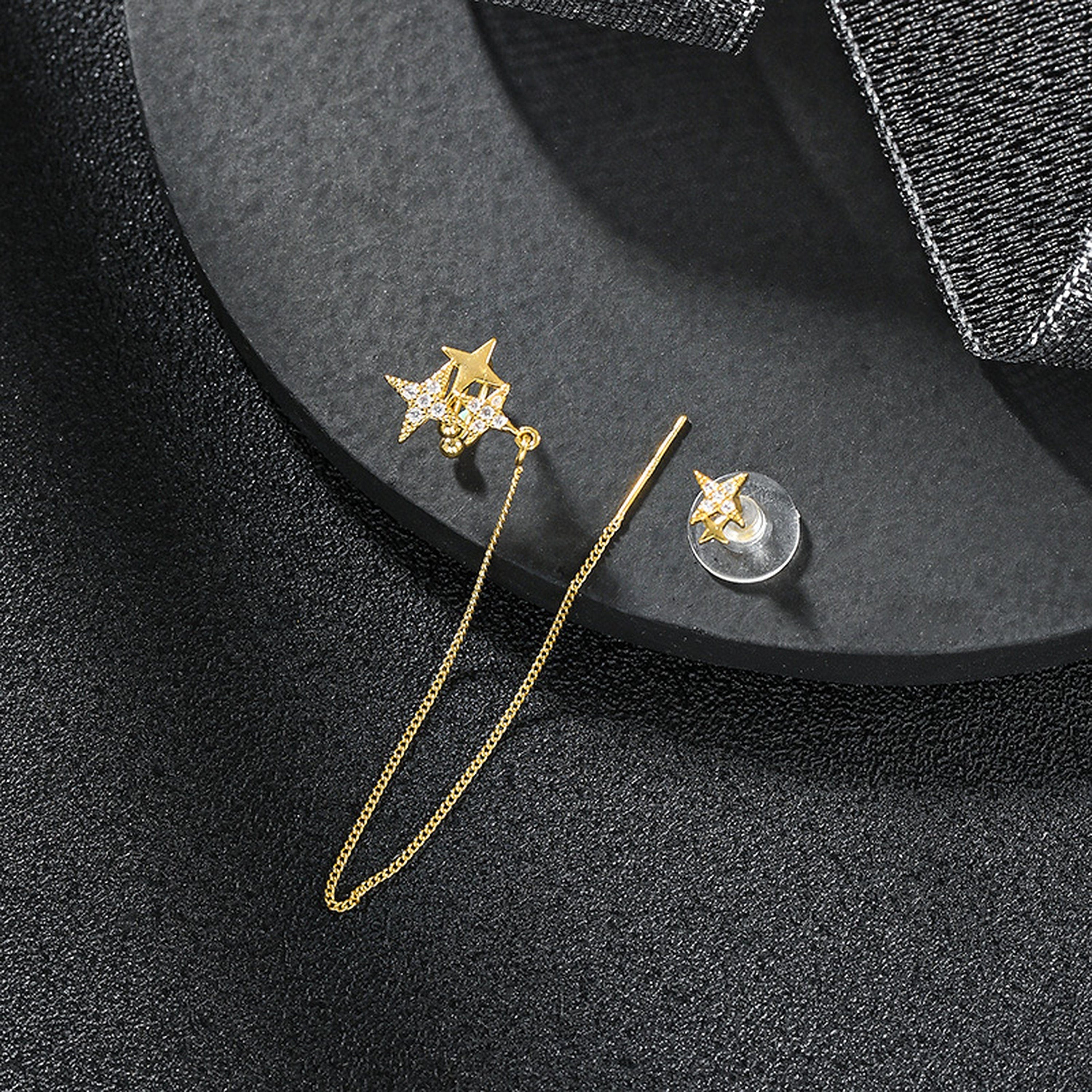 Delicados pendientes asimétricos de estrella del norte en oro. Pendientes de rosca con racimo de estrellas. Pendientes de botón celestiales con polvo de estrellas. Delicado diseño de racimo de estrellas. Un lado es un pendiente de cartílago con caracola con rosca colgante. El otro lado es un delicado botón de estrella. Estilo minimalista desigual. Brillante y elegante. Combina perfecto con cualquier atuendo. Joyas para el oído para todos los días. Hecho a mano con plata de ley 925 bañada en oro real. Bueno para pieles sensibles.