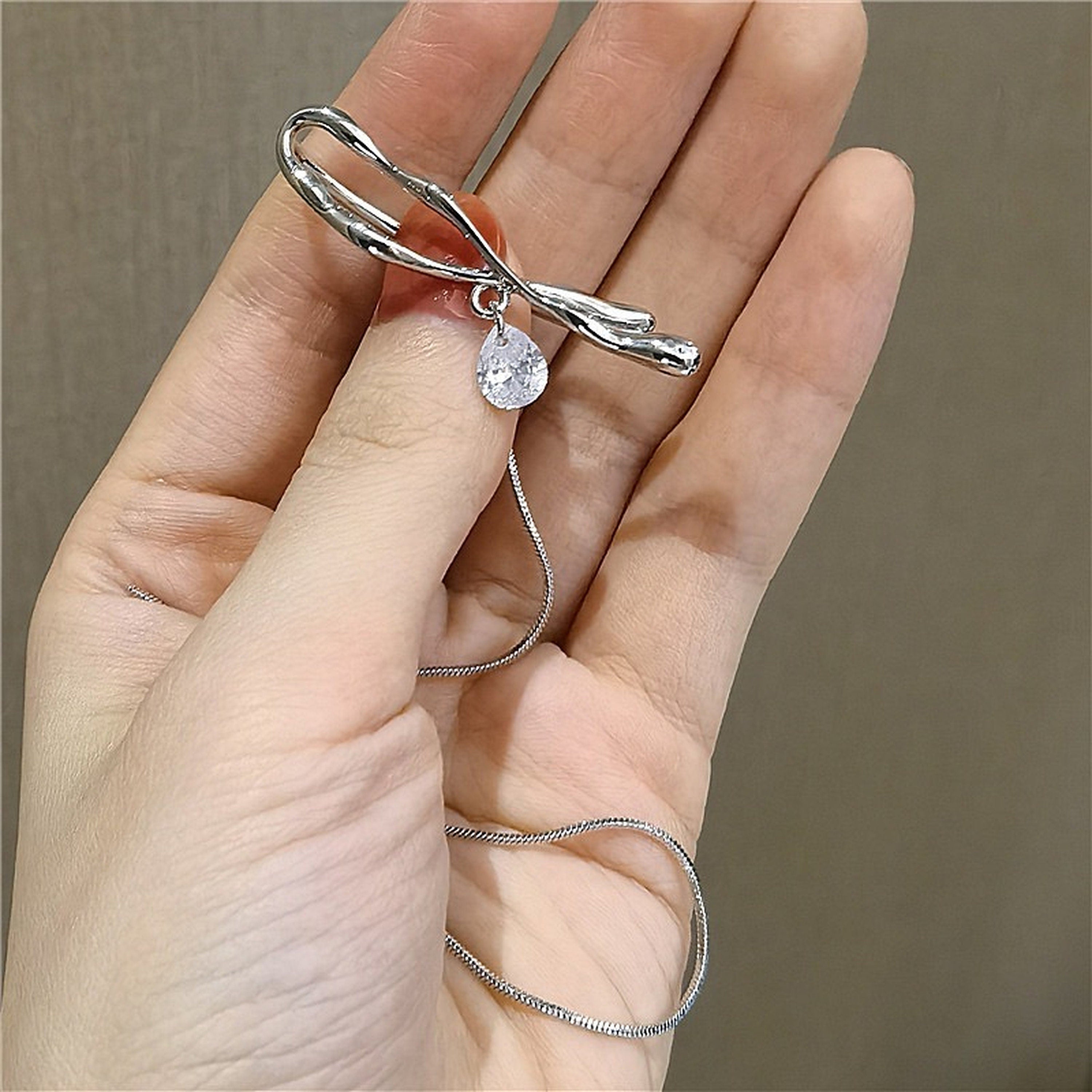 Pendiente de aro estilo punk con nudo de moño. Pendiente de aro largo y colgante. Con una gota de piedra preciosa de cristal. Pendiente de aro plateado muy llamativo. Forma única hecha a mano. Fácil de colocar en el cartílago. No necesita agujero en la oreja. El complemento perfecto para tu estilo chic.