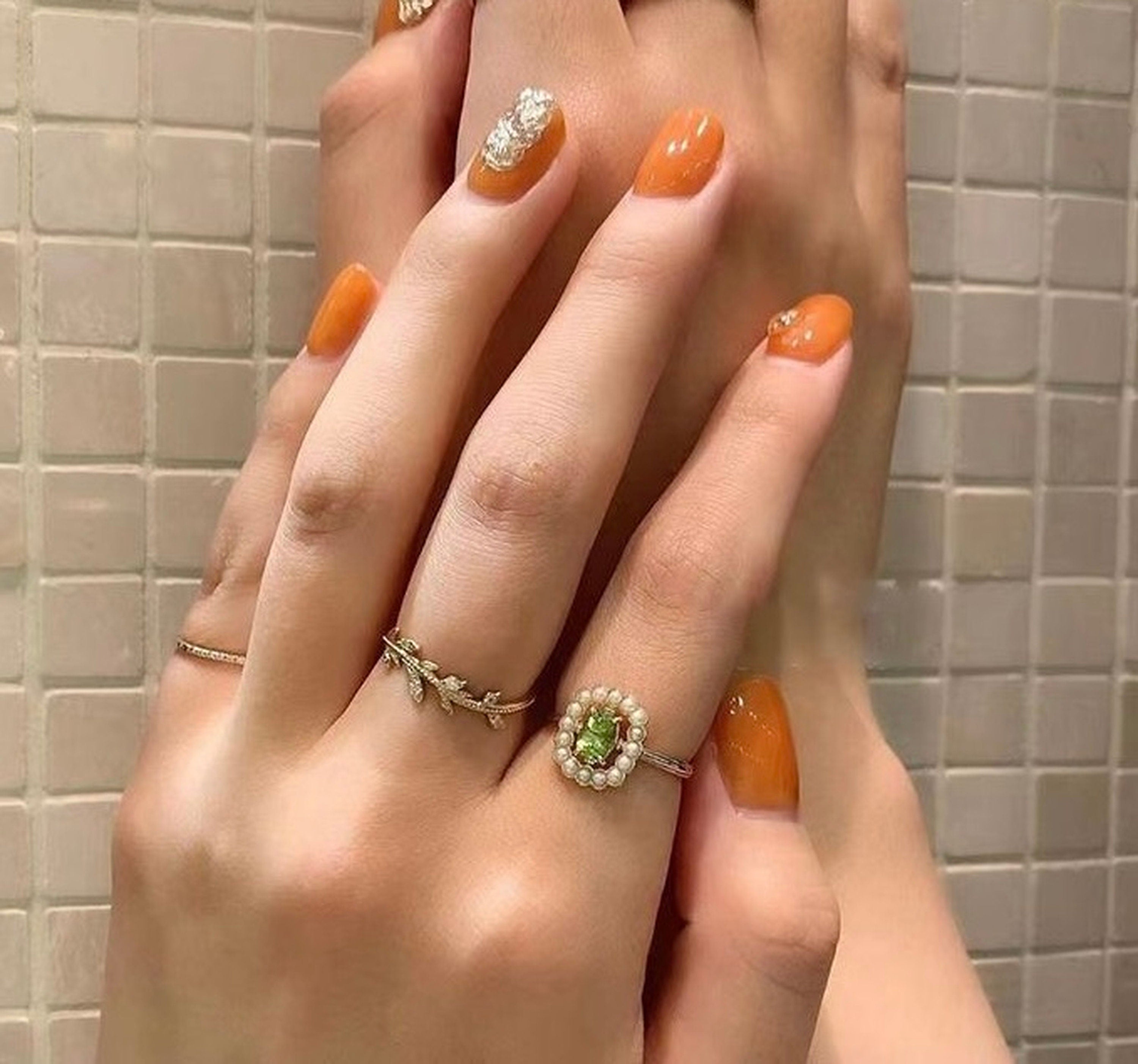 Anillo de estilo vintage con cristal de cuarzo olivino y peridoto verde natural. Acabado en oro rosa. Con pequeñas perlas rodeadas. La delicada piedra preciosa verde oliva en forma de rectángulo luce femenina y elegante. La banda de oro rosa es ajustable. Versátil para cualquier dedo según tus preferencias. Hermoso anillo de cóctel para mostrar tu característica única.