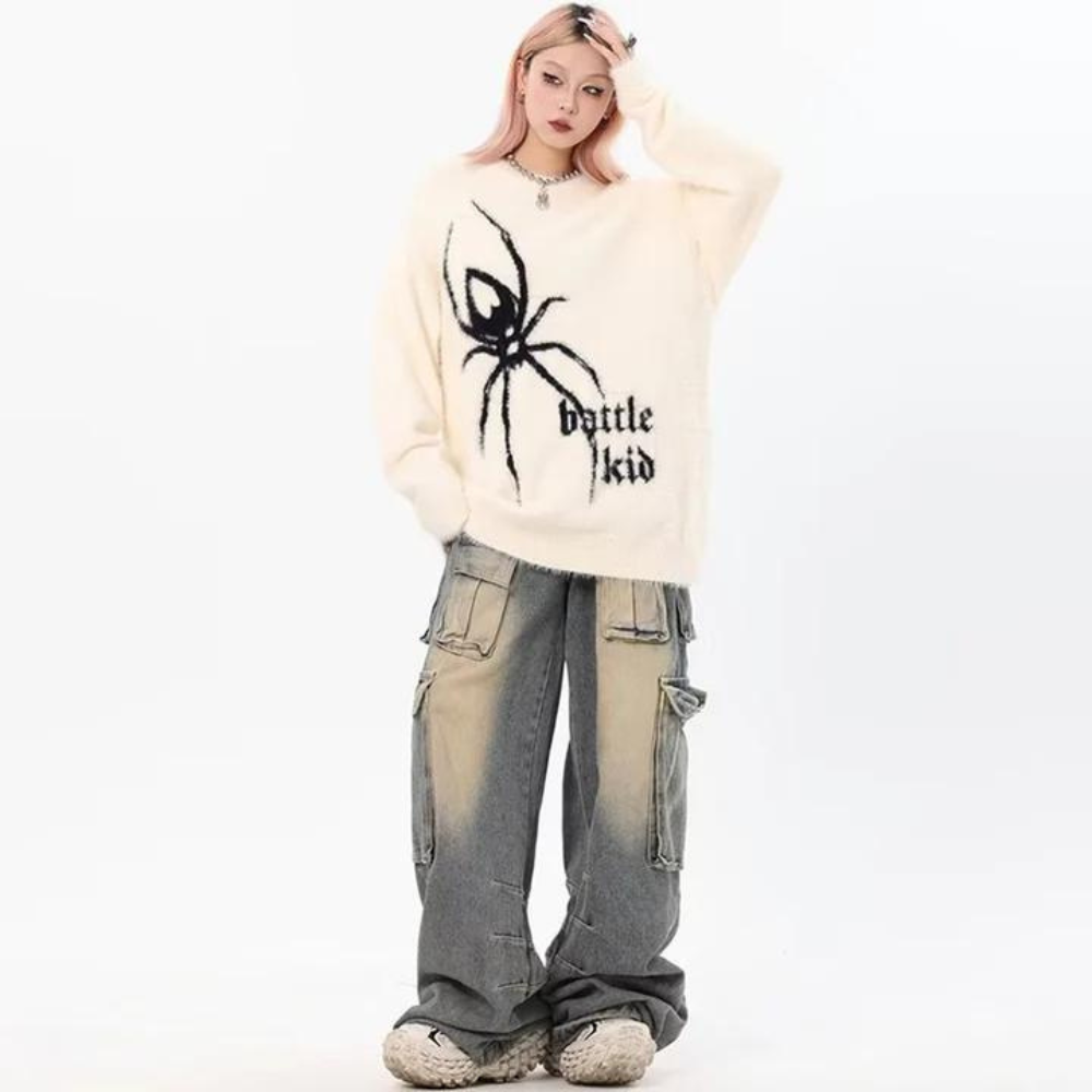 Atrévete con el suéter de jacquard con letras de araña de High Street. Muestra tu personalidad atrevida con este elegante suéter de jacquard. Seguro que llamarás la atención con sus letras únicas. Deja que tu audaz sentido del estilo brille y toma una postura con este llamativo suéter.