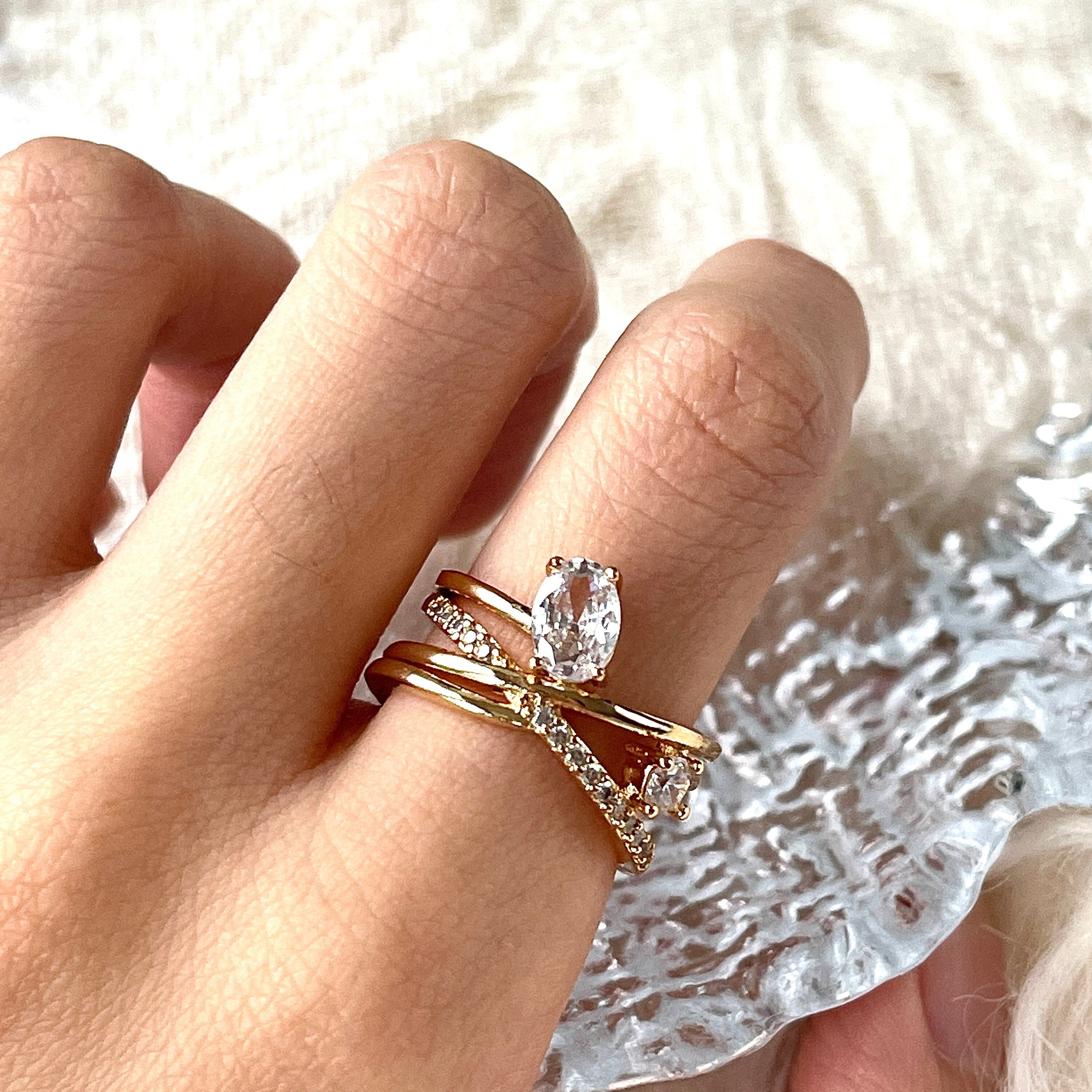Anillo de cóctel de oro rosa entrelazado con diseño infinito y diamante de circonita cúbica en la parte superior. Las impresionantes piedras preciosas de cristal muestran destellos elegantes, elegantes y delicados. Estilo chic de las influencers de tendencia, delicado y delicado. Cómodo, abierto y ajustable. Se adapta fácilmente a la talla estadounidense 4-9. Combina perfecto con el estilo diario, para ocasiones especiales, de novia o de dama de honor. ¡Sé la más brillante sin esfuerzo!