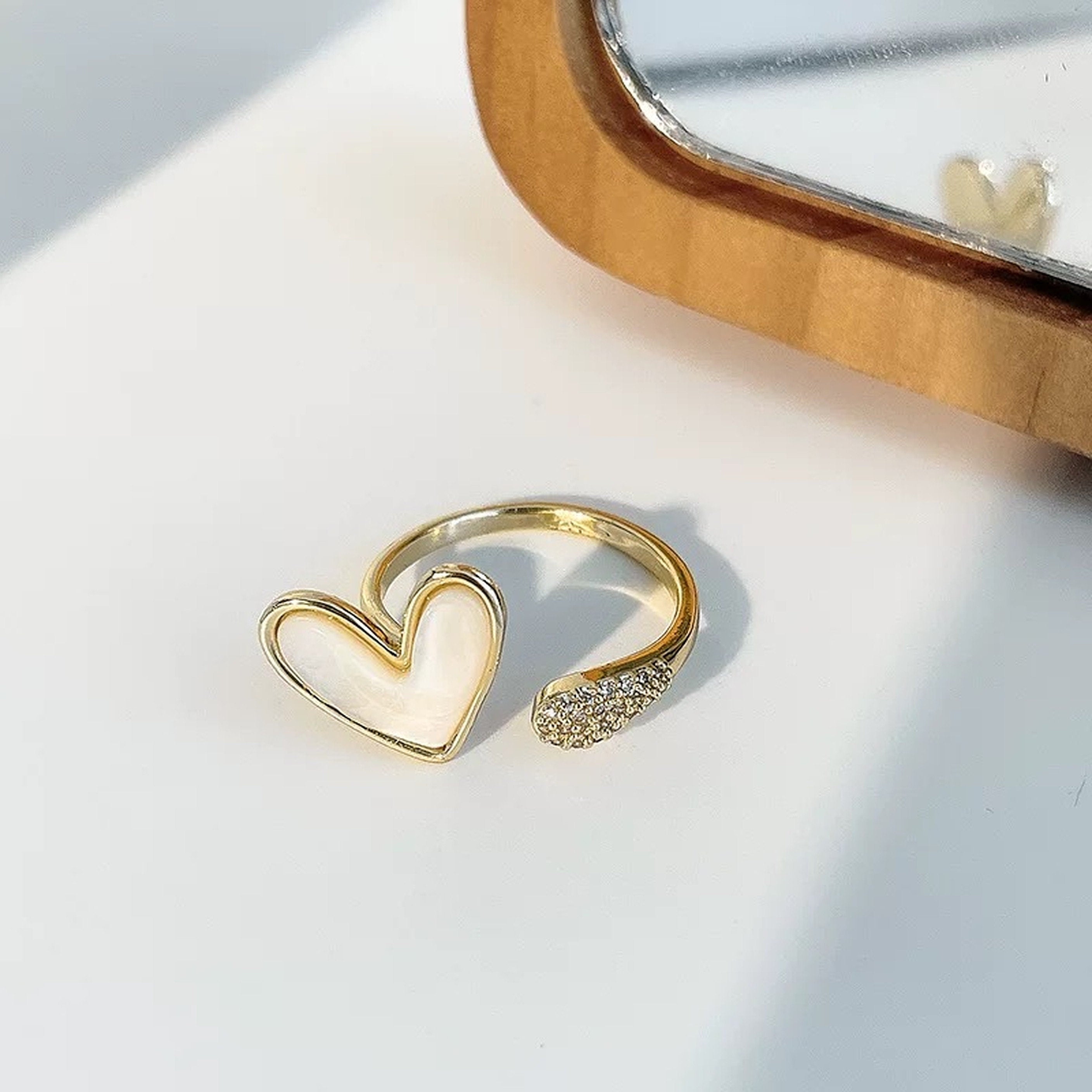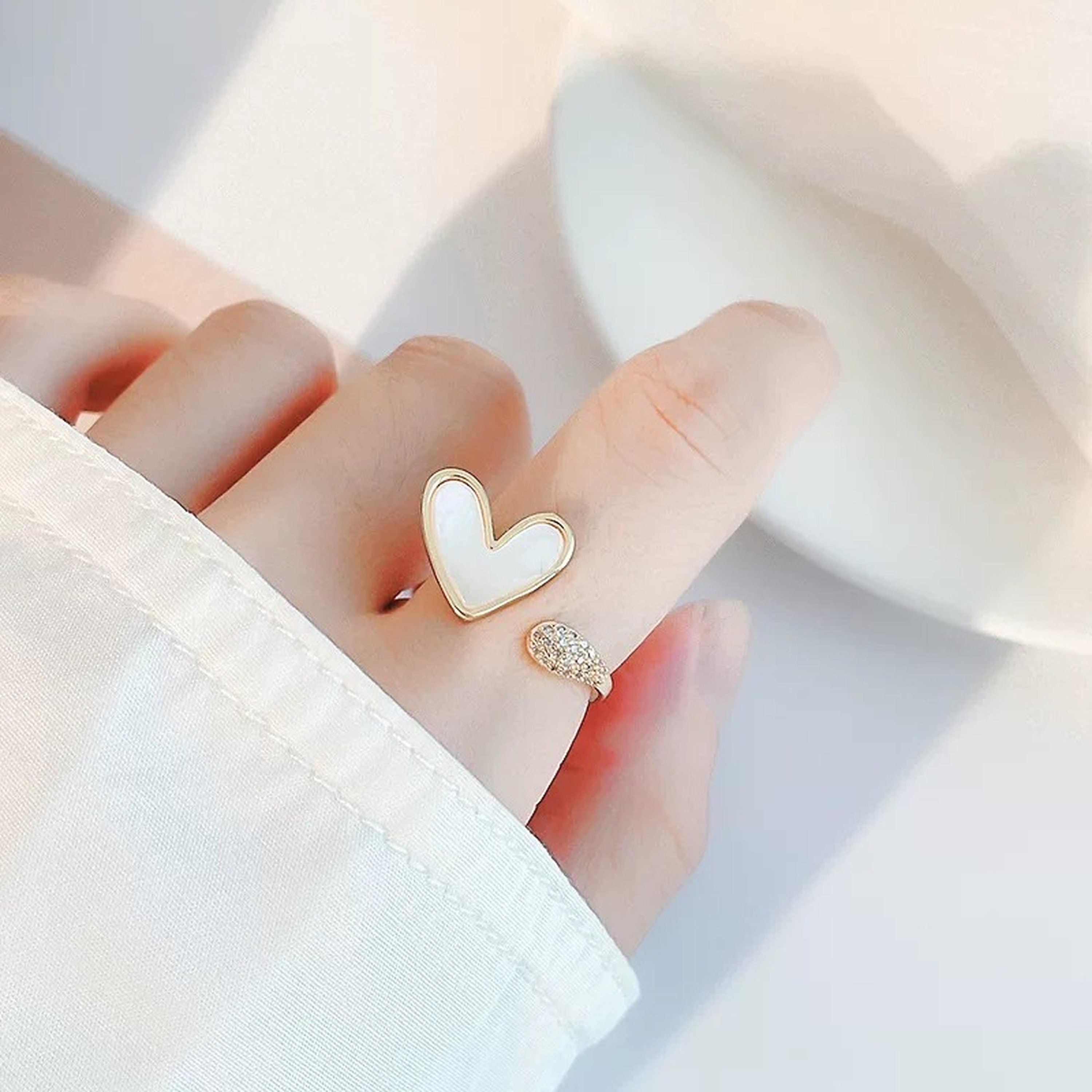 Impresionante anillo de cóctel de nácar de agua dulce natural/concha. Lindo sello en forma de corazón. Pavimentado con circonitas. Abierto y ajustable. Fácil de usar. Temática de amor y océano. Súper único y creativo. Eleva tus vibraciones delicadas. Regalo perfecto para darte un gusto a ti mismo y a tus amigos/familia. ¡Seguro que recibirás muchos cumplidos!