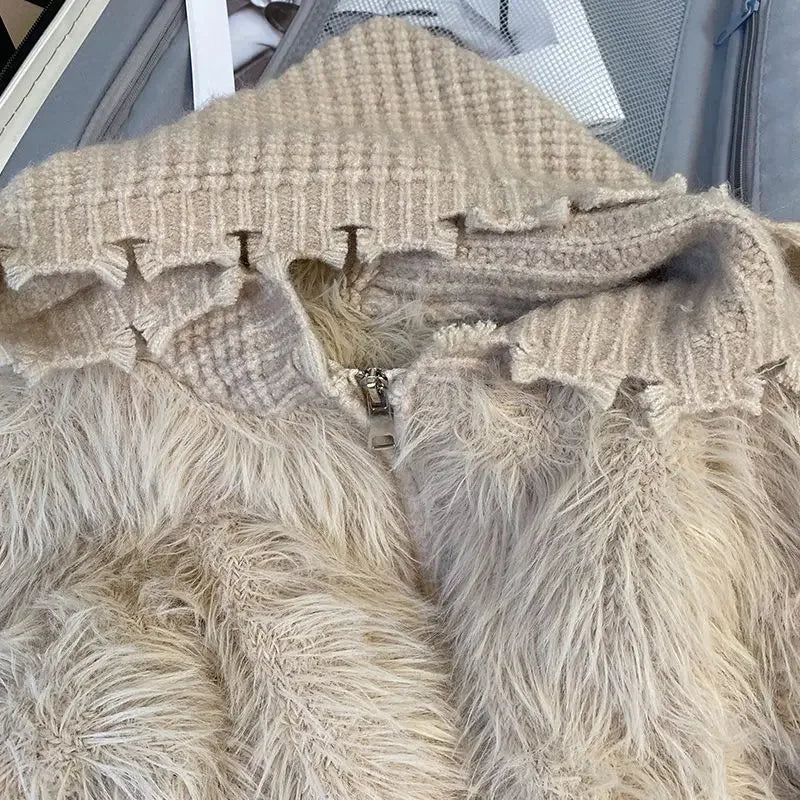 Cárdigan de mujer Suéteres de cachemira de visón Prendas de punto Suéter con capucha Abertura con cremallera. Ligeramente elástico