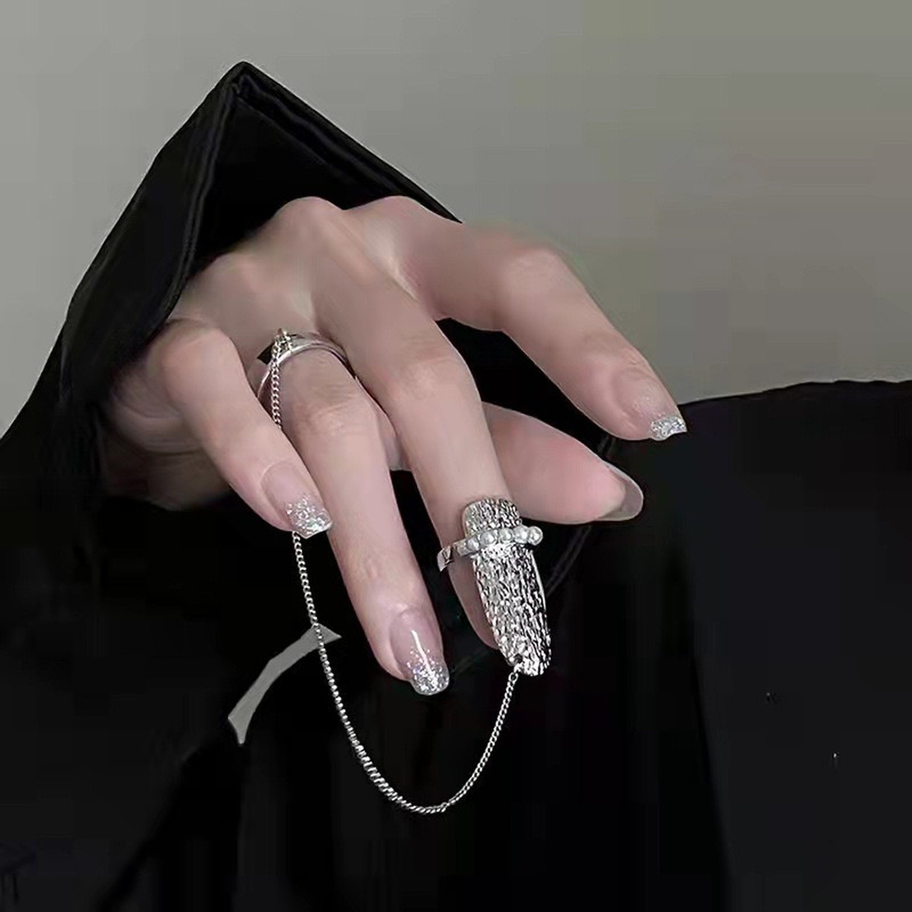 Nuevas y creativas joyas para uñas: armadura de plata, oro y perlas para uñas con anillos de cadena de eslabones. Impresionantes y llamativos anillos para cubrir las uñas. Accesorio moderno y vanguardista para las uñas. Banda ajustable abierta. Fácil de usar y de combinar. Hermosa joyería de moda hecha a mano. ¡Única en su tipo!