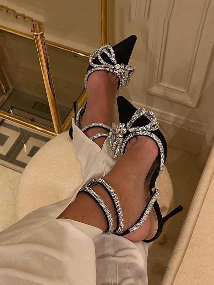 Tacón con tira en el tobillo y lazo con diamantes de imitación