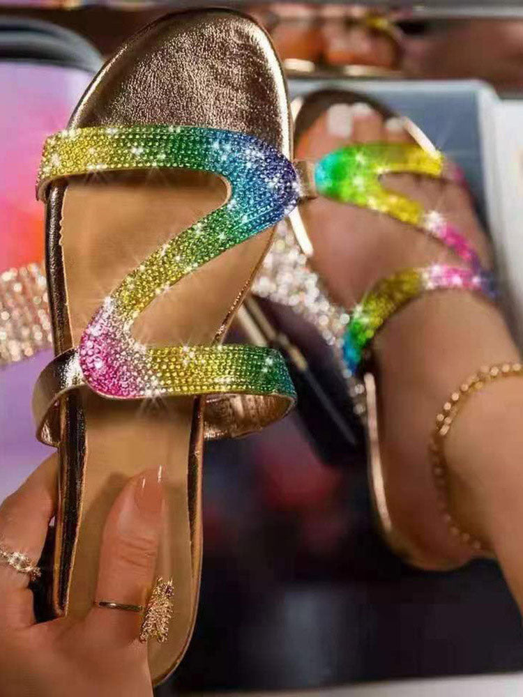 Zapatillas de punta redonda con diamantes de imitación