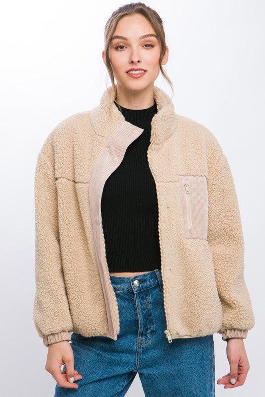 Esta chaqueta redefine la calidez con su tejido sherpa y su diseño acolchado, ofreciendo una capa exterior suave y aislante para los días más fríos. La chaqueta acolchada sherpa ofrece comodidad y moda.