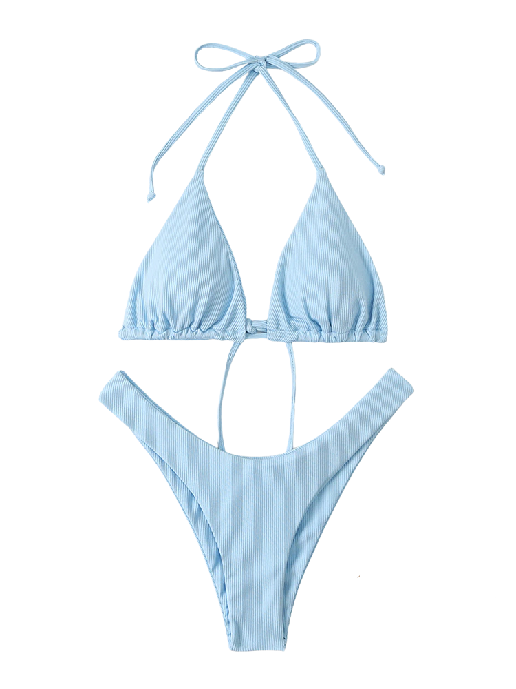 Este bikini estilo halter para mujer es la prenda de baño perfecta para la mujer que quiere mostrar sus curvas. Con tirantes de diferentes colores, este traje de baño es perfecto para un día en la playa o para salir por la noche. La espalda escotada y el escote en V profundo seguramente resaltarán tu figura femenina.