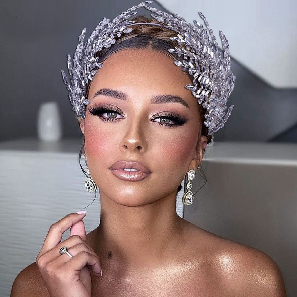 Añade un toque de glamour a tu vida cotidiana con esta impresionante diadema con estilo de El Gran Gatsby. Fabricada en tela plateada con herrajes y adornada con cristales y diamantes de imitación en su superficie. Presenta una banda con forma circular cubierta con motivos de hojas y un acabado flexible que se desliza. Encuentra más diademas de boda para mujer de moda o accesorios para el cabello únicos en nuestra boutique y úsalas para realzar tu look de belleza de noche.