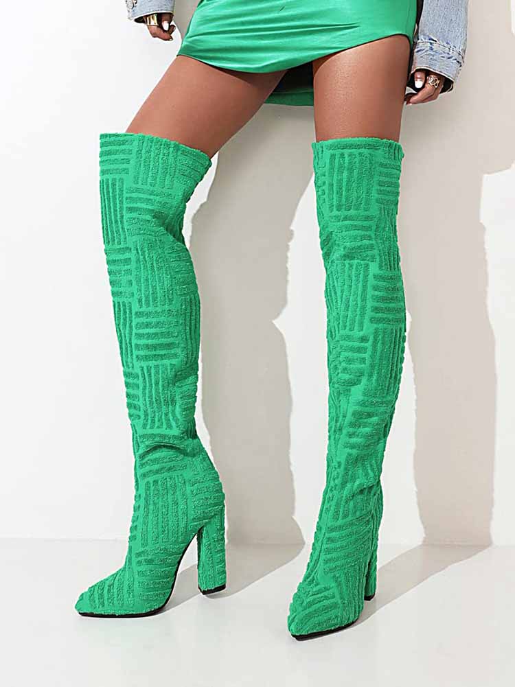 Botas por encima de la rodilla con tacón grueso y diseño de toalla