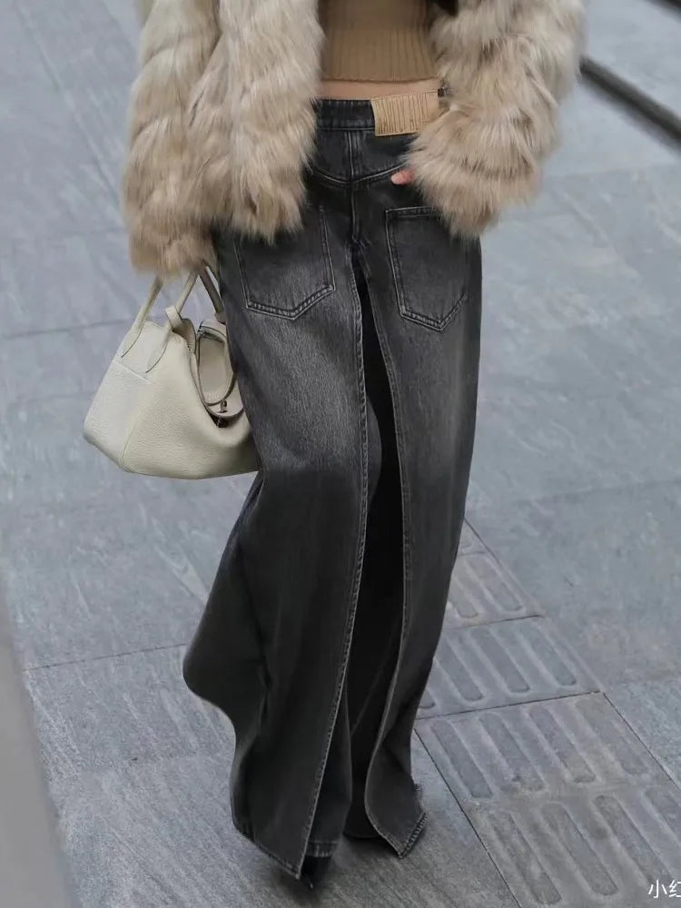 Vaqueros de mezclilla de algodón holgados, estilo cargo Y2k, desgastados, vintage, lavados, con abertura en la bragueta y pernera ancha