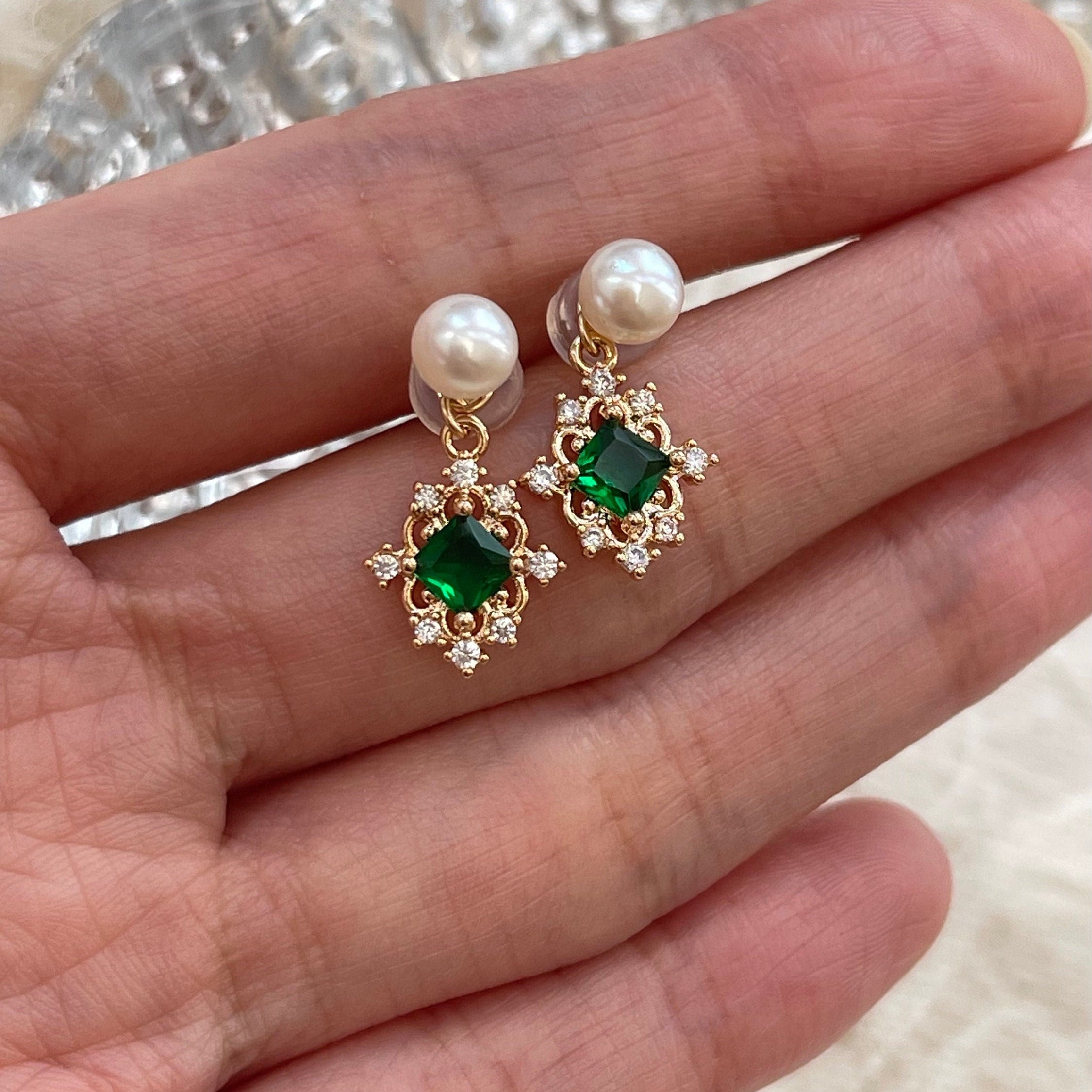 Whether you're dressing up for a special occasion or looking for a statement piece to add to your everyday wardrobe. these Emerald Pearl Earrings are the perfect choice.