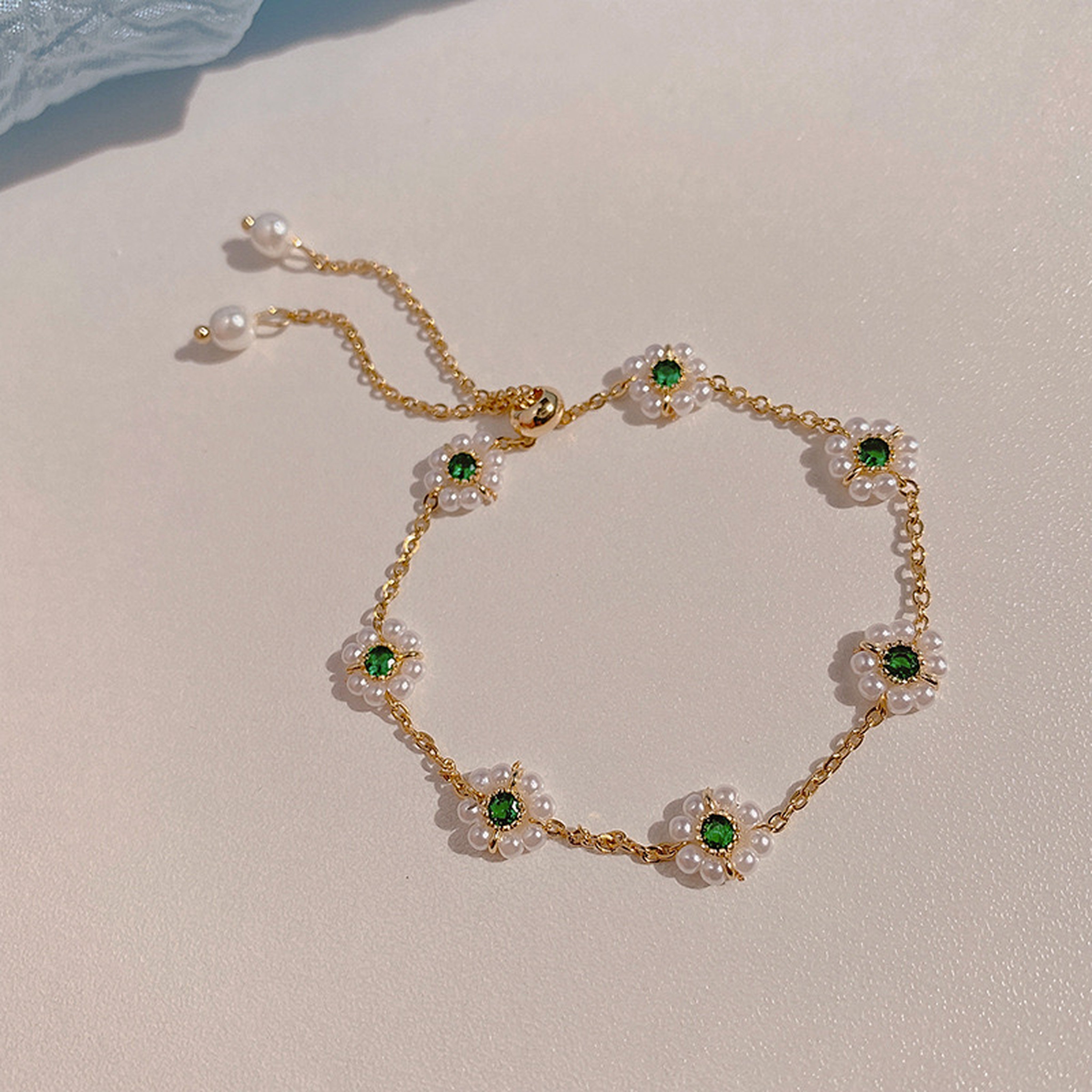 Add a touch of elegance and charm to your look with our Adjustable Emerald and Pearl Bead Bracelet. Each piece is carefully handcrafted to create a one-of-a-kind accessory that reflects your unique style.