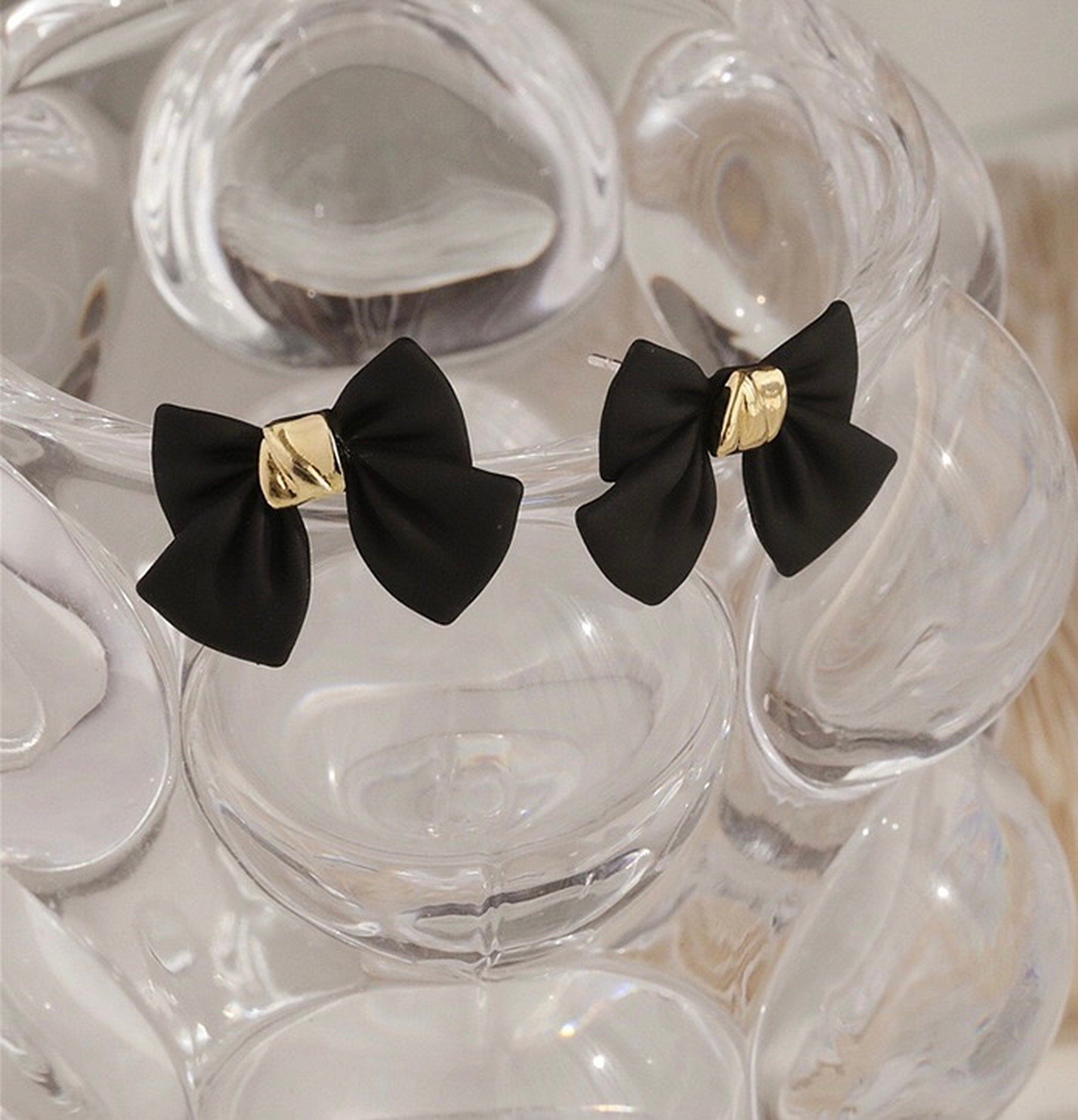 Iconic black bow ribbon gold stud earrings. chic girly romance. Classic black and gold combination. adorable everyday earrings. Handmade of resin and gold plated sterling silver. gorgeous and sturdy to boost your cuteness vibes /p>