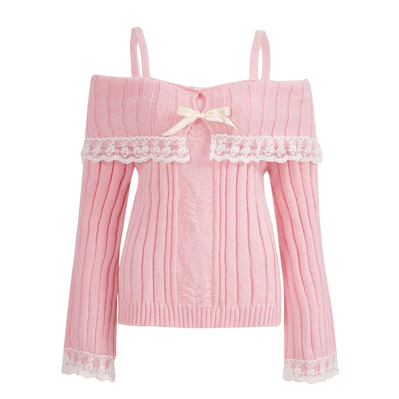 Effortlessly achieve a coquettw kawaii and dreamy aesthetic with our Christmas Bow Ruffle Cold Shoulder sweater. Featuring an off the shoulder style, this knitted sweater is perfect for embracing your inner lolita. Stay stylish and cozy with this must-have addition to your wardrobe.