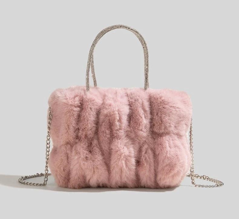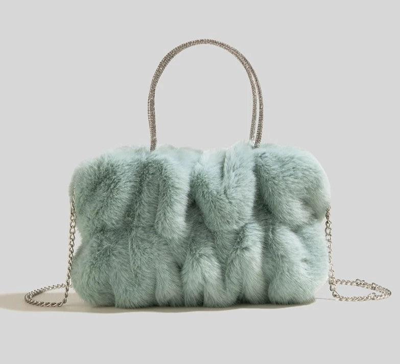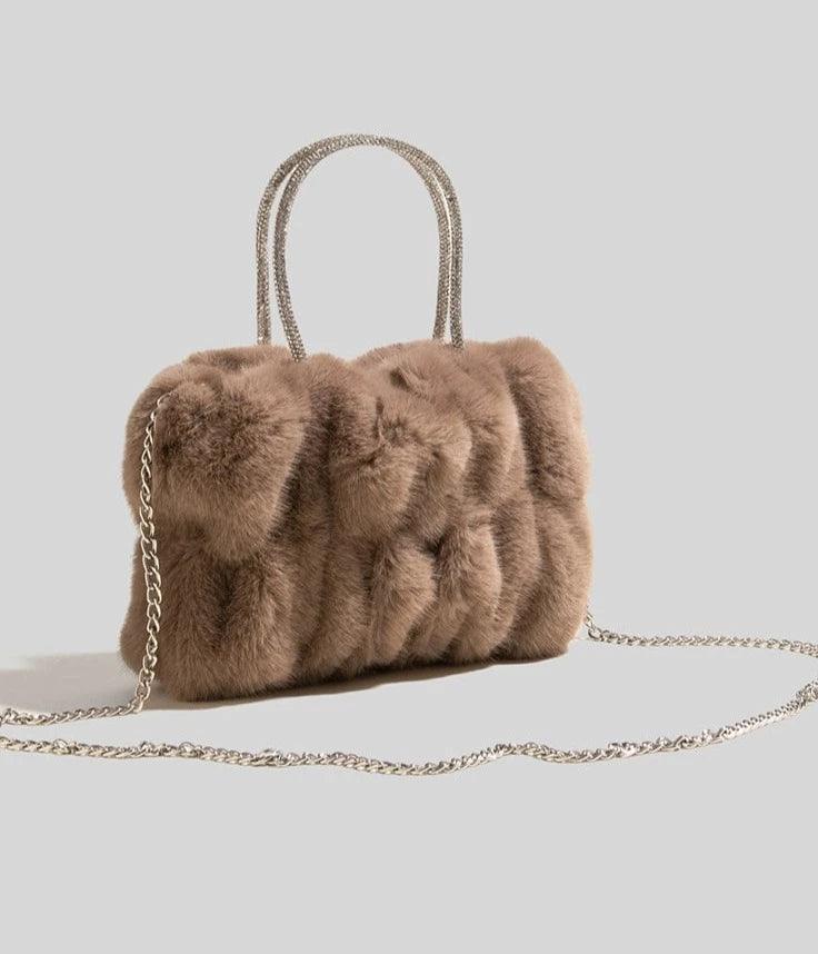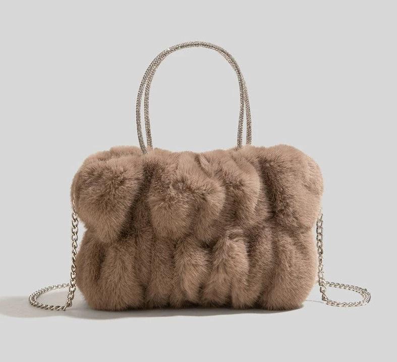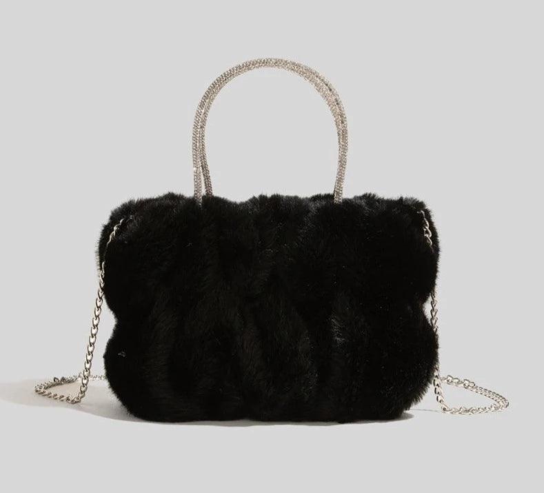 Soft Plush Faux Fur Style Crossbody Women's Bag in Horizontal Square shape with Chain single sling with Magnetic buckle opening. Comes with gift box & gift bag.
